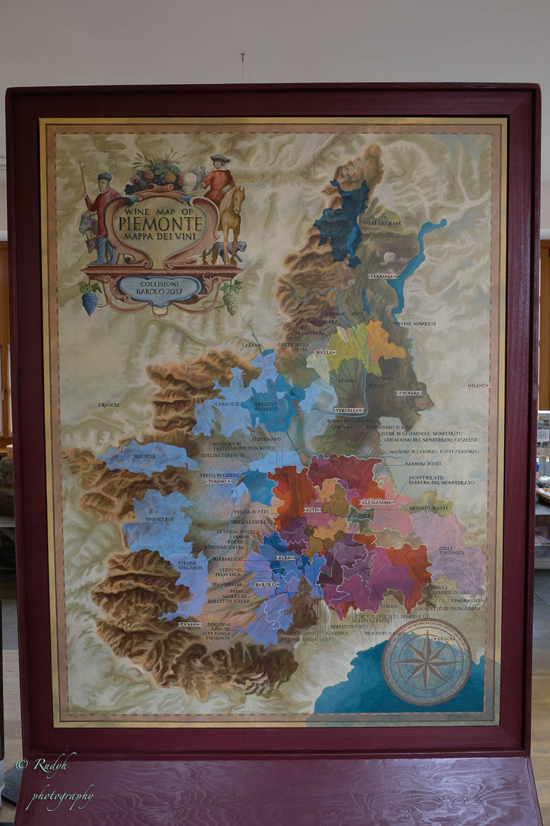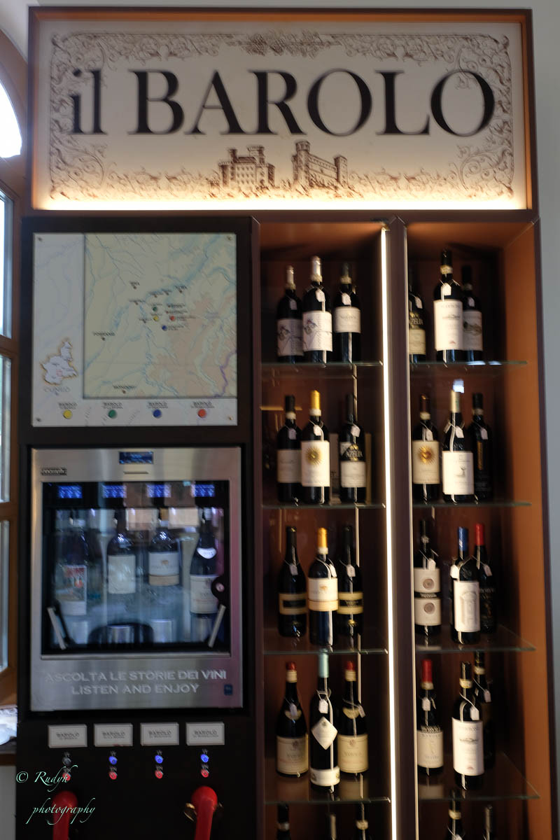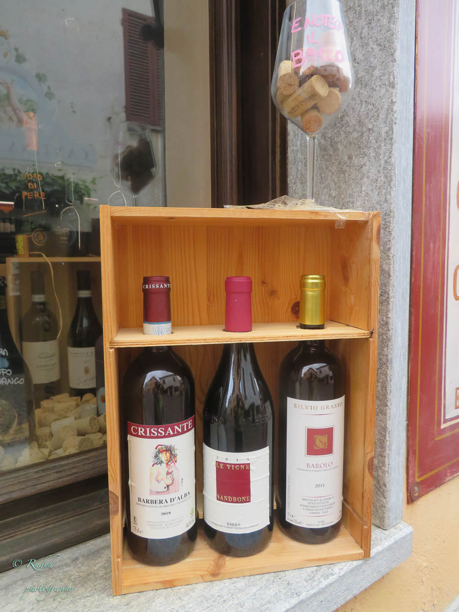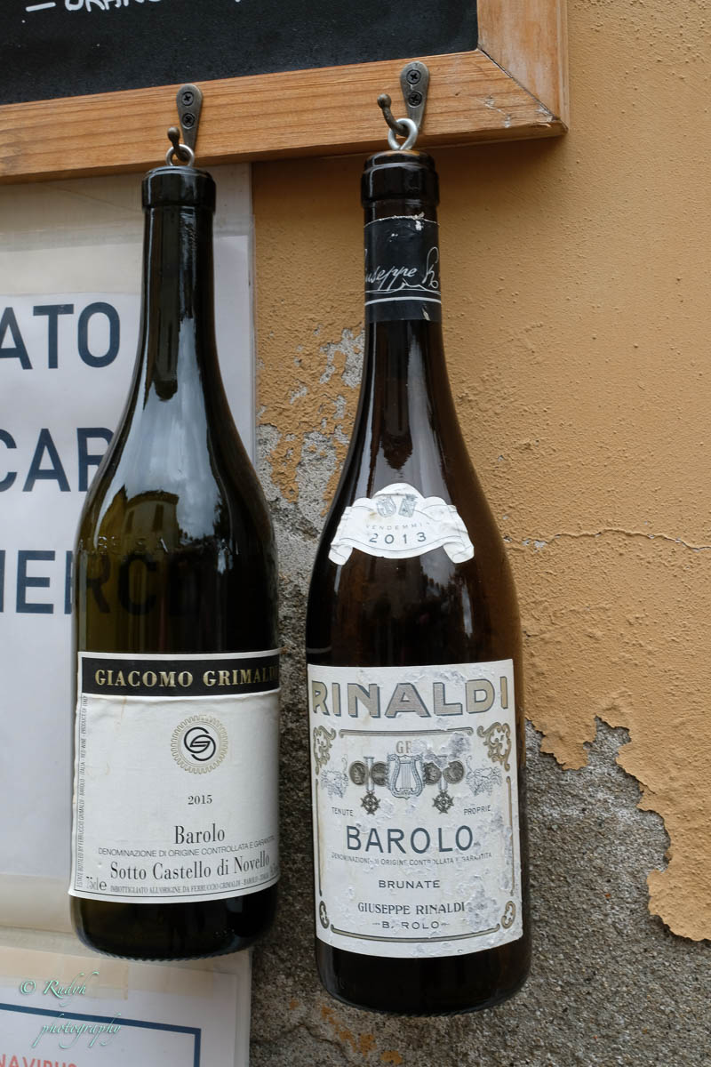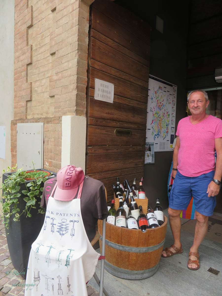 Een hele week alleen maar rondhangen en luieren is niet echt onze stijl, dus vandaag stappen we in de wagen en doen een uitstapje naar Barolo, het dorpje waar de beroemde wijn geproduceerd wordt. Het is een hele mooie rit, het landschap is prachtig en verandert geleidelijk van bergen naar wijngaarden ( ook op de bergflanken ) zo ver je maar kan zien. Mooi ook wel, her en der tussen de wijngaarden zijn er statige gebouwen te zien, die helemaal passen in het omliggende wijnlandschap. Vermoedelijk zijn de meeste hiervan wijnhuizen, want uiteraard wordt de befaamde Barolo wijn hier in grote getale geproduceerd. Het is echter niet alleen Barolo, je vindt er ook nog verscheiden andere ( evengoed lekkere ) wijnsoorten, zoals de Barbera d’Asti, Prosecco, enz … Het dorpje zelf is zeker charmant te noemen en we wandelen er op t gemakje wat rond. Uiteraard gaan we ook proeven, het eerste wijnhuis waar we dat proberen lukt het helaas niet, omdat zij vandaag exclusief volgeboekt zijn door een apart gezelschap. Jammer natuurlijk, maar de vriendelijke dame van het onthaal laat ons wel even binnen rondkijken in de zaal waar ze hun proeverijen organiseren en waar heel veel informatie over de productie van de beroemde wijnen te vinden is, en uiteraard ook de wijn zelf 🙂 We nemen er een paar fotootjes en bedanken de dame in kwestie, die ons op het hart drukt om zeker nog eens terug te komen. Doen we absoluut, maar t zal voor een ander keertje zijn. We proberen het dan maar eens in een ander wijnhuis, en daar meer geluk. We krijgen enige uitleg over de productie, de druivensoorten, enz … Het blijkt nog een vrij jong wijnhuis te zijn, maar ze hebben toch al een redelijk gamma. We proeven er een paar wijntjes, maar houden het bewust sober, gezien de terugrit naar ons hotel die we nog voor de boeg hebben. Leuke dag en prachtige rit door heel mooie natuur, rustig kan dus ook 🙂