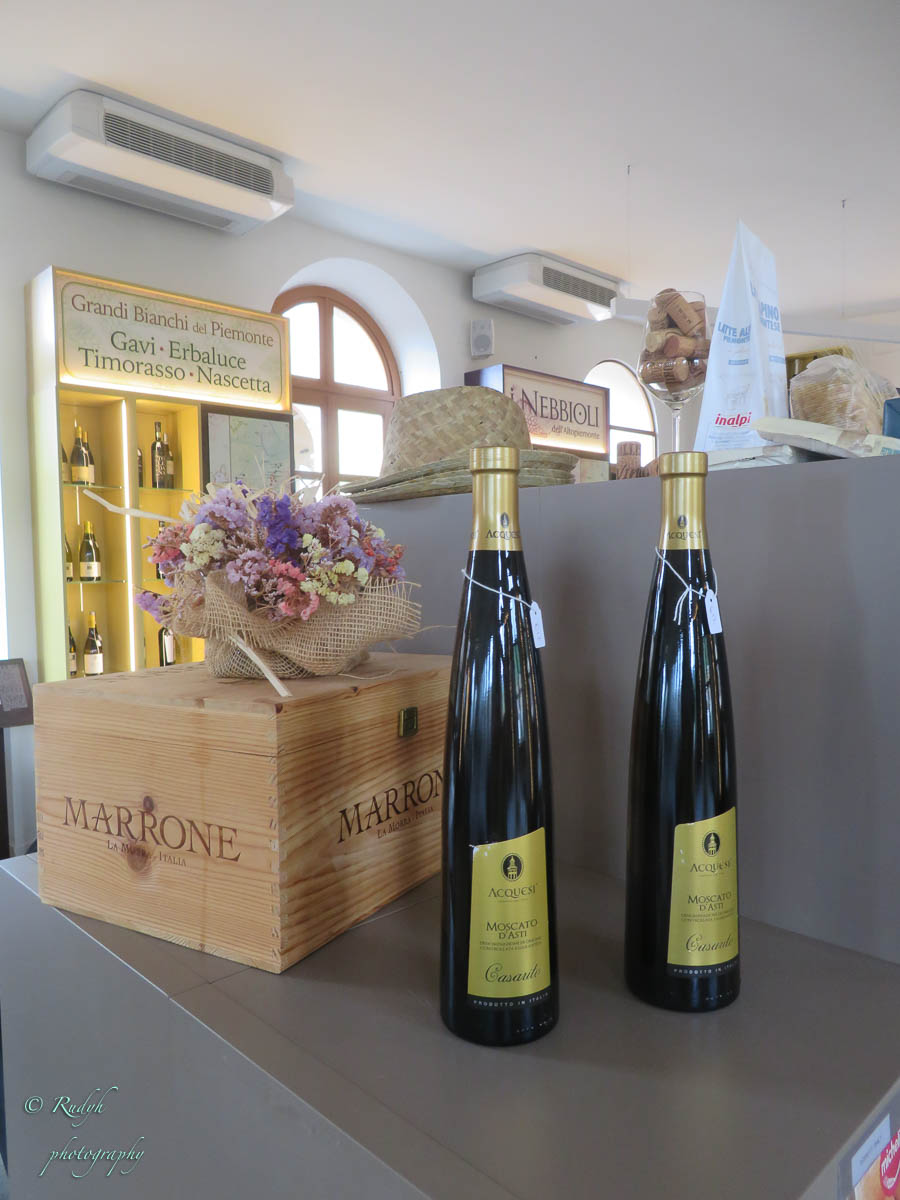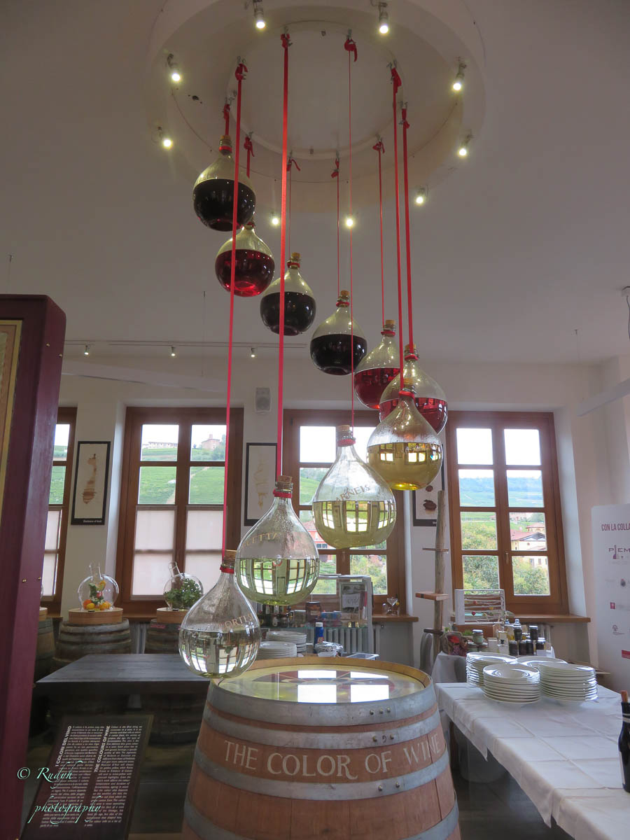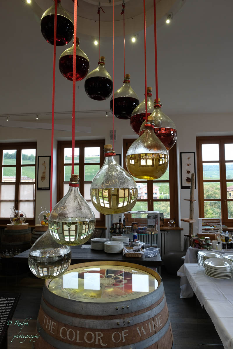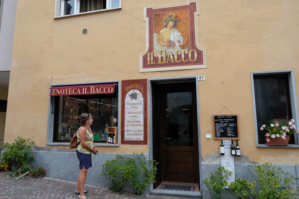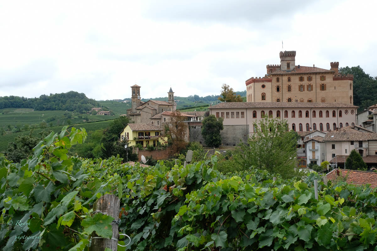 Een hele week alleen maar rondhangen en luieren is niet echt onze stijl, dus vandaag stappen we in de wagen en doen een uitstapje naar Barolo, het dorpje waar de beroemde wijn geproduceerd wordt. Het is een hele mooie rit, het landschap is prachtig en verandert geleidelijk van bergen naar wijngaarden ( ook op de bergflanken ) zo ver je maar kan zien. Mooi ook wel, her en der tussen de wijngaarden zijn er statige gebouwen te zien, die helemaal passen in het omliggende wijnlandschap. Vermoedelijk zijn de meeste hiervan wijnhuizen, want uiteraard wordt de befaamde Barolo wijn hier in grote getale geproduceerd. Het is echter niet alleen Barolo, je vindt er ook nog verscheiden andere ( evengoed lekkere ) wijnsoorten, zoals de Barbera d’Asti, Prosecco, enz … Het dorpje zelf is zeker charmant te noemen en we wandelen er op t gemakje wat rond. Uiteraard gaan we ook proeven, het eerste wijnhuis waar we dat proberen lukt het helaas niet, omdat zij vandaag exclusief volgeboekt zijn door een apart gezelschap. Jammer natuurlijk, maar de vriendelijke dame van het onthaal laat ons wel even binnen rondkijken in de zaal waar ze hun proeverijen organiseren en waar heel veel informatie over de productie van de beroemde wijnen te vinden is, en uiteraard ook de wijn zelf 🙂 We nemen er een paar fotootjes en bedanken de dame in kwestie, die ons op het hart drukt om zeker nog eens terug te komen. Doen we absoluut, maar t zal voor een ander keertje zijn. We proberen het dan maar eens in een ander wijnhuis, en daar meer geluk. We krijgen enige uitleg over de productie, de druivensoorten, enz … Het blijkt nog een vrij jong wijnhuis te zijn, maar ze hebben toch al een redelijk gamma. We proeven er een paar wijntjes, maar houden het bewust sober, gezien de terugrit naar ons hotel die we nog voor de boeg hebben. Leuke dag en prachtige rit door heel mooie natuur, rustig kan dus ook 🙂