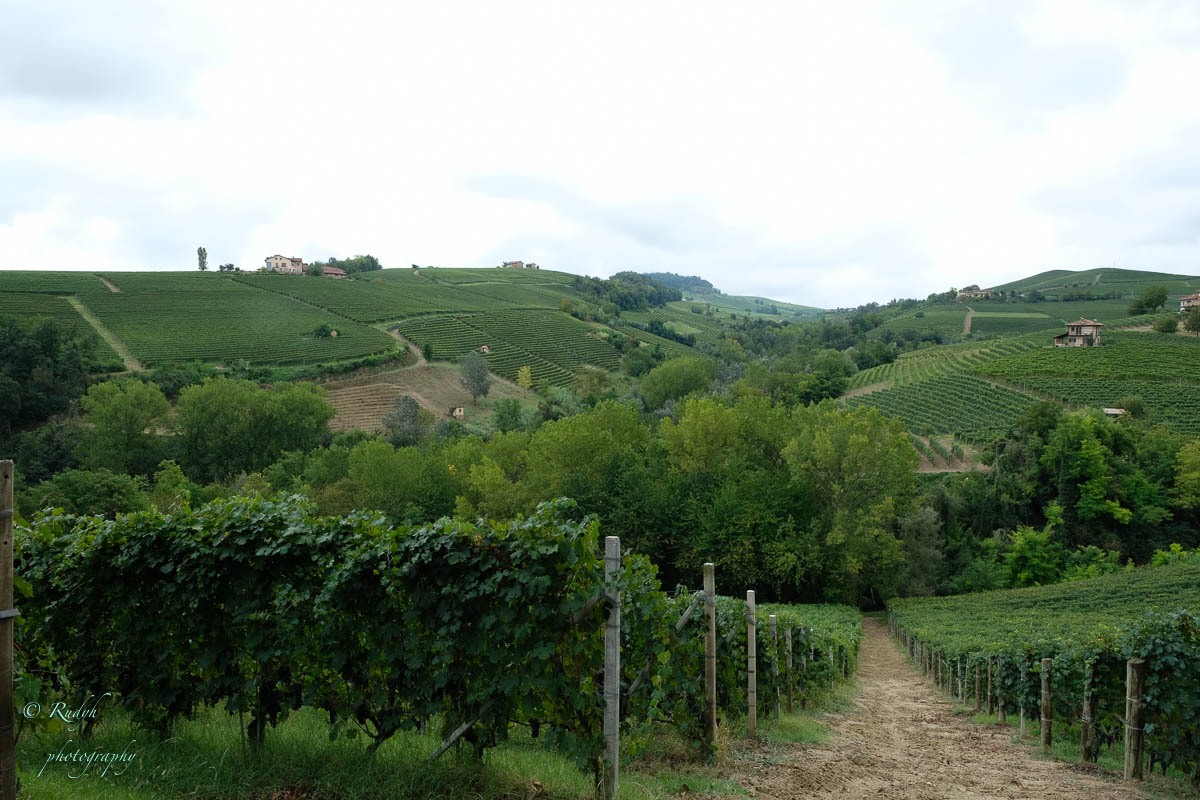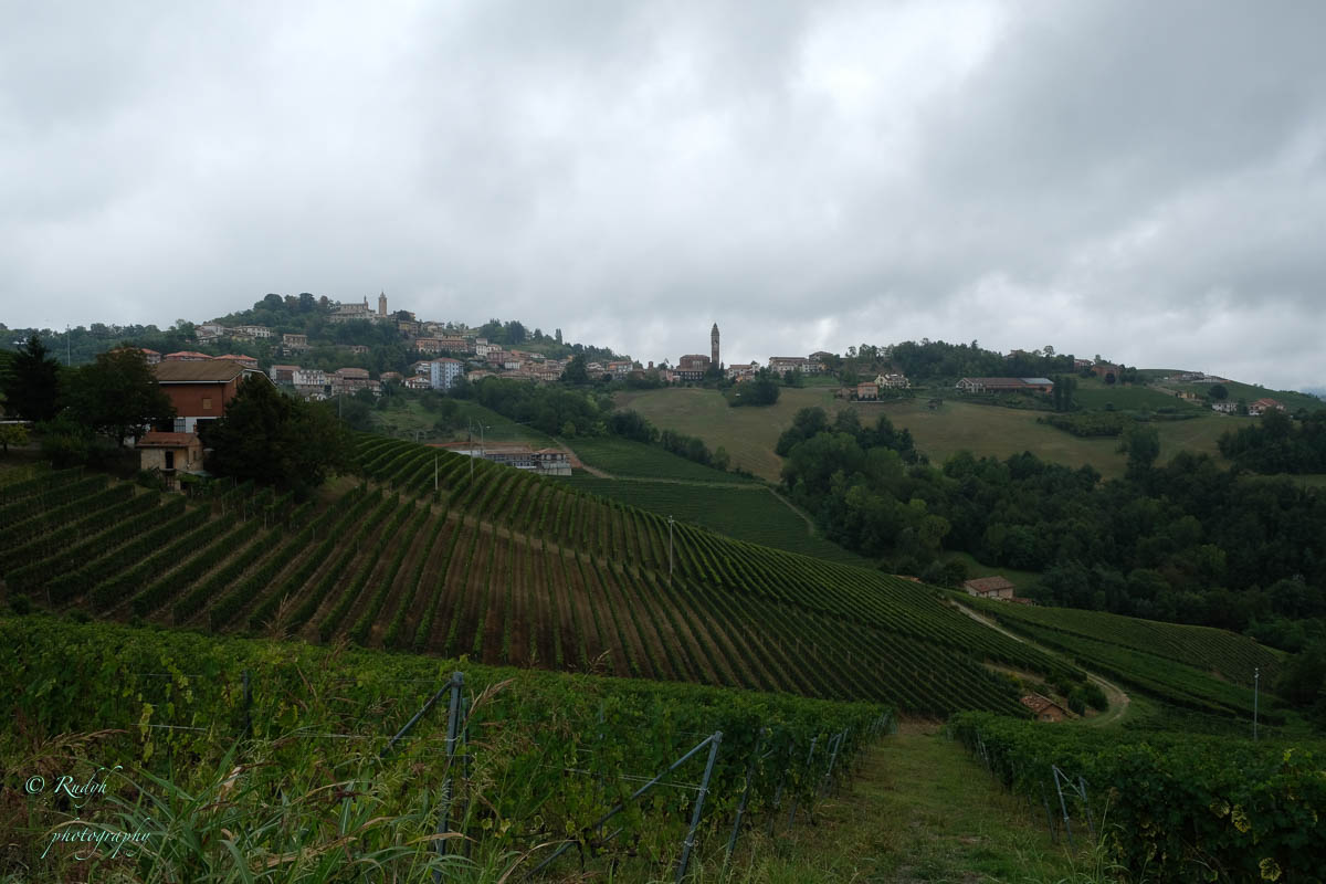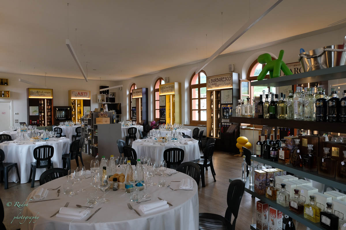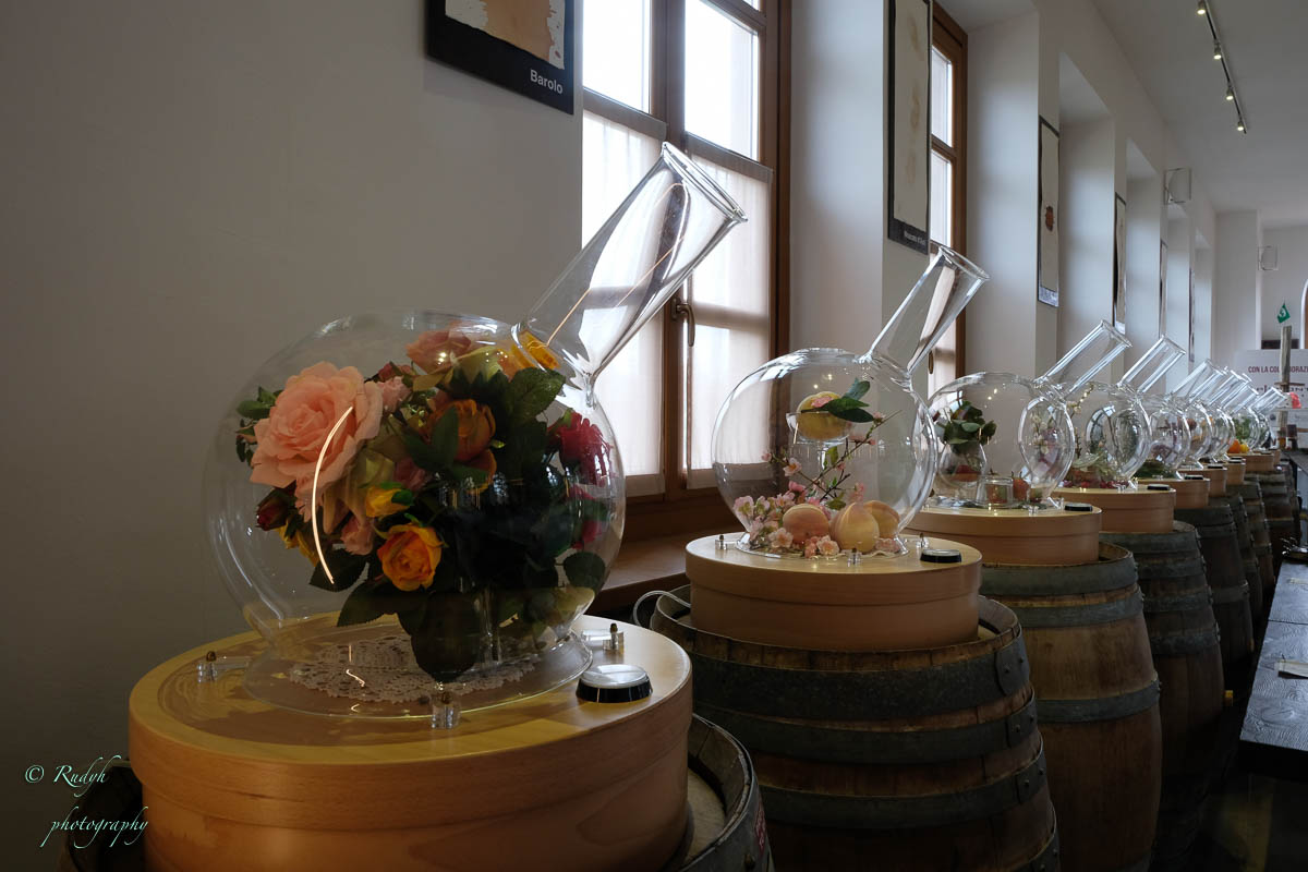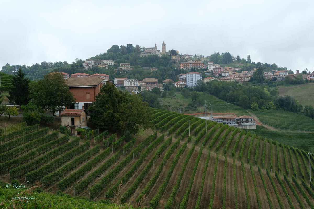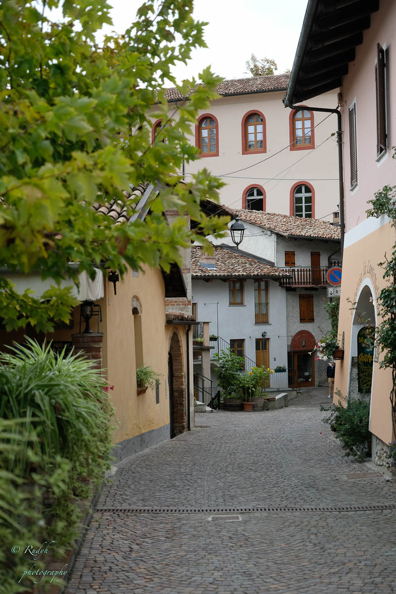 Een hele week alleen maar rondhangen en luieren is niet echt onze stijl, dus vandaag stappen we in de wagen en doen een uitstapje naar Barolo, het dorpje waar de beroemde wijn geproduceerd wordt. Het is een hele mooie rit, het landschap is prachtig en verandert geleidelijk van bergen naar wijngaarden ( ook op de bergflanken ) zo ver je maar kan zien. Mooi ook wel, her en der tussen de wijngaarden zijn er statige gebouwen te zien, die helemaal passen in het omliggende wijnlandschap. Vermoedelijk zijn de meeste hiervan wijnhuizen, want uiteraard wordt de befaamde Barolo wijn hier in grote getale geproduceerd. Het is echter niet alleen Barolo, je vindt er ook nog verscheiden andere ( evengoed lekkere ) wijnsoorten, zoals de Barbera d’Asti, Prosecco, enz … Het dorpje zelf is zeker charmant te noemen en we wandelen er op t gemakje wat rond. Uiteraard gaan we ook proeven, het eerste wijnhuis waar we dat proberen lukt het helaas niet, omdat zij vandaag exclusief volgeboekt zijn door een apart gezelschap. Jammer natuurlijk, maar de vriendelijke dame van het onthaal laat ons wel even binnen rondkijken in de zaal waar ze hun proeverijen organiseren en waar heel veel informatie over de productie van de beroemde wijnen te vinden is, en uiteraard ook de wijn zelf 🙂 We nemen er een paar fotootjes en bedanken de dame in kwestie, die ons op het hart drukt om zeker nog eens terug te komen. Doen we absoluut, maar t zal voor een ander keertje zijn. We proberen het dan maar eens in een ander wijnhuis, en daar meer geluk. We krijgen enige uitleg over de productie, de druivensoorten, enz … Het blijkt nog een vrij jong wijnhuis te zijn, maar ze hebben toch al een redelijk gamma. We proeven er een paar wijntjes, maar houden het bewust sober, gezien de terugrit naar ons hotel die we nog voor de boeg hebben. Leuke dag en prachtige rit door heel mooie natuur, rustig kan dus ook 🙂