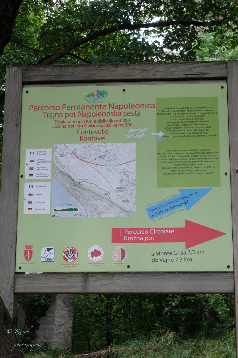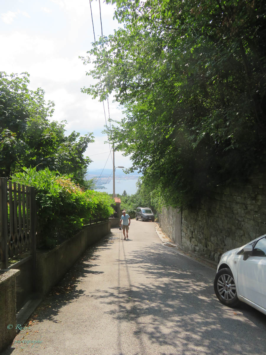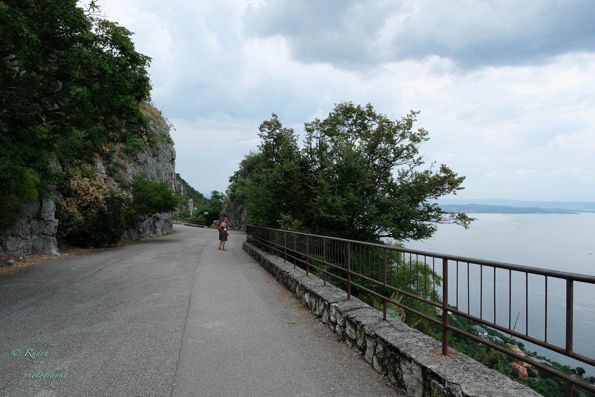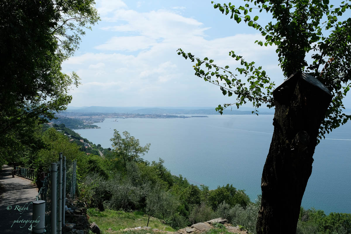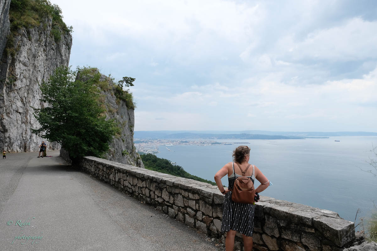 We vertrekken voor wat toch wel een stevige klim blijkt te zijn, maar we worden onderweg beloond met heerlijke uitzichten over de baai van Triëste. Net voor we Prosecco bereiken, hebben we nog een babbel met een lokale bewoner, die ons in perfect Duits uitlegt hoe we daar moeten geraken en van daaruit verder kunnen stappen naar de Strada Vicentina en de Route Napoleonica, 2 aan elkaar aansluitende panoramische wandelwegen, waarna we aan de andere kant weer terug naar beneden richting zee kunnen.