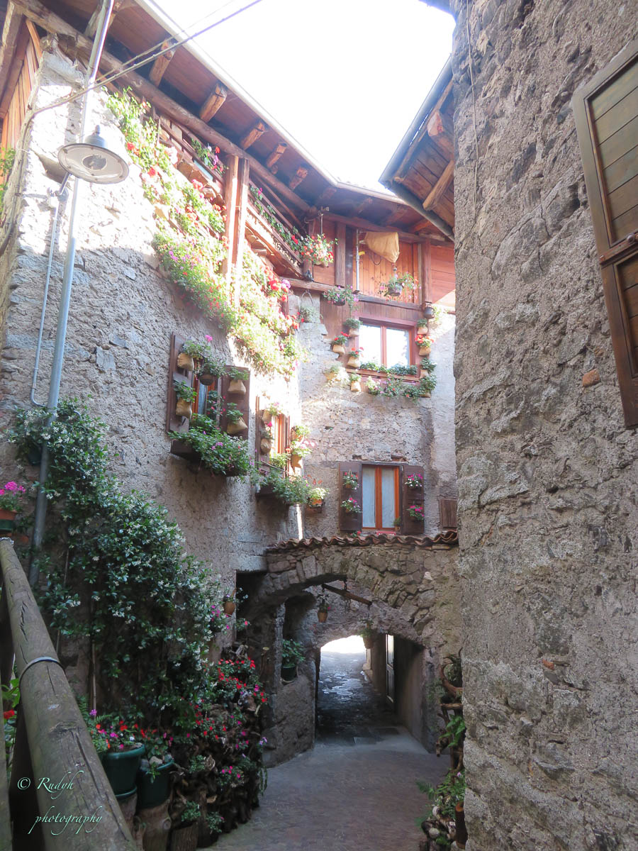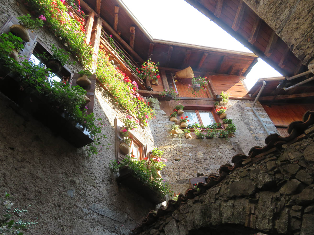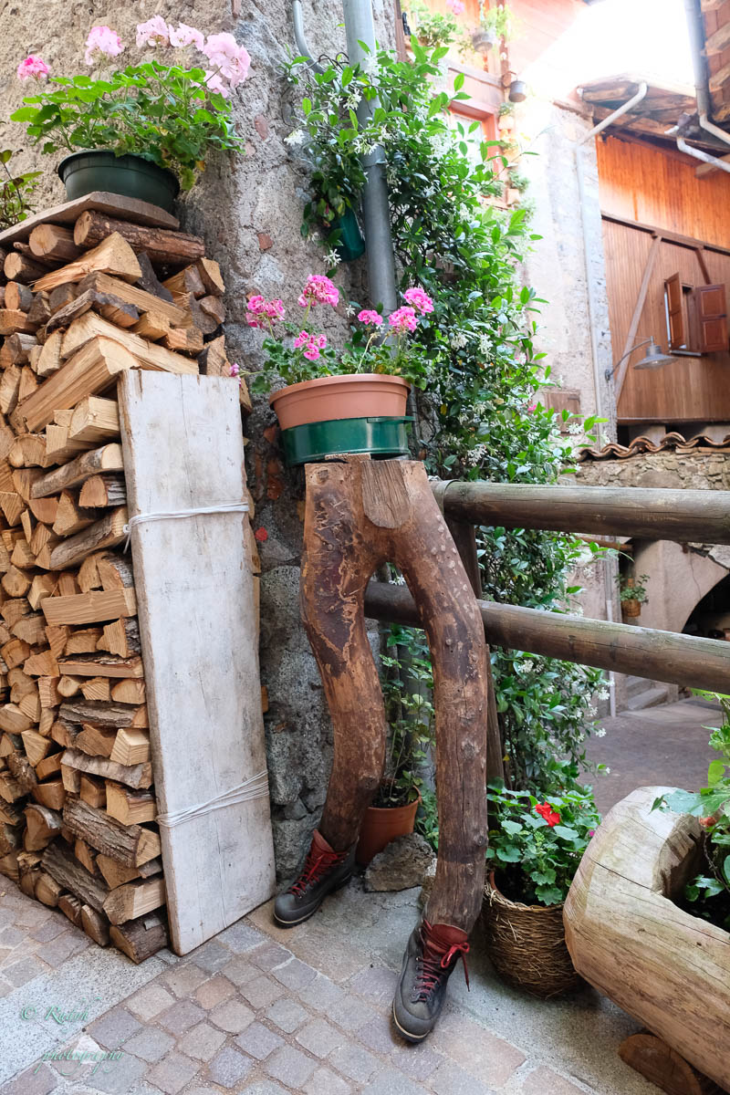 Heel charmant uiteraard en overal hebben de inwoners moeite gedaan om het allemaal nog extra op te fleuren, letterlijk in dit geval, door het hele dorpje zijn er bloemen geplant, in bloembakken uiteraard, maar ook in plastic flessen, houten blokjes, autobanden …
