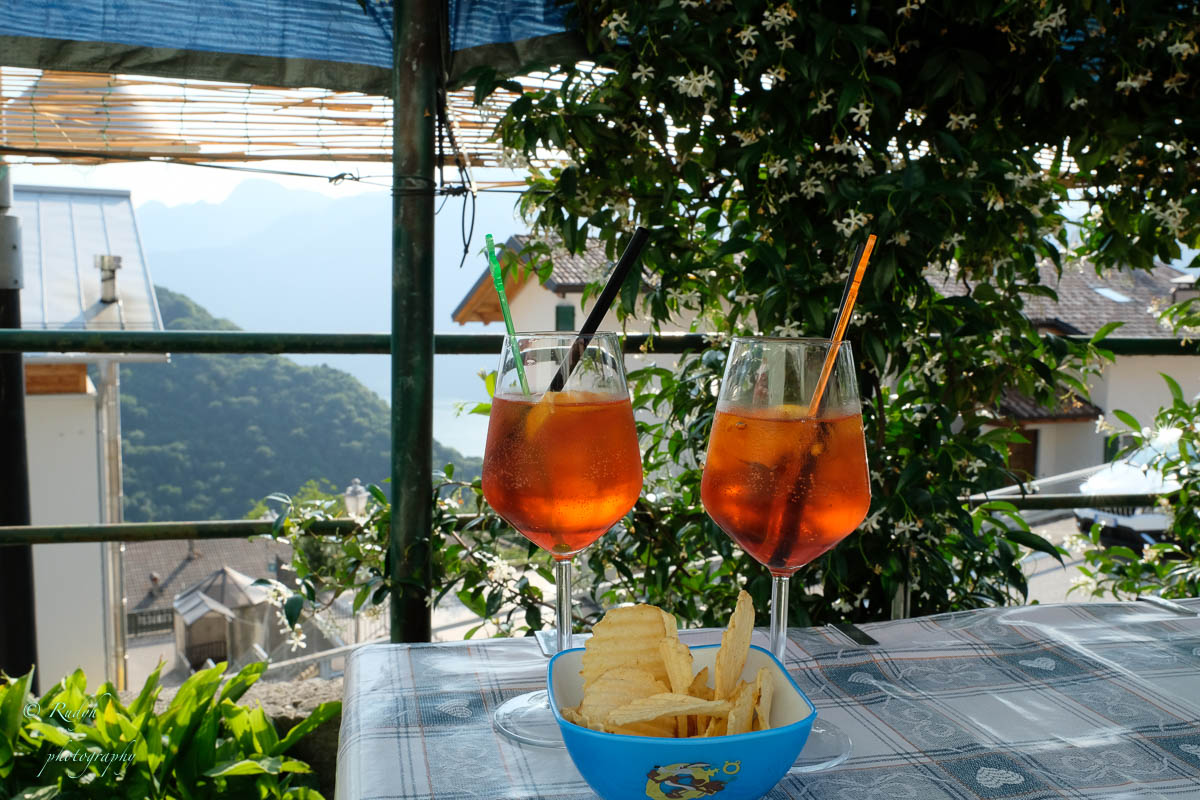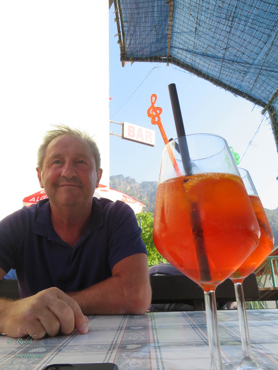 Hier zitten dus voornamelijk de oudere mensen gezellig samen te keuvelen en te kaarten, we zetten er ons bij en nemen de gekende Apérol Spritz ( die jaren geleden in Italië al bestond onder de naam Veneziana ), dat past bij dit plekje op deze zomerse namiddag.