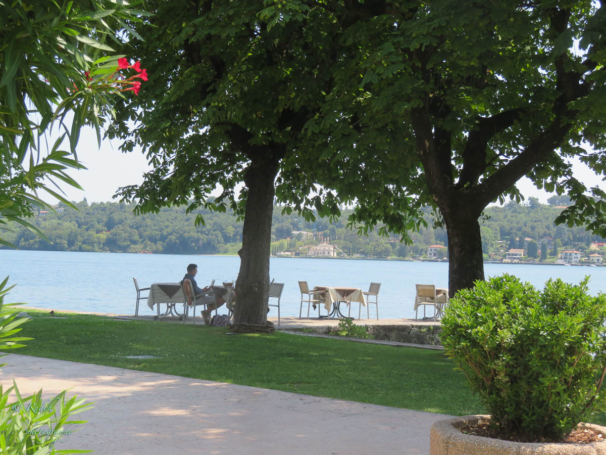 Dat is blijkbaar de grote trekpleister van dit stadje, een boulevard langs het meer van ong. 3km lang, bezaaid met terrasjes van restaurants en bars, charmant ! Na de boulevard helemaal afgewandeld te hebben, zetten we ons uiteraard ook neer voor een welverdiend glaasje, zalig in het zonnetje aan de oevers van het meer, vakantiegevoel ten top !