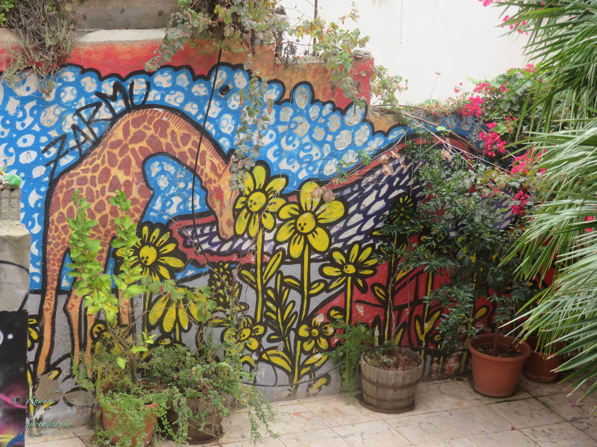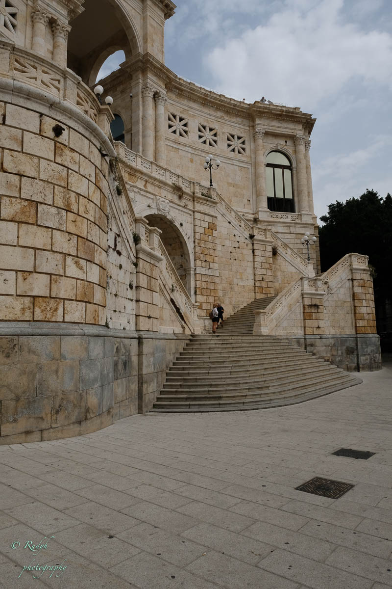 Het is vandaag heel erg warm, vochtig en de lucht is helemaal bedekt met grijze wolken, een echte ‘plakdag ‘ dus. We wandelen door de stad, hier en daar zijn er wel de typische Italiaanse steegjes, maar het straalt allemaal een beetje troosteloosheid uit. Onderweg vinden we wel een steegje vol graffiti, maar dan mooi gedaan, prachtige tekeningen, toch een beetje kleur en vrolijkheid in deze grijze stad. Je kan in de stad ook niet naast ‘ Il Bastione ‘ kijken, een enorm gebouw waar je helemaal naar boven kan klimmen en je een uitzicht over de ganse stad hebt. Ondanks de plakkerige omstandigheden wagen we ons toch aan de klim. Bovenop inderdaad zicht over de hele stad en de baai, maar vrolijk wordt je daar ook niet van … grijs! Echt geen mooie buurt dus, maar Radja zal wel ergens anders in de streek een mooi optrekje gehad hebben zeker 🙂