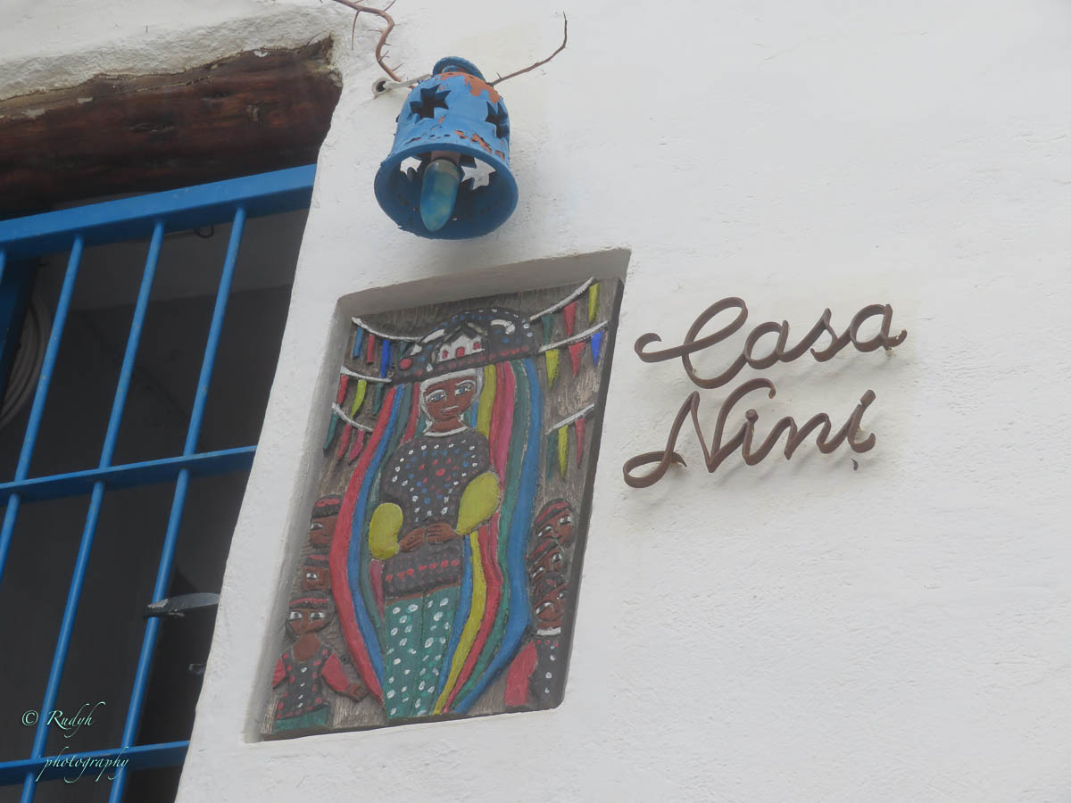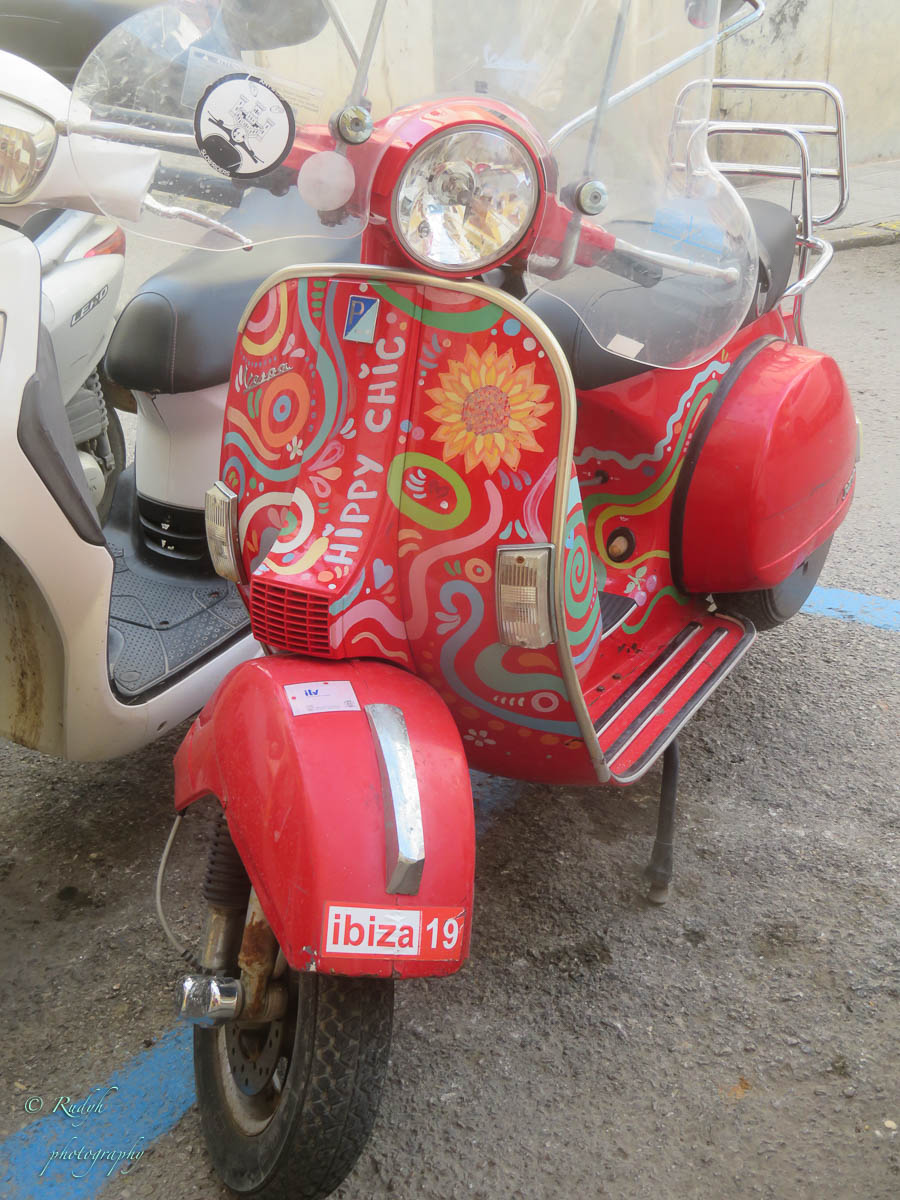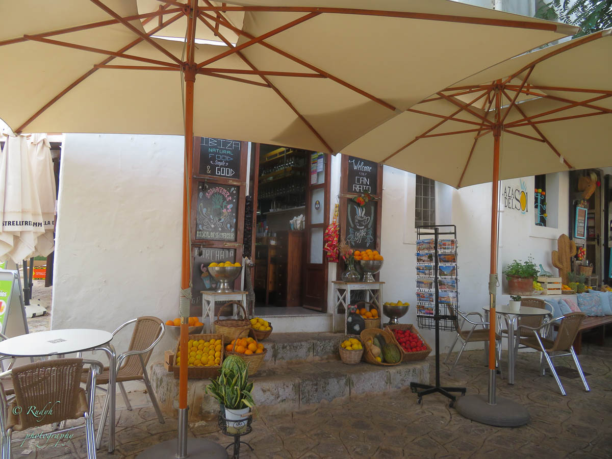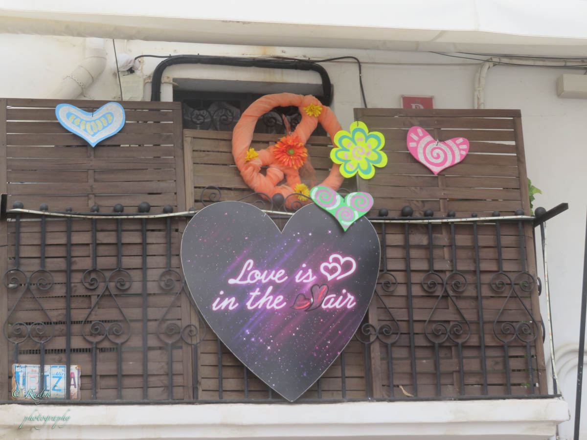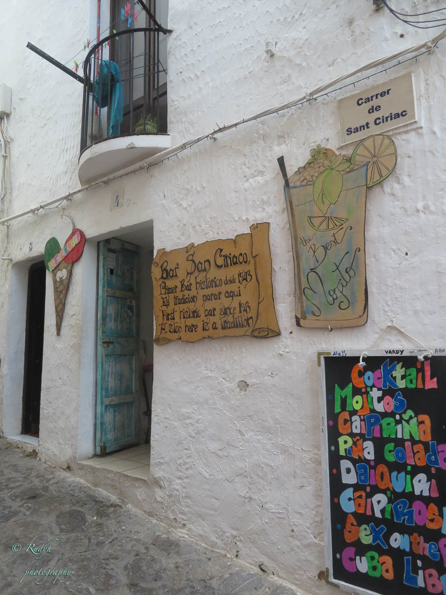 Na het bootjes kijken, wandelen we richting oude stad, oftewel ‘Dalt Vila’ zoals het hier benoemd wordt. In eerste instantie wandelen we in kleine steegjes met heel veel boetiekjes en cafeetjes waar er vooral naar de Hippie-status van het eiland verwezen wordt, overal Boho en Flower Power vibes dus … 🙂