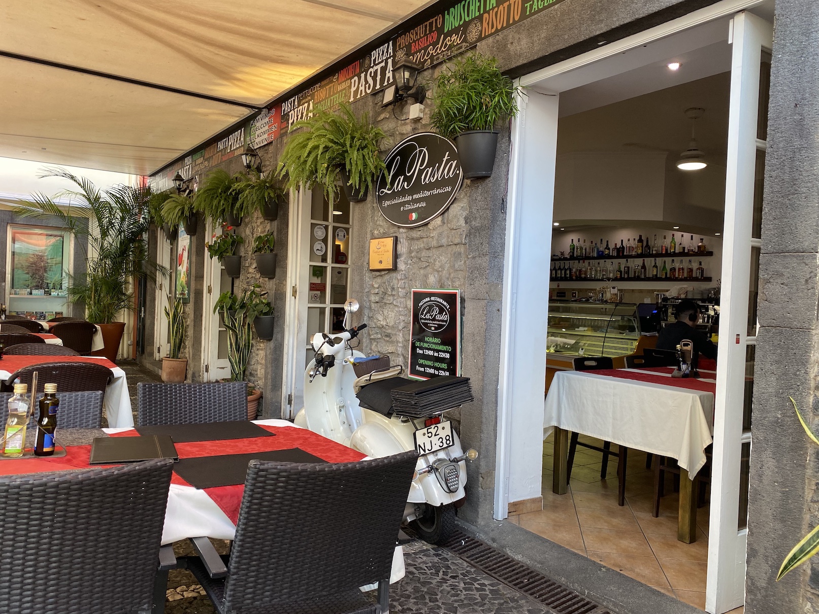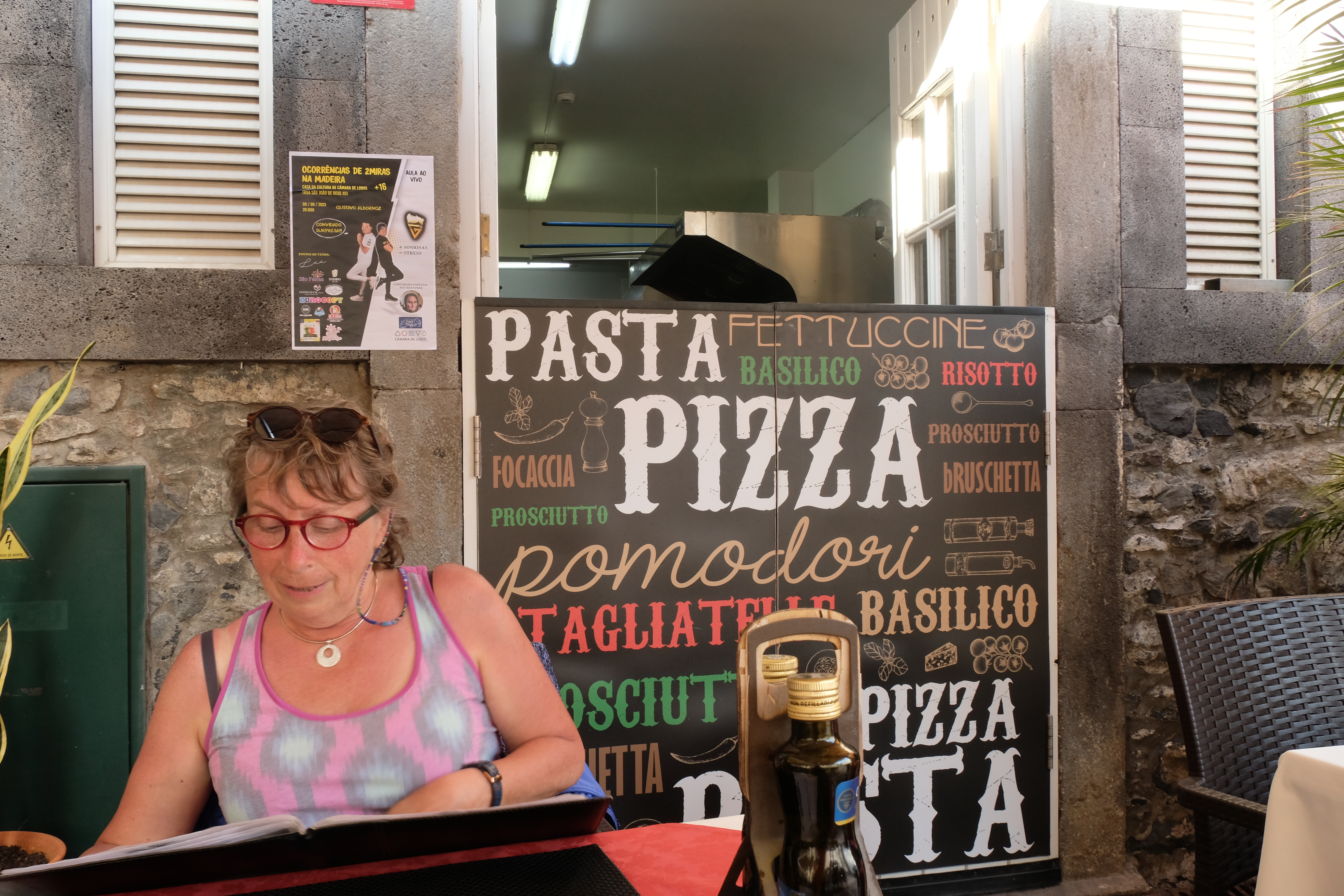 Wanneer we terugkeren aan wal is het ondertussen toch al bijna 19h en wordt het tijd om iets te eten. Dat doen we vandaag dan maar in Funchal zelf in plaats van eerst nog terug te rijden naar Sao Vicente, waar onze Quinta gelegen is. We wandelen door de stad en stuiten op een Italiaans restootje dat er heel gezellig uitziet.