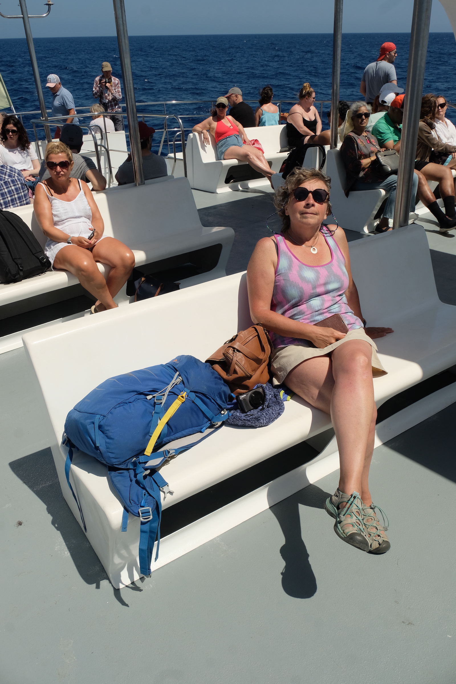 Walvissen verwachten we niet zo direct hier, maar dolfijnen lukt misschien wel, en zelfs als we geen dieren tegenkomen, is het ook altijd leuk om het eiland eens vanop de zee te bekijken,