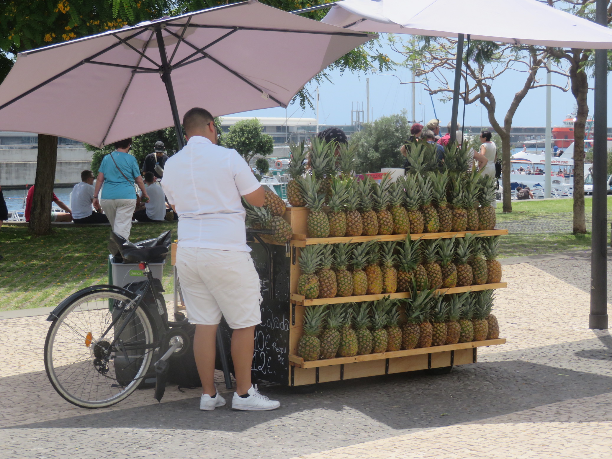 Onze vlucht is pas vanavond, dus we gaan nog eerst rustig ontbijten, pakken onze spullen en gaan dan nog een half dagje in Funchal city rondwandelen. De stad zelf hadden we nog niet bezocht en gezien we toch nog wel even tijd hebben vooraleer we op de luchthaven moeten zijn ( die vlakbij Funchal in Porto Cruz ligt ) is het de uitgelezen moment om deze mooie oude stad ook eens te verkennen. We bezoeken de Mercado dos Lavradores ( de versmakrt ), dwalen door de straatjes, en keren terug naar onze auto langs de kade. Daar zijn nog een aantal evenementen aan de gang, waar we nog een beetje rondkijken en dan is het echt afgelopen, … naar ons autootje en richting Aeroporto ….