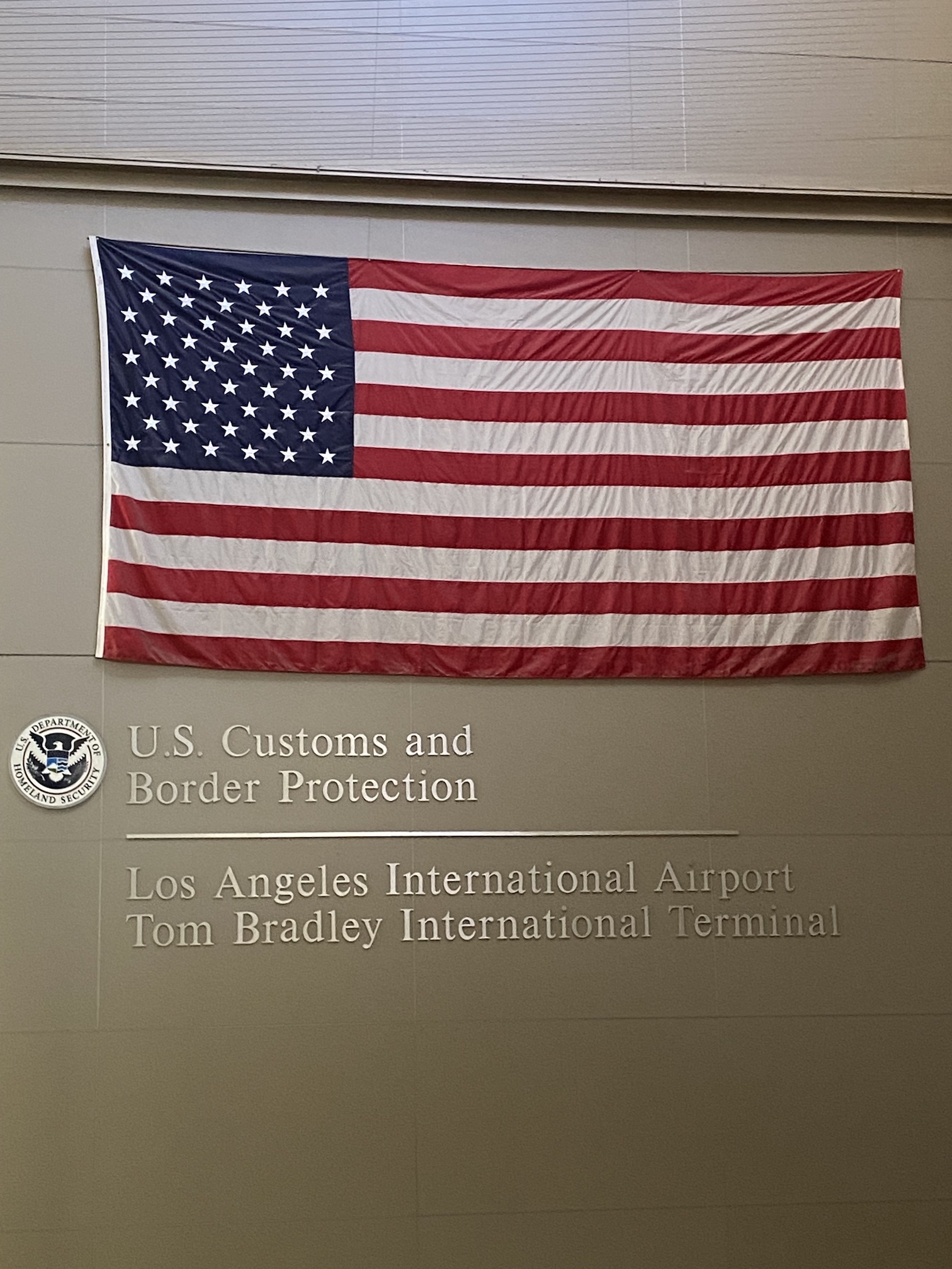 Na enkele fillmpjes, dutjes, vliegtuigmaaltijden en drankjes, komen we na meer dan 11h vliegen aan in LAX, waar we nog eens een goed uurtje moeten aanschuiven voor de paspoortcontrole.