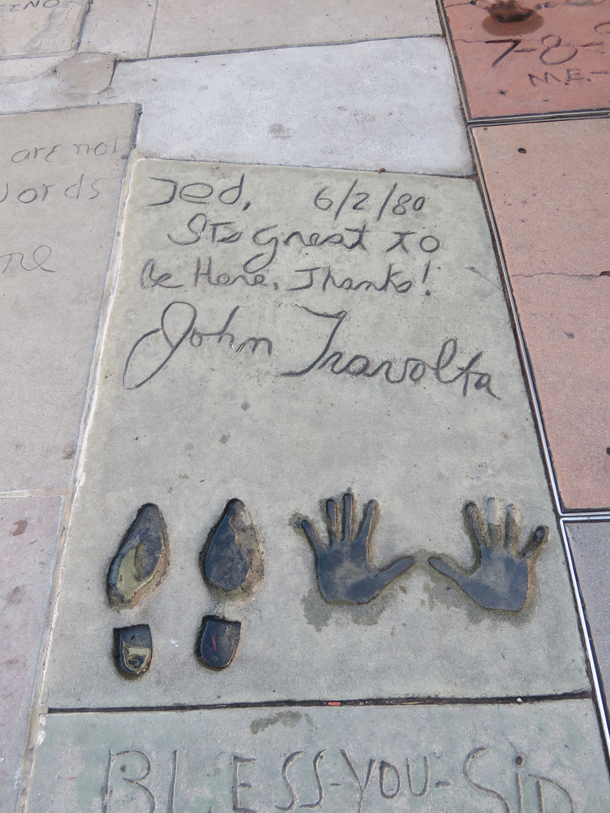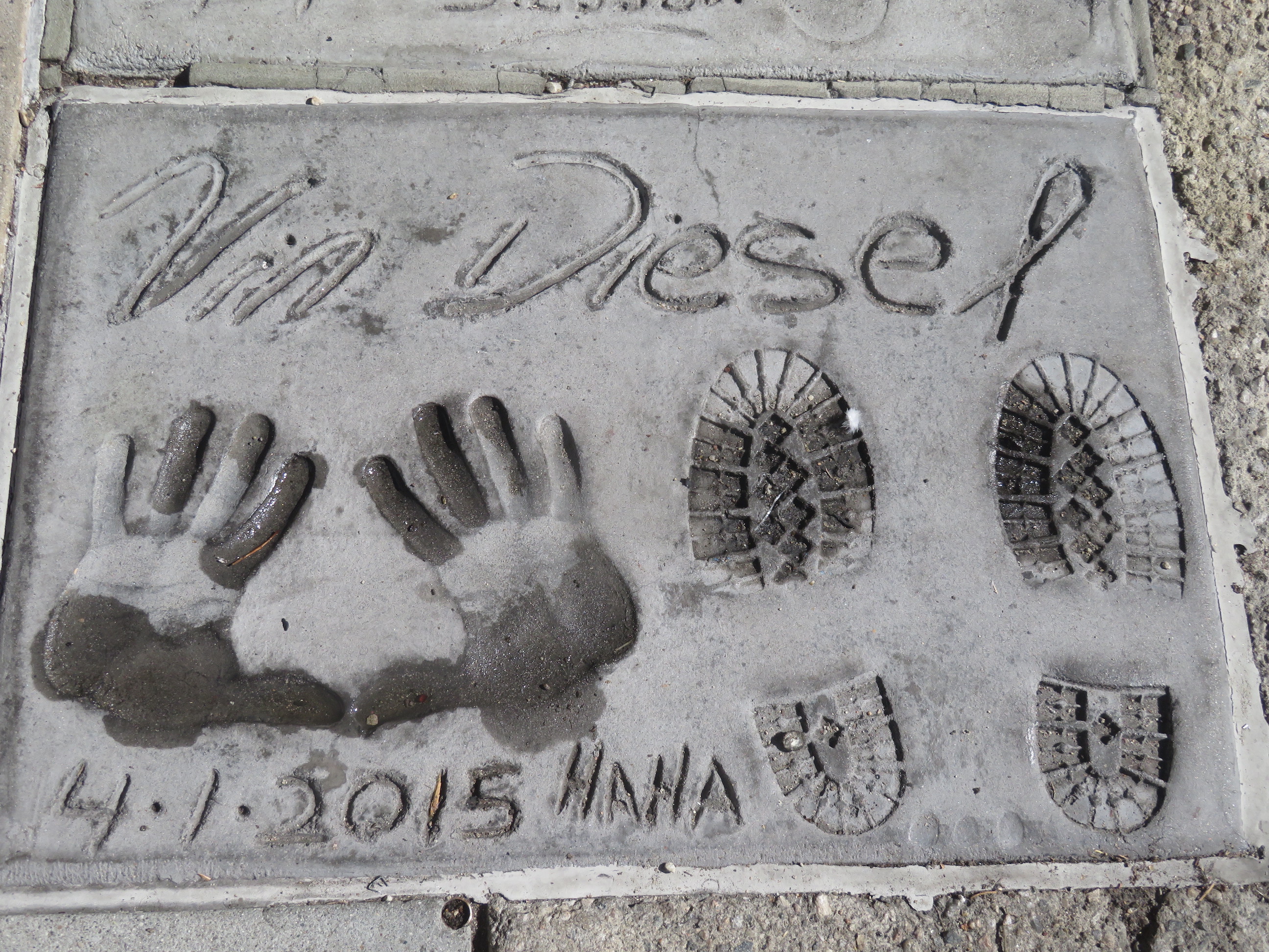 Na een klein half uurtje komen we aan de beroemde ‘Walk of Fame ‘ met de sterren in het trottoir gezet waar de namen van vele beroemde mensen vermeld staan. Op zich slaat dat een beetje tegen, want de rij met sterren is quasi oneindig en eigenlijk ook niet zo goed onderhouden, het ziet er allemaal een beetje aftands en niet echt ‘starstruck’ uit … jammer wel. Uiteindelijk komen we aan het Dolby Theatre van waar onze bus vertrekt. Daar vlakbij is ook het Chines Theater, een vrij opzichig gebouw, waar aan de voorkant de beroemde cementtegels liggen met de hand- en voetafdrukken van beroemde sterren. Leuk om eens te kijken wie hier al allemaal zijn handen en voeten heeft ( mogen ) laten vereeuwigen !
