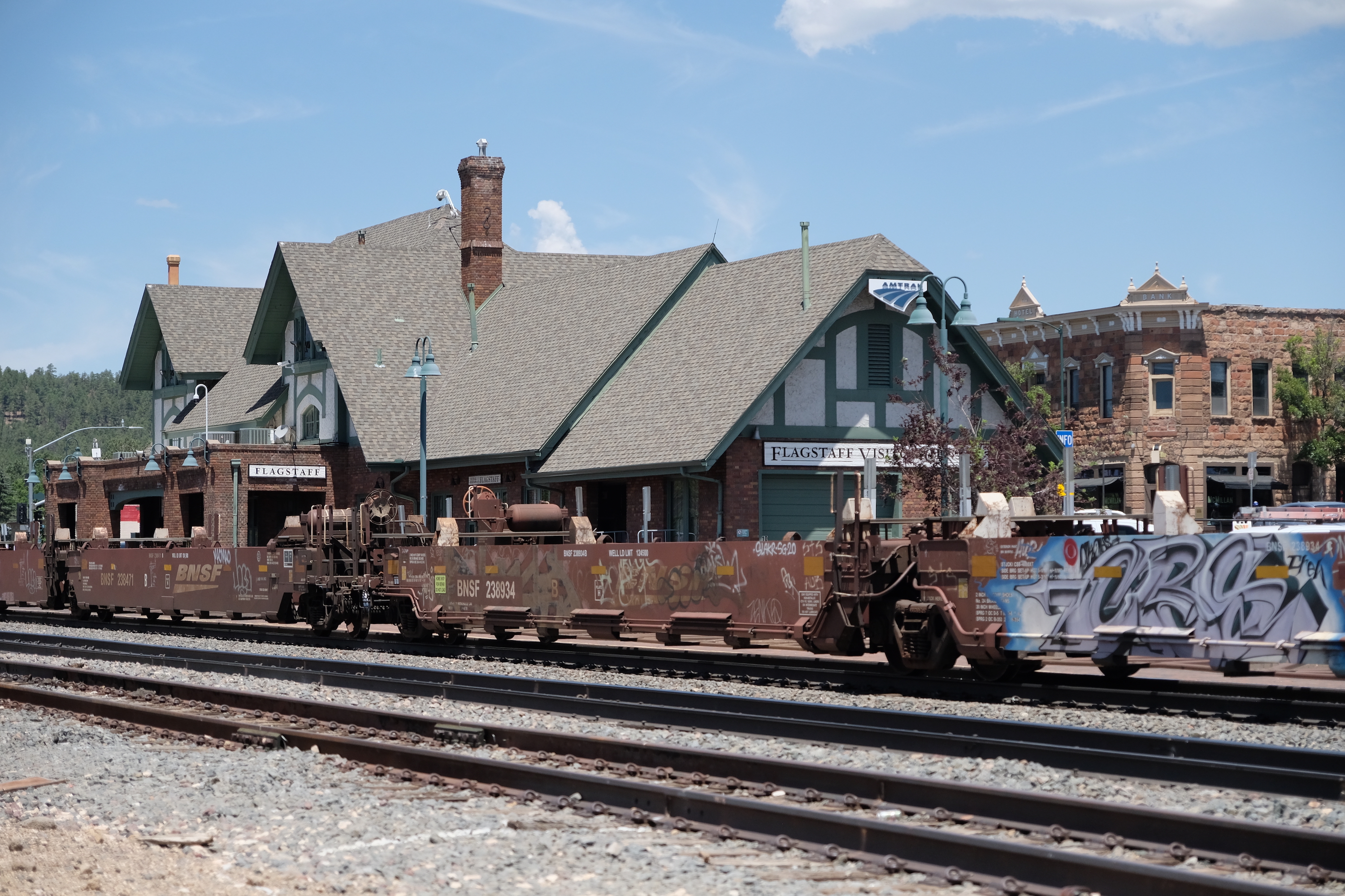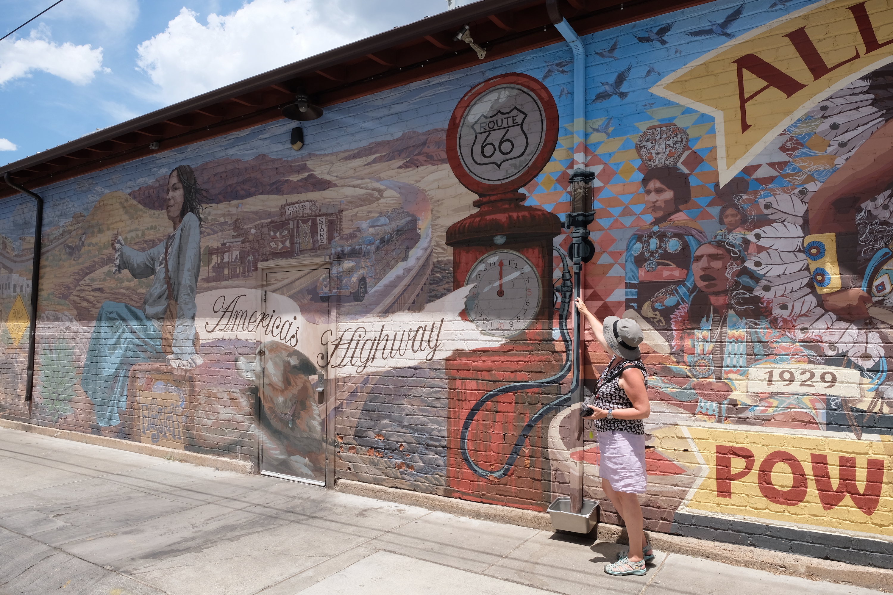 Vooraleer naar de Grand Canyon door te rijden, maken we nog een ommetje langs Flagstaff, een levendig stadje met een gezellig historisch centrum en ook bekend om de verschillende, prachige ‘Murals’, schilderijen op buitenmuren van huizen en andere gebouwen; Werkelijk zeer mooie exemplaren zitten er tussen !