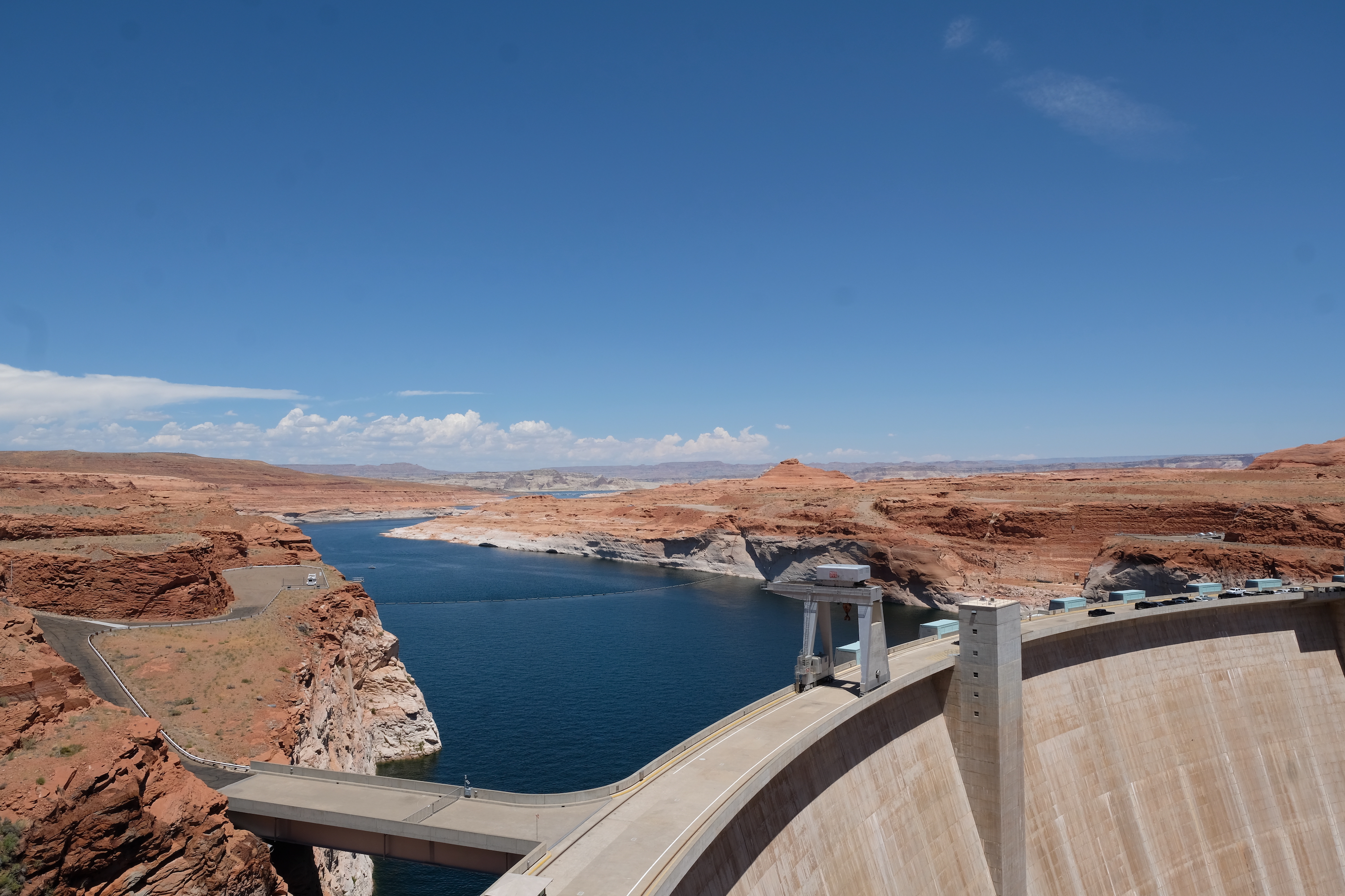 Gezien we nog wat tijd overhebben voor onze afspraak passeren we eerst nog langs de Glen Canyon Dam, een stuwdam over het gekende Lake Powell, voor vele Amerikanen een geliefd vakantiedoel. Die dam is een indrukwekkend bouwwerkje, waar je in het Visitor Centre alle mogelijk uitleg over kan vinden, en die cijfertjes en data zijn even indrukwekkend als de dam zelf.