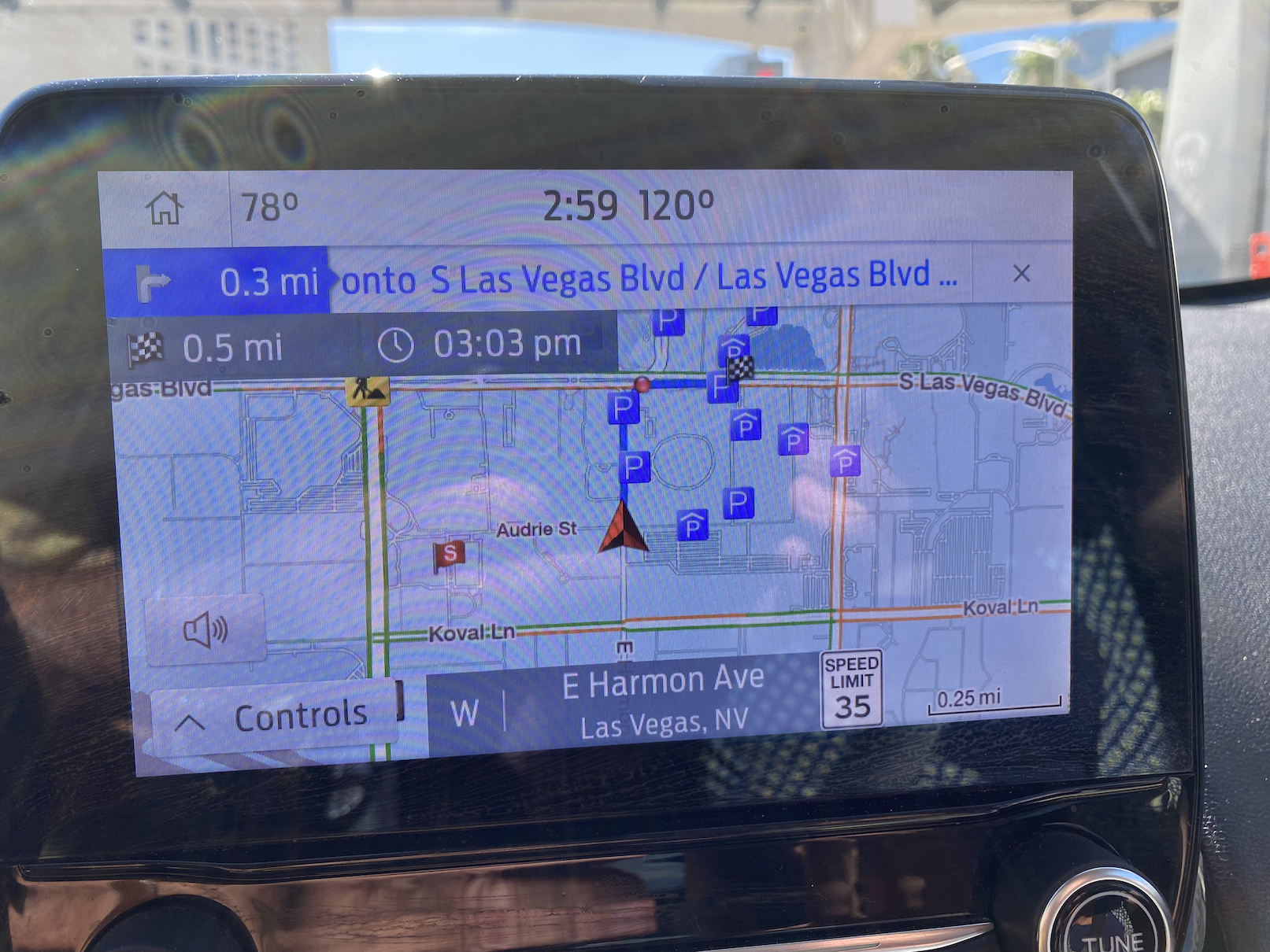 Onze volgende stop wordt dan Las Vegas, en eigenlijk zijn we blij dat we ons uiteindelijke doel naderen … de temperatuur wijst ondertussen zo maar even 120 gr. Fahrenheit aan, dat is ongeveer 48gr Celsius … dat is echt niet meer normaal, zodra je even uit de auto stapt lijkt het wel alsof je in een heteluchtoven terechtkomt, langer dan een kwartiertje wil je daar echt niet in rondlopen !