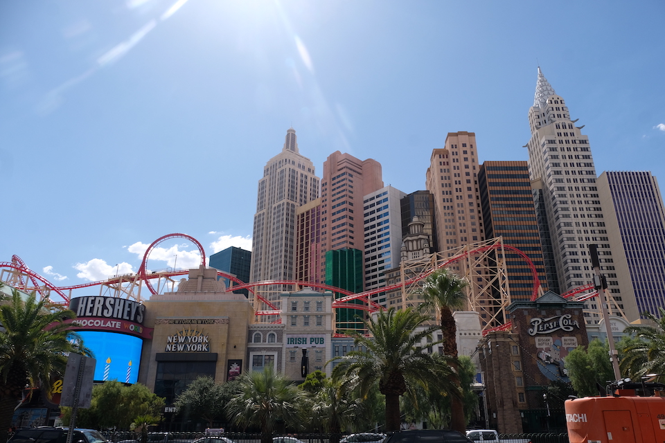 Vegas is dus eigenlijk één grote kermisattractie, op sommige plekken zelfs letterlijk, zo zijn er een echte railway, een monorail, een reuzenrad en als allerlaatste de ‘Sphere’, een grote bol ( sportarena ) die langs de buitenkant vol ledlichtjes gemaakt is, waar constant allerlei andere beelden op geprojecteerd worden, spectaculair wel.