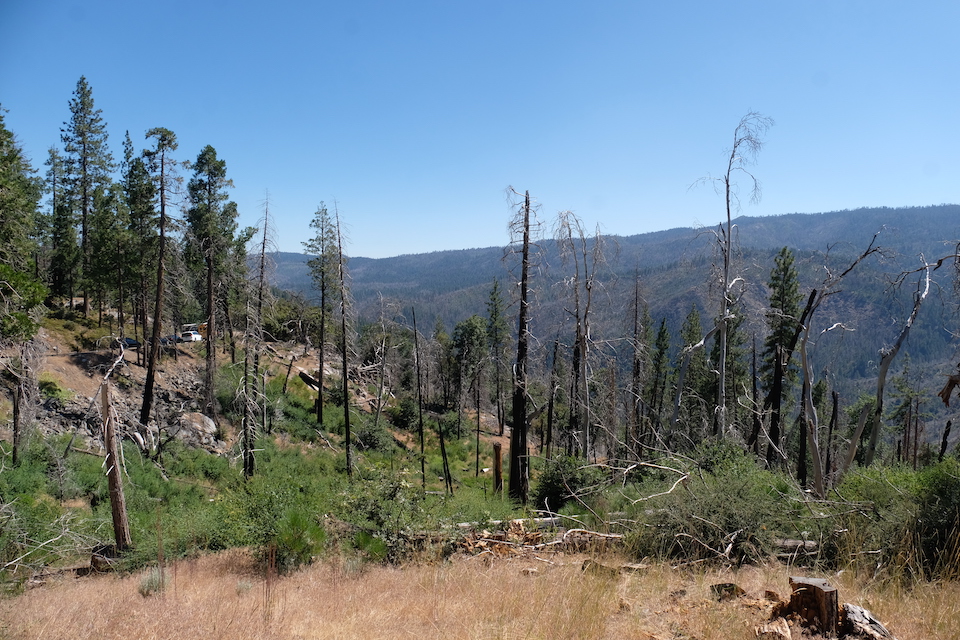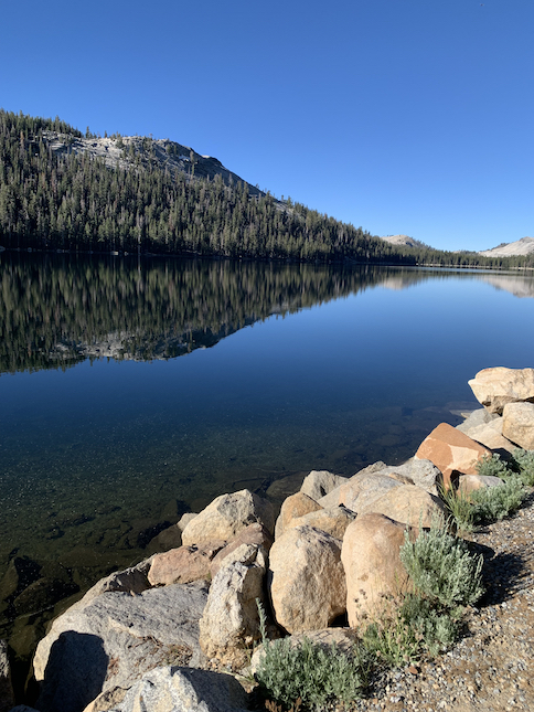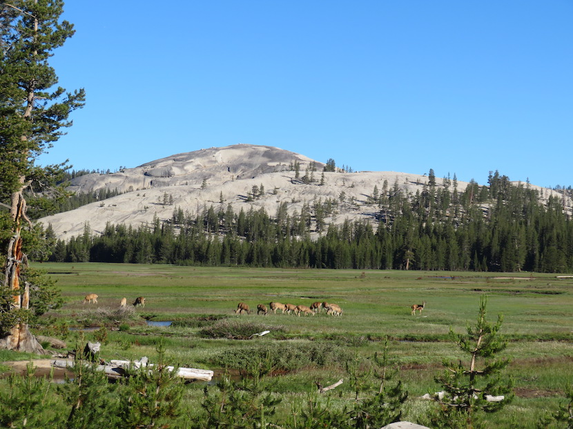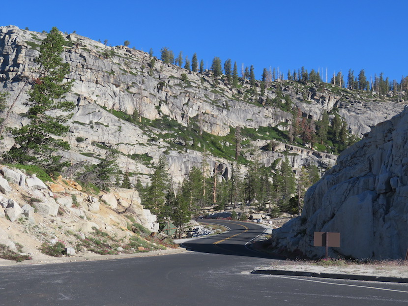 We kunnen dus rustig het park binnenrijden en genieten van de zalig mooie, rustige en frisse bergrit langs de bekende Tioga Pas. Die weg is in de winter en een groot deel van het voorjaar nog gesloten omwille van te veel sneeuw en herstellingen aan de weg na de strenge winter. Dit jaar is hij zelfs maar pas geopend op 22/07, chance dus voor ons, anders hadden we enkele 100-den kilometers moeten omrijden.