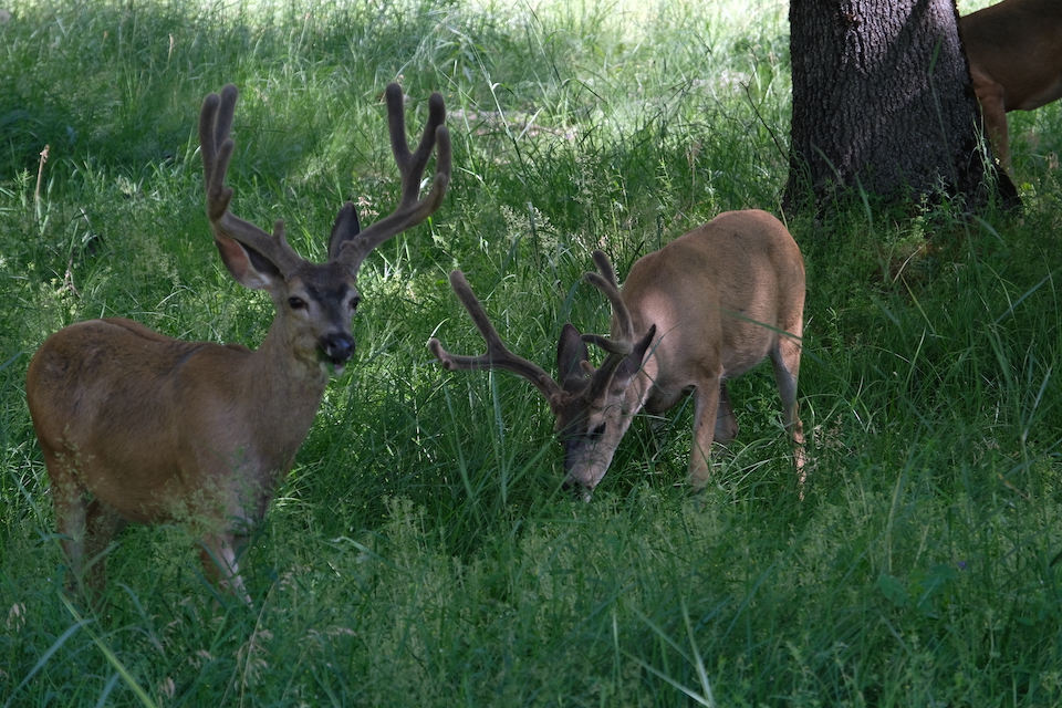 De omgeving is prachtig en we genieten met volle teugen van de mooie bergpas. Onderweg zien we aan de Meadows ook al een hele groep herten die net als wij vroeg uit de veren zijn en rustig in de wei staan te grazen, wat een plaatje ! Enkele van onze doelen zijn de verschillende watervallen – de Bridalveil en de Yosemite -, alsook de Tunnel View, Tennaya Lake, en nog enkele andere uitzichtspunten. We hadden de weg vooraf al uitgedokterd en volgen ons plan min of meer. De uitzichten zijn vaak spectaculair en ontzettend mooi, maar het valt ook direct op dat er vele ‘kale’ plekken zijn, restanten nog van bosbranden van de vorige jaren die vermoedelijk nog jaren nodig zullen hebben om weer helemaal in volle glorie hersteld te zijn, het blijft toch een fragiele omgeving.
