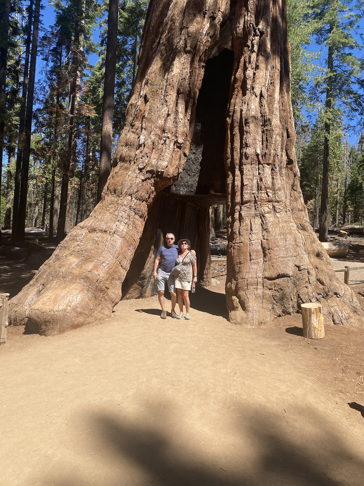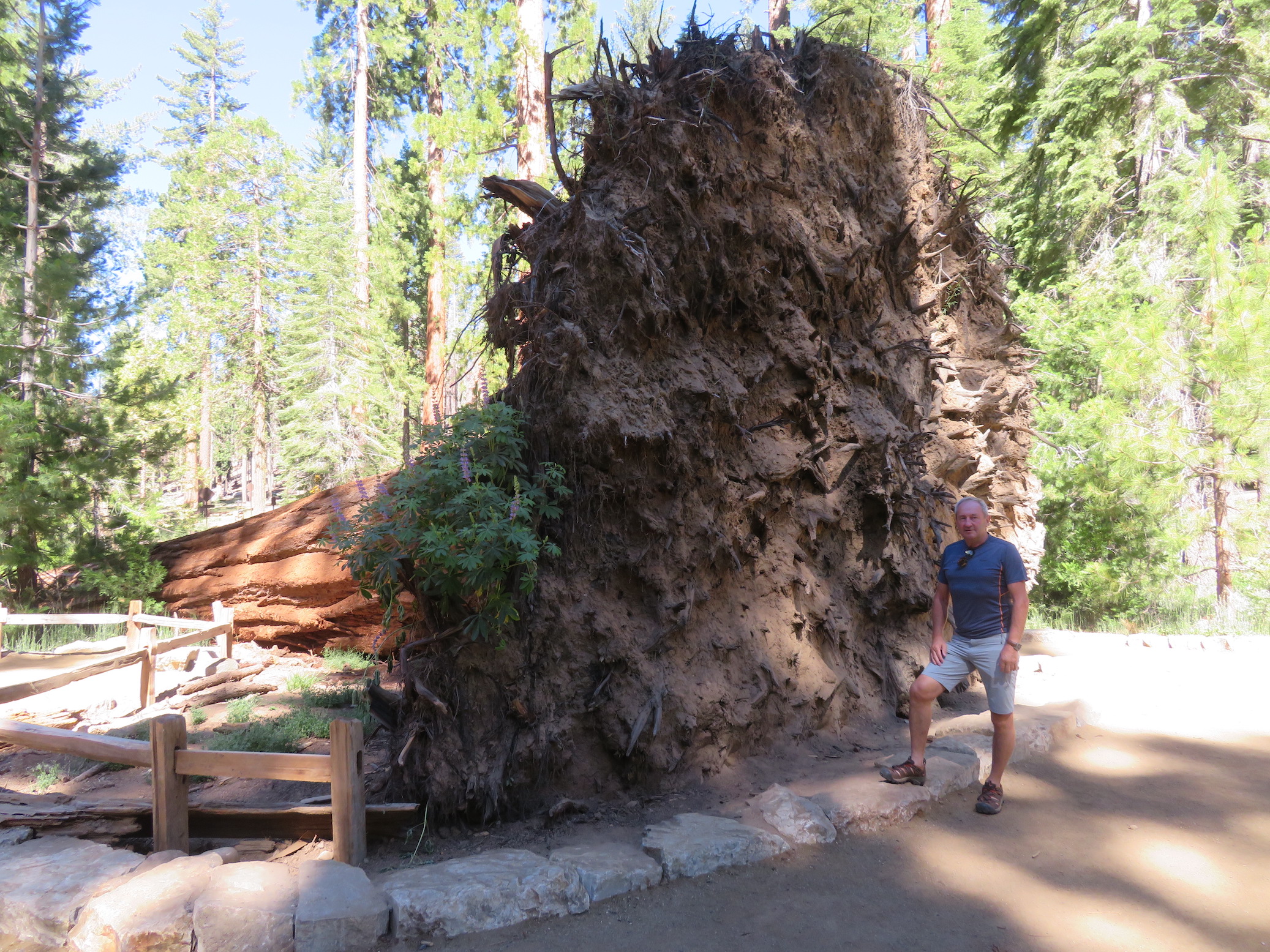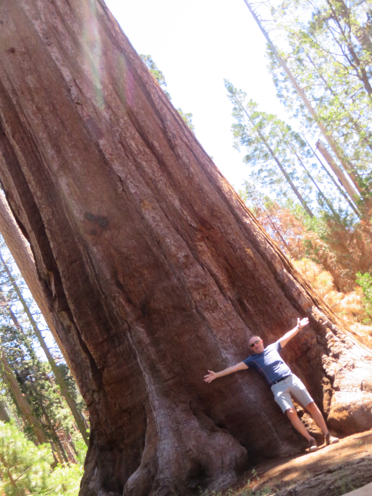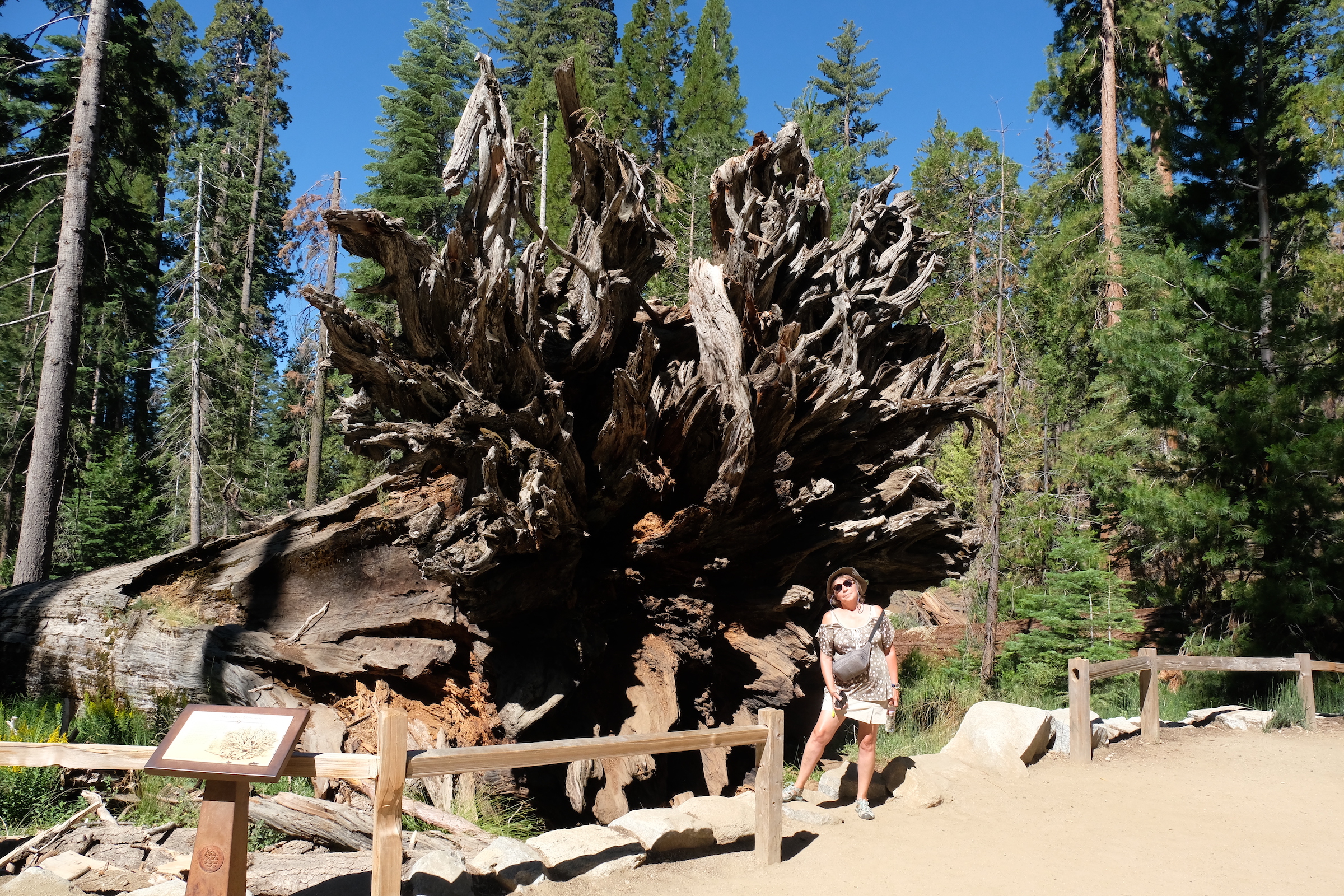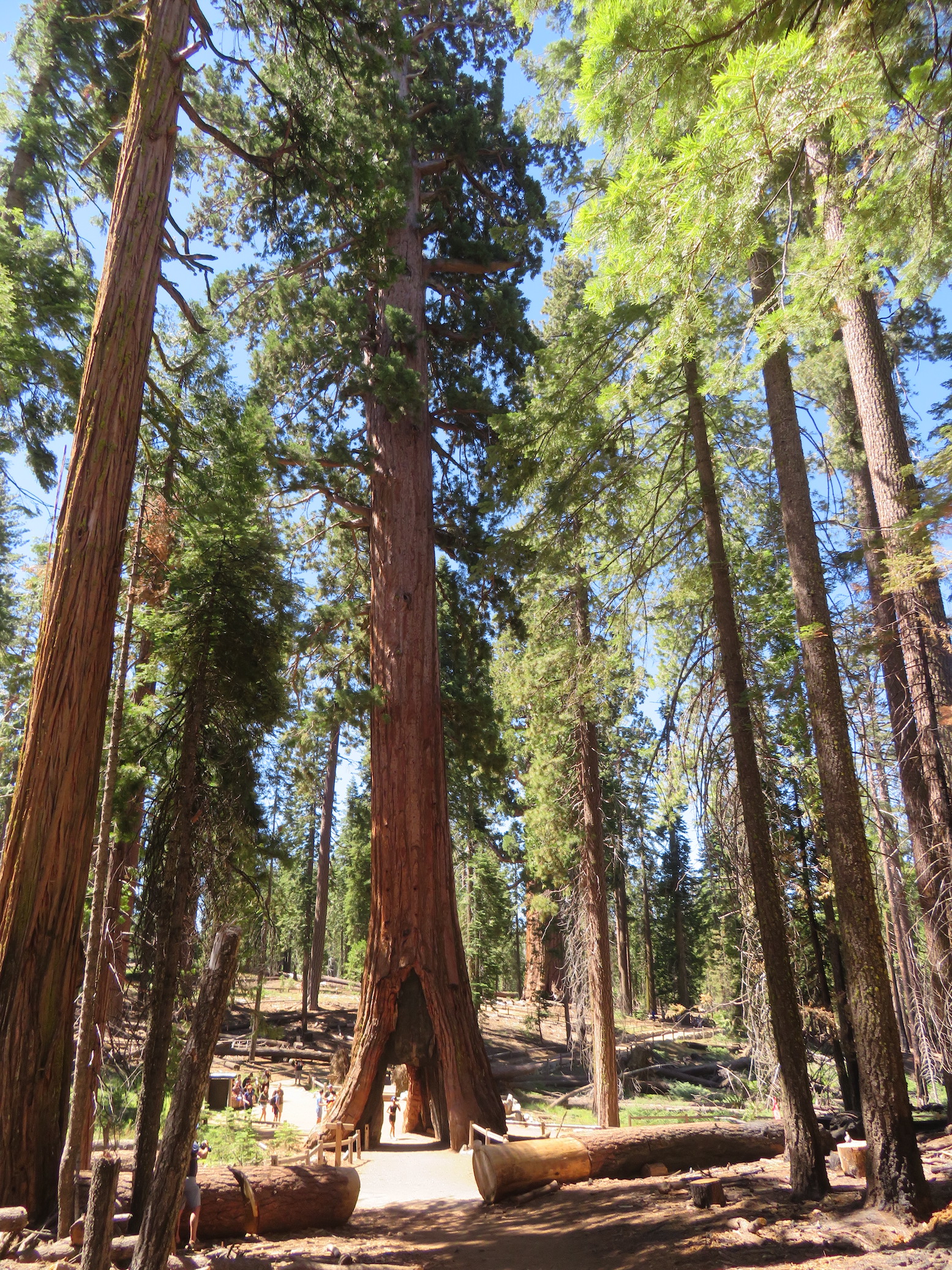 Dat lukt uiteraard best ( je kan de Giants echt niet missen 😉 ) en de extra uitleg krijg je ook als je de info bordjes goed leest. We kiezen voor de Grizzly Giant Loop, genaamd maar de grootste Sequoia die we zullen tegenkomen, dat wordt een toertje van +/- 2 uurtjes. Onderweg heel veel prachtige, ontzettend grote bomen, maar de Grizzly Giant zelf is natuurlijk de grootste blikvanger. Het is een enorme boom van ettelijke 100-den jaren oud en staat heel koninklijk op ons neer te kijken, we zijn maar kleine dwergjes in vergelijking met deze reus … Je kan hem zelfs niet op de foto vastleggen, geen enkele van die Sequoia’s trouwens, zo groot zijn die mastodonten ( trucje : met een verticale ‘pano’ foto lukt het wel ) Ook indrukwekkend is de ‘Tunnel Tree’ ook een Sequoia maar met een tunneltje door de enorme stam waar je zomaar doorheen kan lopen … blijkbaar een restant van een eerdere beschadiging. Mooi !