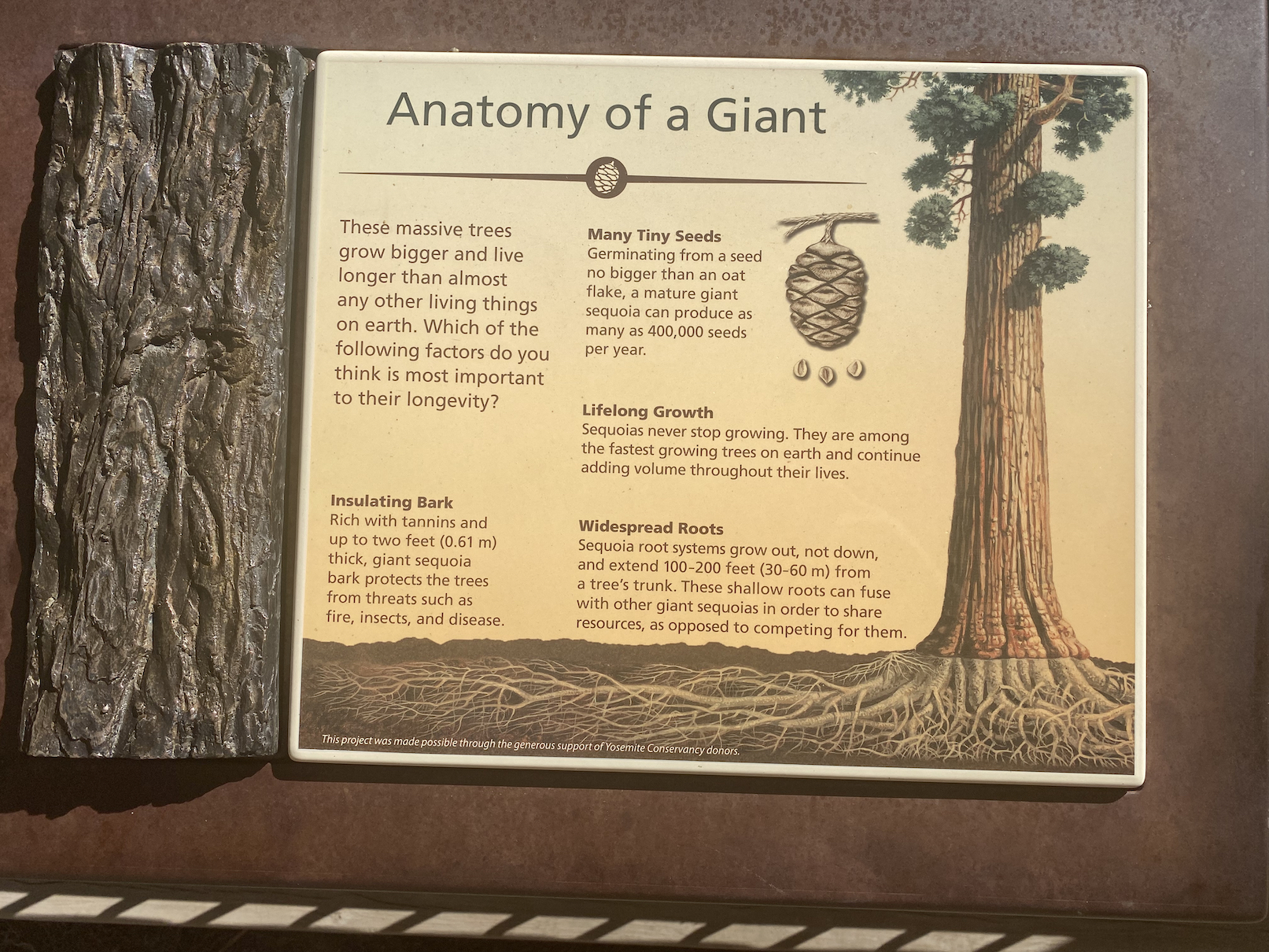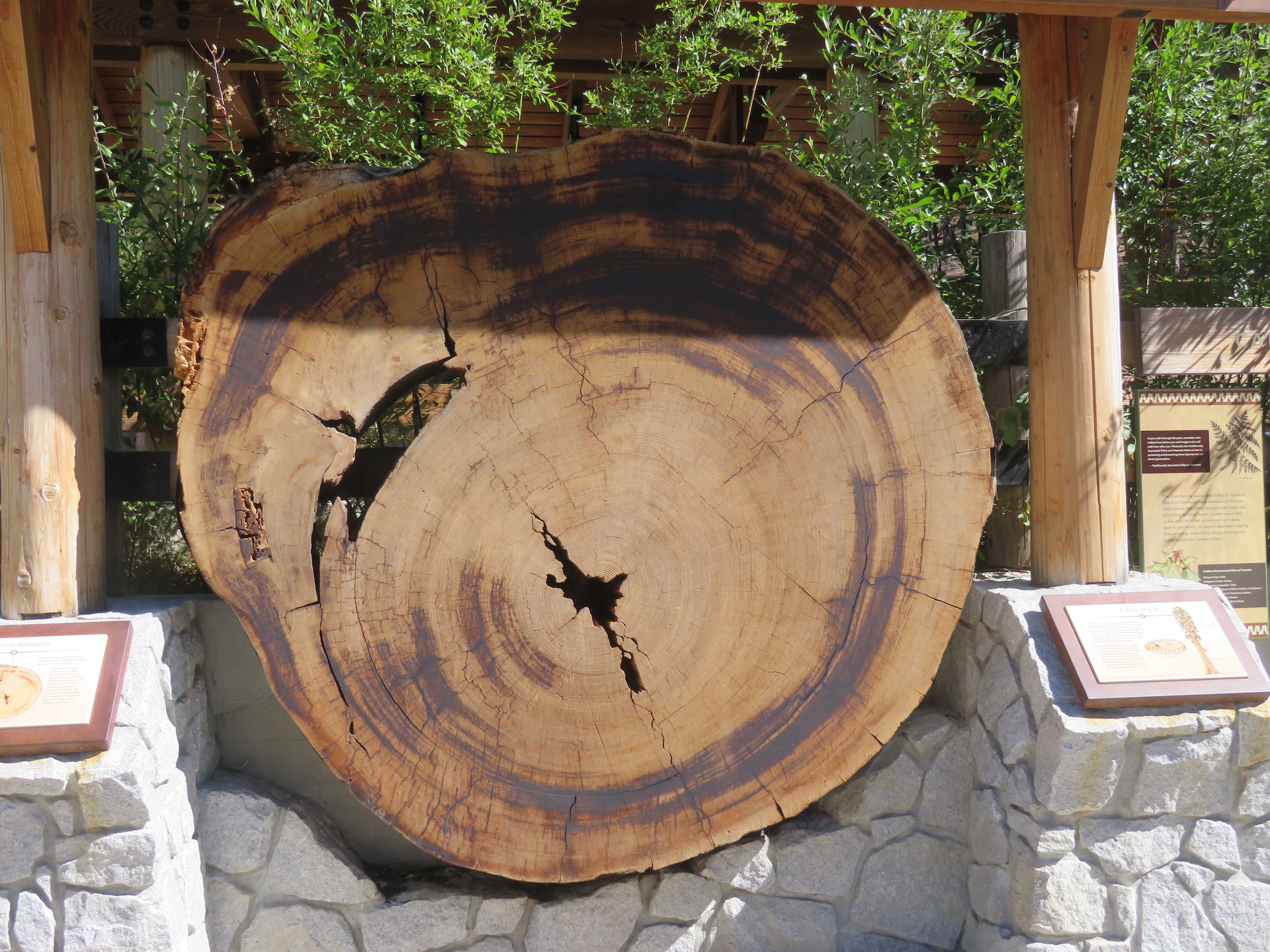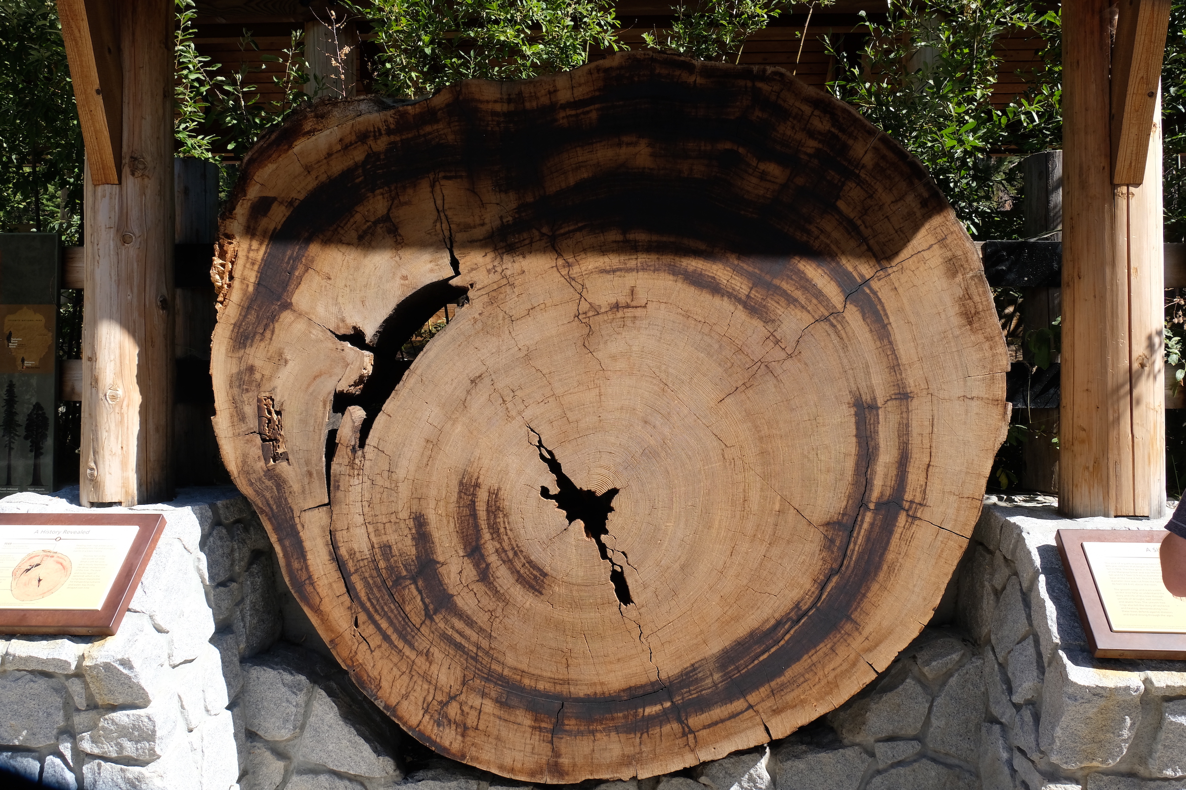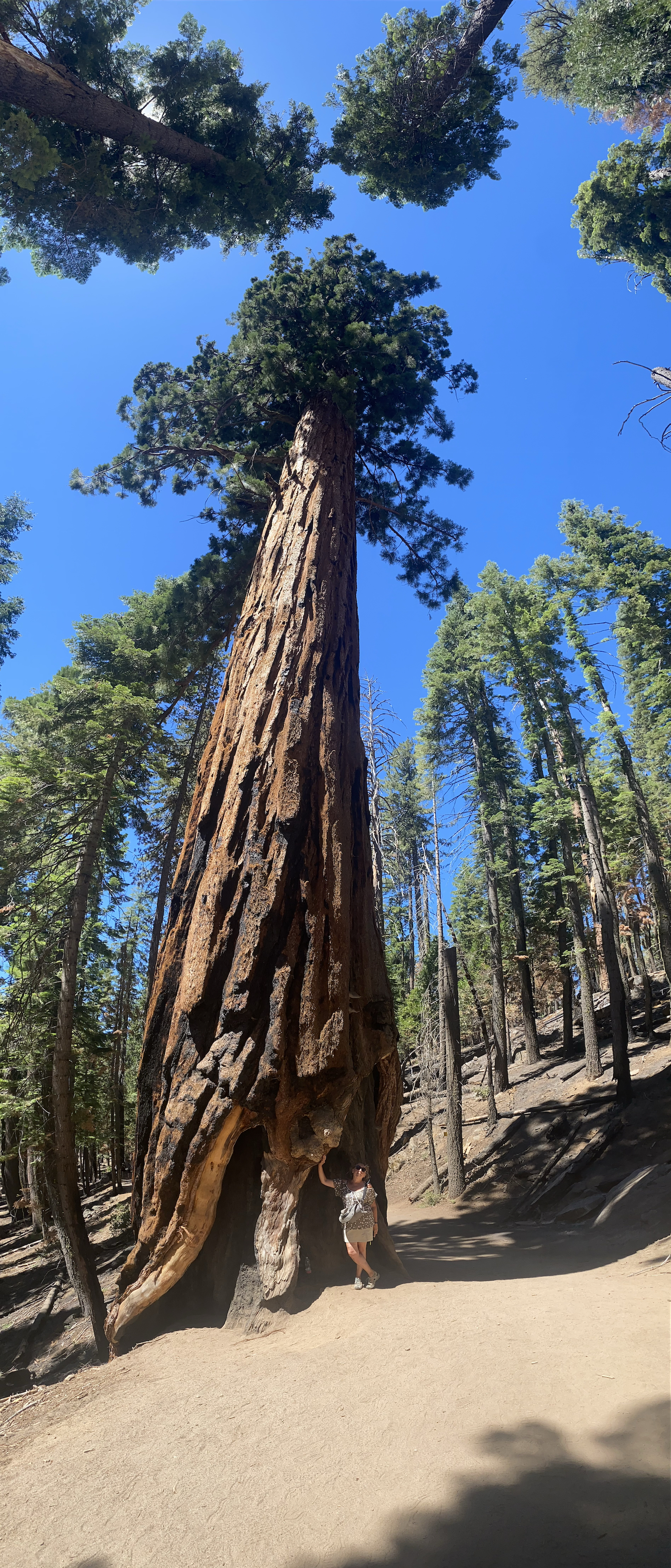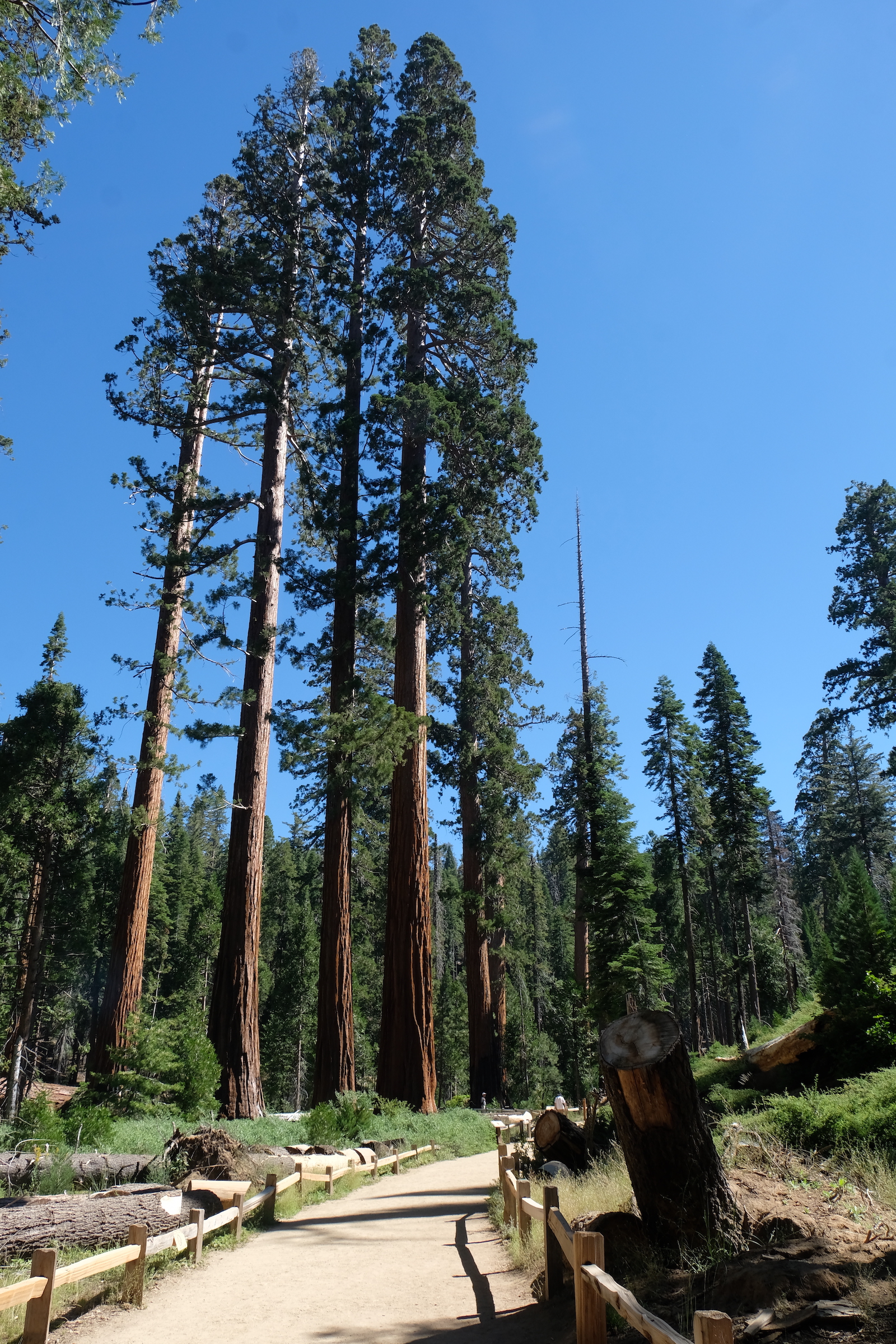 Dat lukt uiteraard best ( je kan de Giants echt niet missen 😉 ) en de extra uitleg krijg je ook als je de info bordjes goed leest. We kiezen voor de Grizzly Giant Loop, genaamd maar de grootste Sequoia die we zullen tegenkomen, dat wordt een toertje van +/- 2 uurtjes. Onderweg heel veel prachtige, ontzettend grote bomen, maar de Grizzly Giant zelf is natuurlijk de grootste blikvanger. Het is een enorme boom van ettelijke 100-den jaren oud en staat heel koninklijk op ons neer te kijken, we zijn maar kleine dwergjes in vergelijking met deze reus … Je kan hem zelfs niet op de foto vastleggen, geen enkele van die Sequoia’s trouwens, zo groot zijn die mastodonten ( trucje : met een verticale ‘pano’ foto lukt het wel ) Ook indrukwekkend is de ‘Tunnel Tree’ ook een Sequoia maar met een tunneltje door de enorme stam waar je zomaar doorheen kan lopen … blijkbaar een restant van een eerdere beschadiging. Mooi !