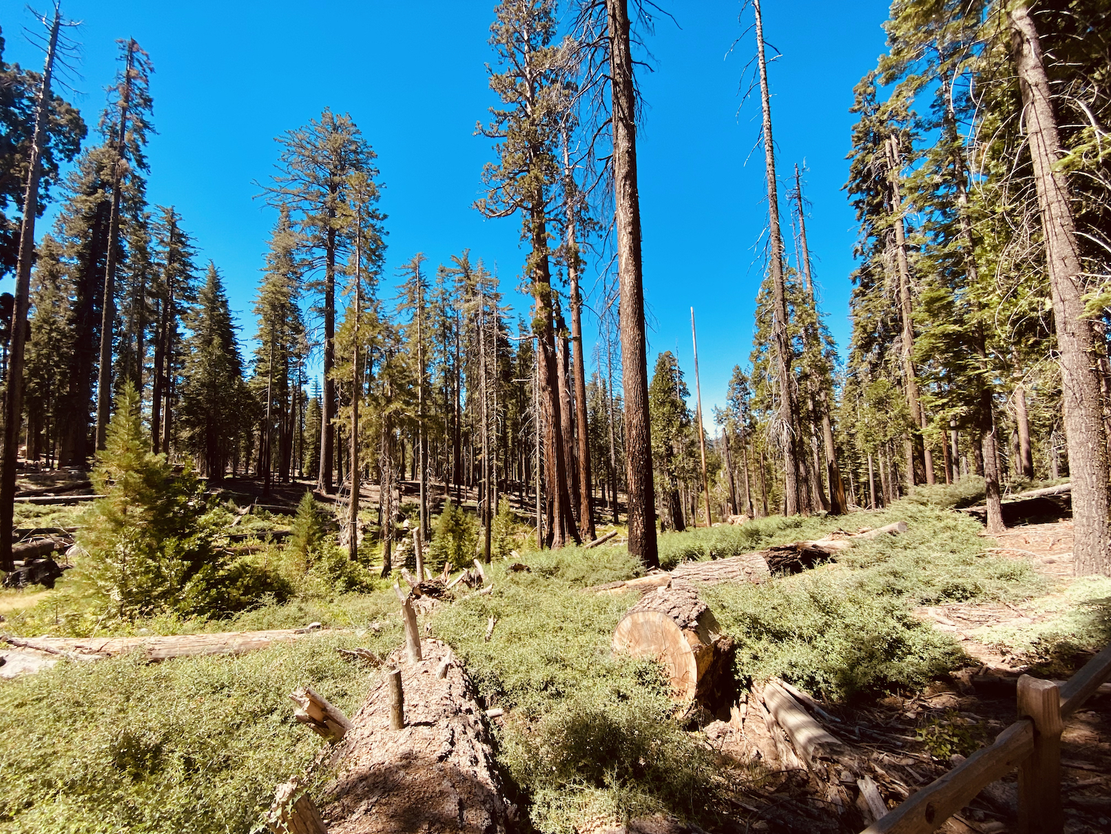 het hoogste punt van Yosemite waar je bijna 360gr rondom kan kijken, je ziet er alle watervallen en bergtoppen, en dat onder een staalblauwe lucht en stralende zon, wat een prachtig uitzicht ! De weg ernaartoe is wel vrij lang en heel erg bochtig ( niet doen als je snel wagenziek wordt ), maar het is de moeite zeker waard. We genieten van de schitterende views, blijkbaar is alles wat je van hieruit kan zien Yosemite territorium, indrukwekkend toch wel weer ! Ondertussen is het toch al redelijk laat geworden en hoog tijd om terug te keren. Yosemite is zeker één van de mooiste parken die we gezien hebben, alleen jammer dat er erg veel schade is door enorme bosbranden in de voorgaande jaren ( ook bij de Sequoia’s helaas ) Maar dat is dan vooral het ergst voor die prachtige natuur …
