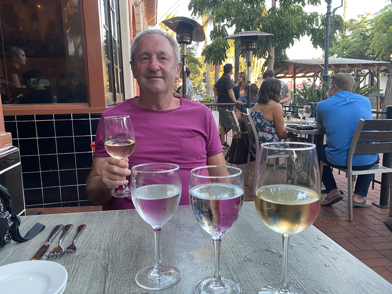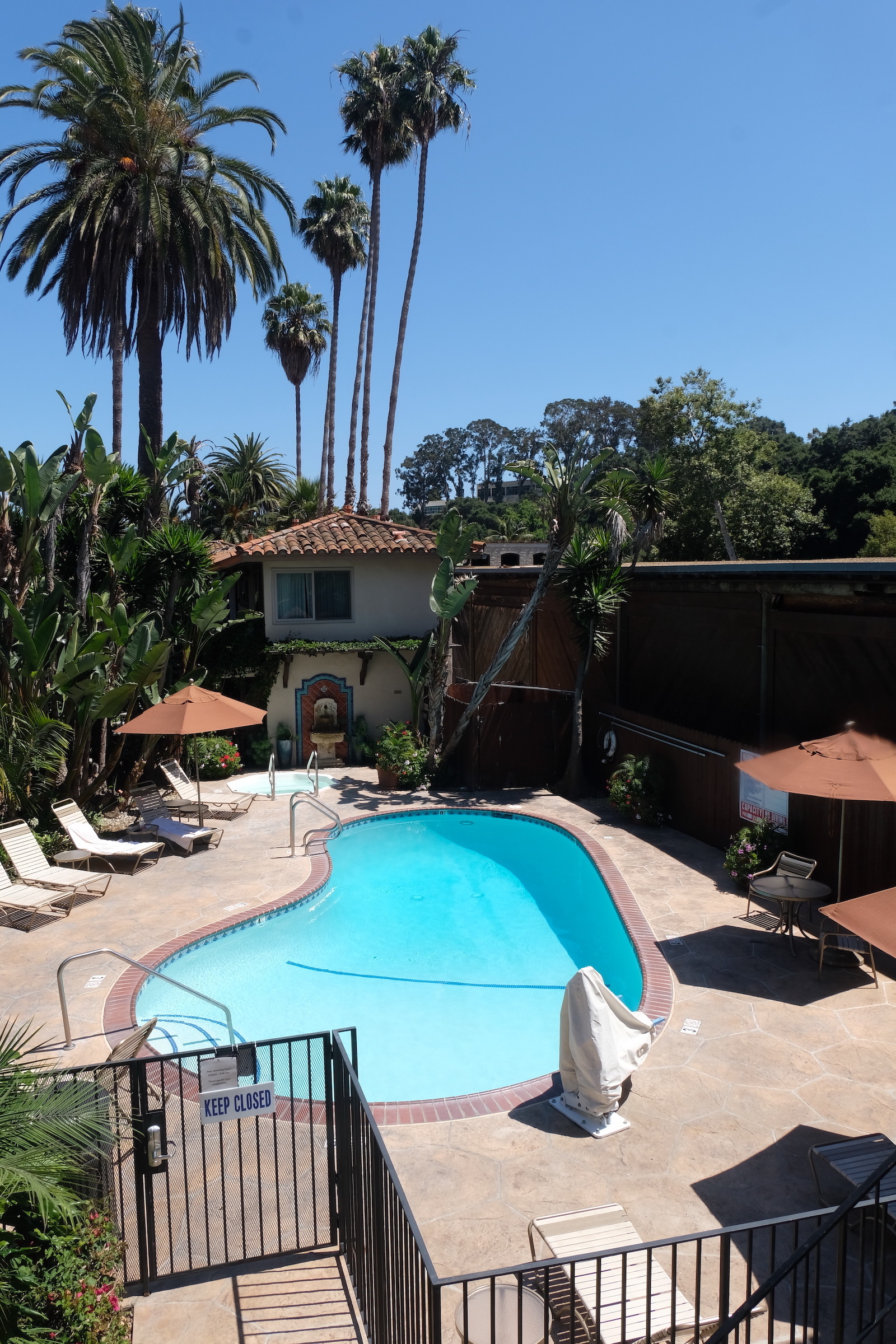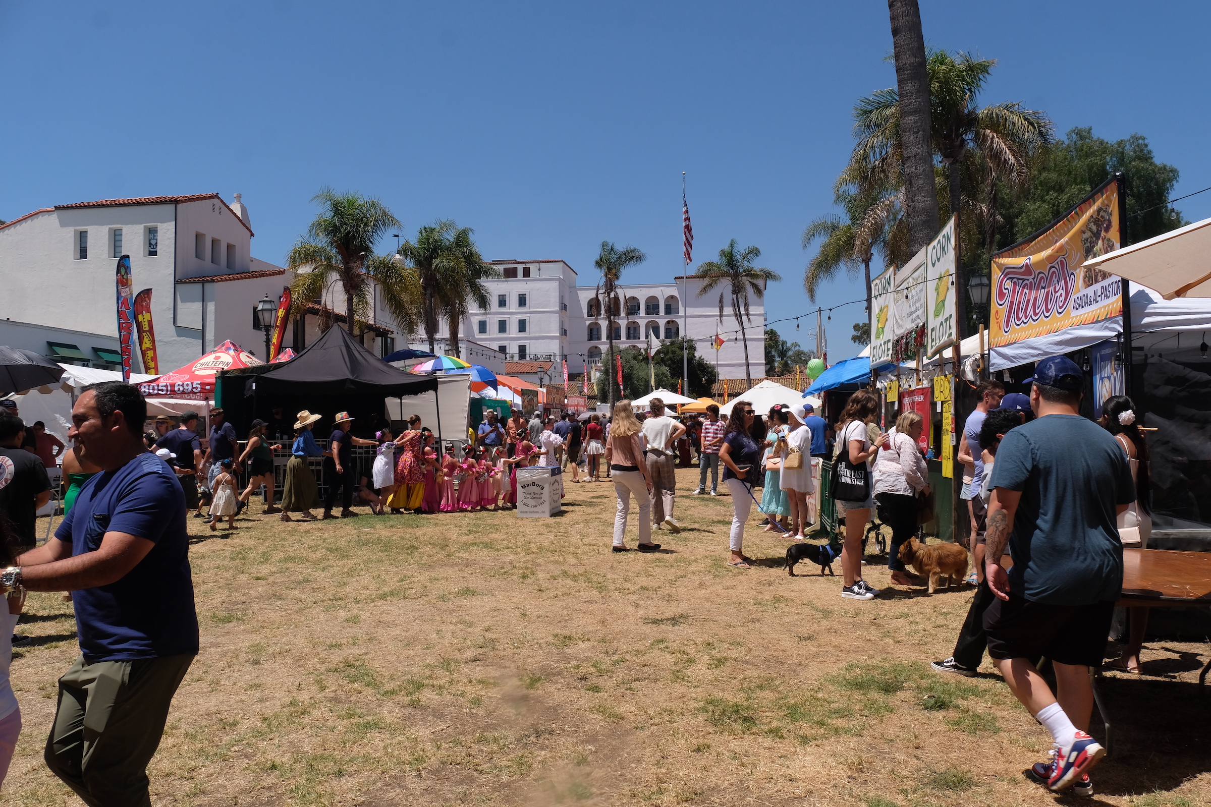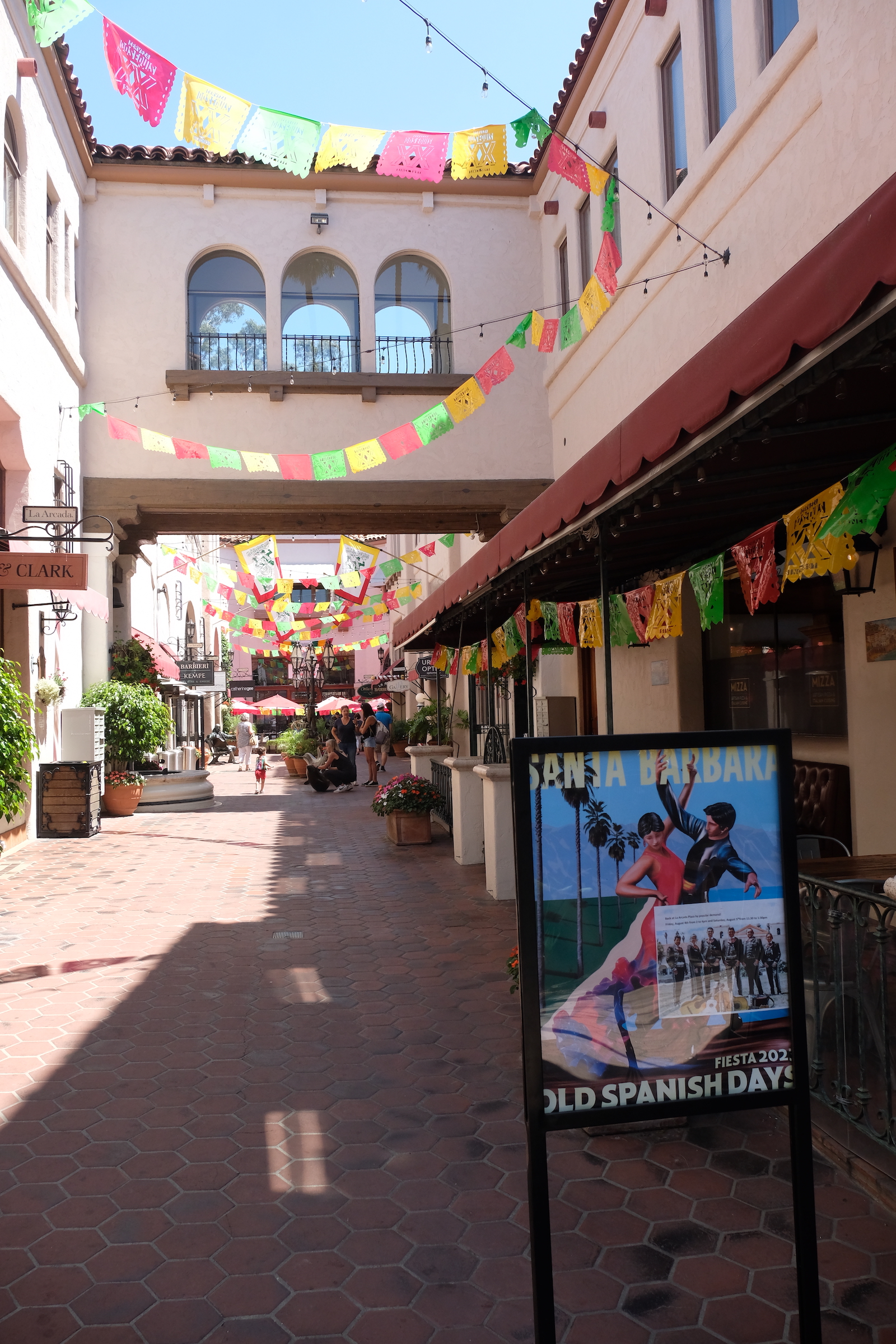We proberen er een rustige dag van te maken, gaan op t gemakje ontbijten buiten in het ochtendzonnetje en we nemen er onze tijd voor. Geen plannen vandaag, dus beslissen we om eens tot in het centrum van Santa Barbara te wandelen, blijkbaar is er een vrij levendige winkel- en uitgaansbuurt, en bovendien is het vandaag fiesta, de ‘Spanisch Old Days’ of iets dergelijks wordt gevierd, eerbetoon aan de stichting van Santa Barbara zoveel jaren geleden door Spaanse kolonisten.