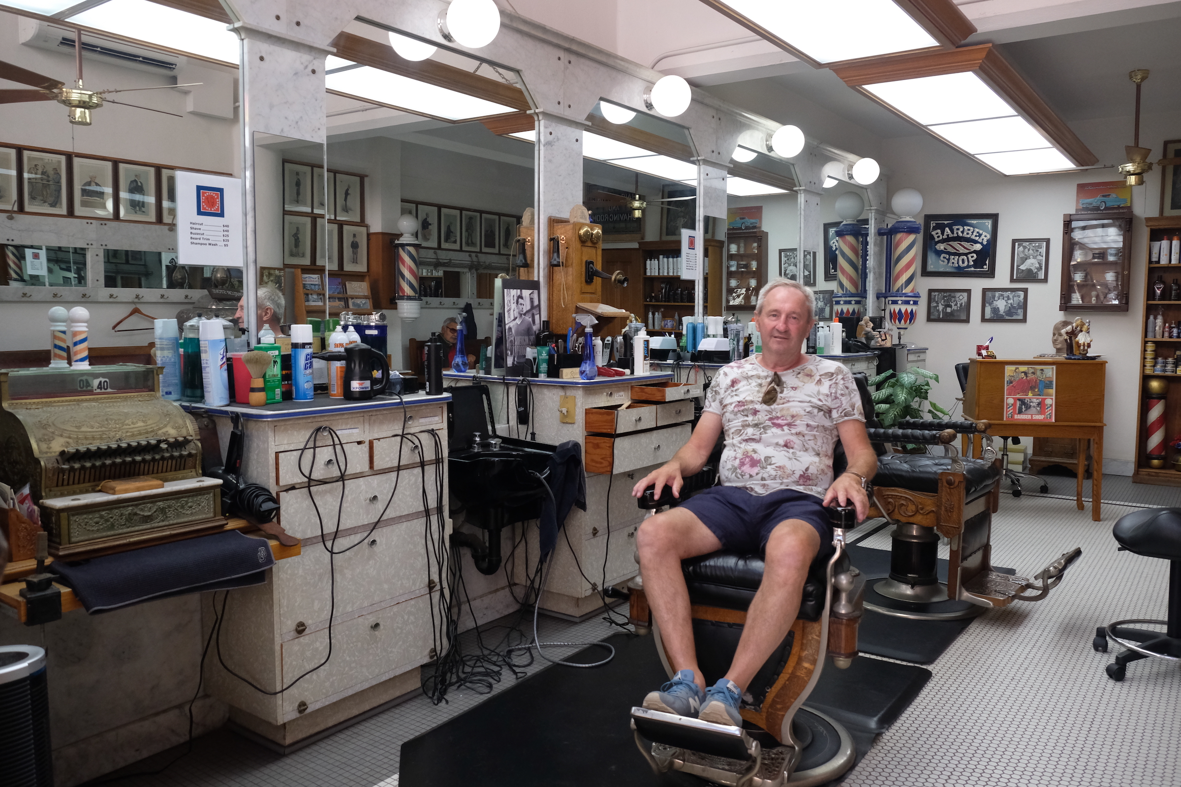 Na een tijdje wandelen we weer verder en in één van de kleine steegjes die uitgeven op State Street merken we een kleine ‘Barber-shop’ op, nog redelijk authentiek met échte kappersstoelen en nog een aantal andere attributen uit lang vervlogen ‘Barber’tijden …