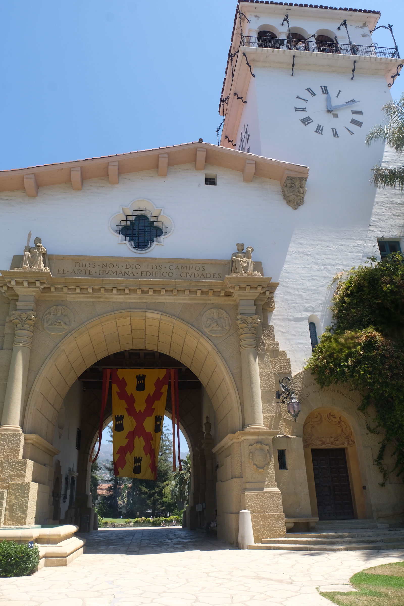 We wandelen daarna weer een eindje door en komen uiteindelijk uit bij de origiele ‘MIssion’, daar waar dus ooit de fundamenten gelegd zijn van het ontstaan van Santa Barbara. Een prachtig gebouw met een mooie tuin, en ook daar wordt volop aan een podium gebouwd om deze avond de nodige muzikale intermezzo’s te voorzien.