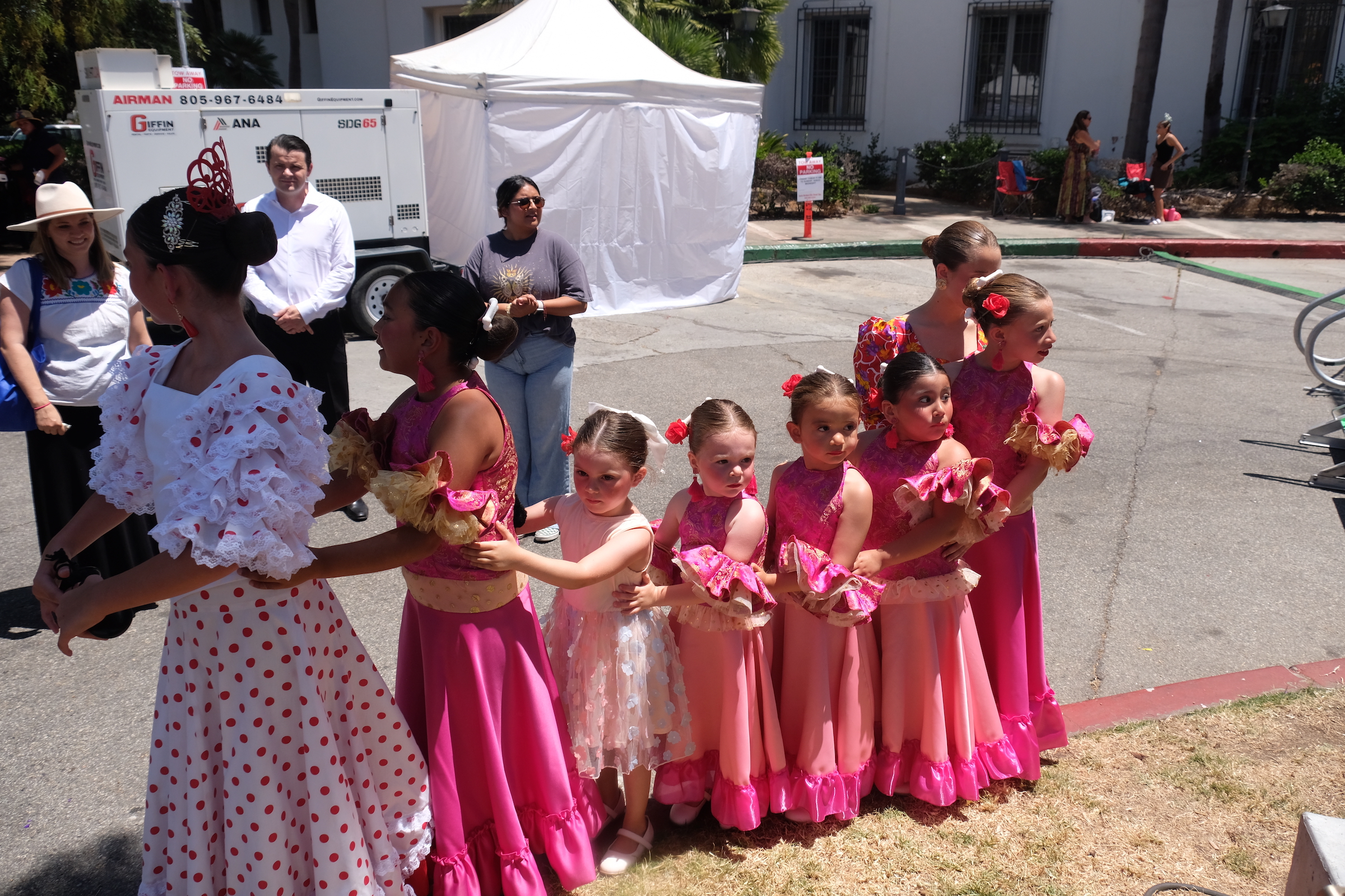 We flaneren wat rond, bezoeken een paar winkeltjes en als snel zijn we een paar uur verder. Stilaan komt er meer beweging op straat en op één van de pleintjes is een podium opgesteld waar een Spaans-getinte dansgroep met allemaal ( soms nog echt kleine ) meisjes een dansje komt opvoeren, cute wel 🙂 We drinken er iets en bekijken de dansjes van die kleine meisjes in de prachtige kostuums, ze hebben het allemaal goed geoefend !