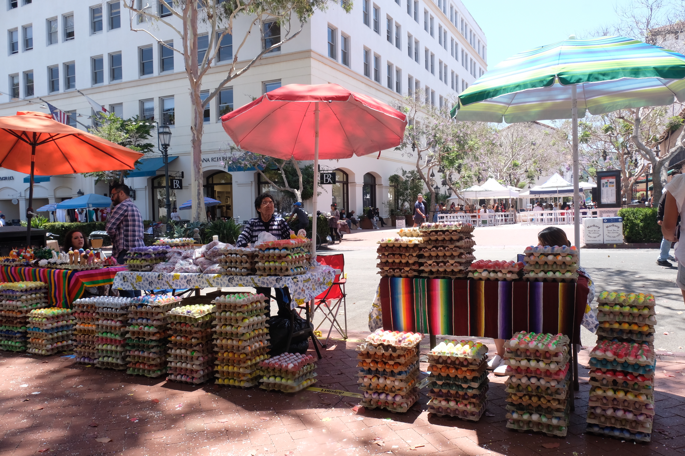 Wat ons ook overal opvalt zijn kraampjes waar mensen op het eerste zicht beschilderde eieren verkopen… bij nader inzicht blijken het allemaal ‘lege’ schelpen te zijn, i.p.v. zijn ze echter gevuld met mini-confetti, en dat is voor de kindjes natuurlijk superleuk om dergelijke eitje naar vriendjes of familie te smijten zodat de confetti overal in het rond vliegt en kruipt waar het niet kruipen moet 😉