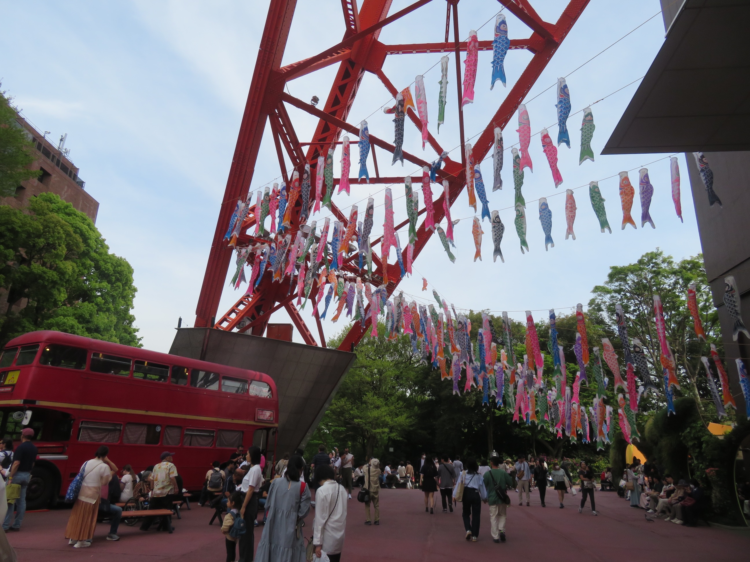 Later wandelen we richting Tokyo Tower, een soort replica van de Eiffeltoren, maar dan in knalrood en met allerlei snoep- en souvenirwinkeltjes erin.