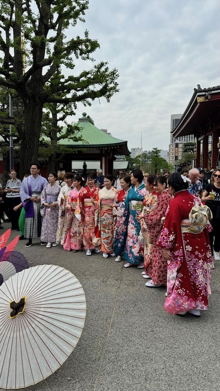We nemen de metro naar Asakusa, waar we rondwandelen in de kleine straatjes en ze ons op verschillende momenten leuke en interressante weetjes vertelt en we ook eens een kijkje nemen in een zaak waar ze een klein soort ‘altaartjes’ maken die mensen thuis opstellen voor bvb. een succesvol leven voor de kinderen.
