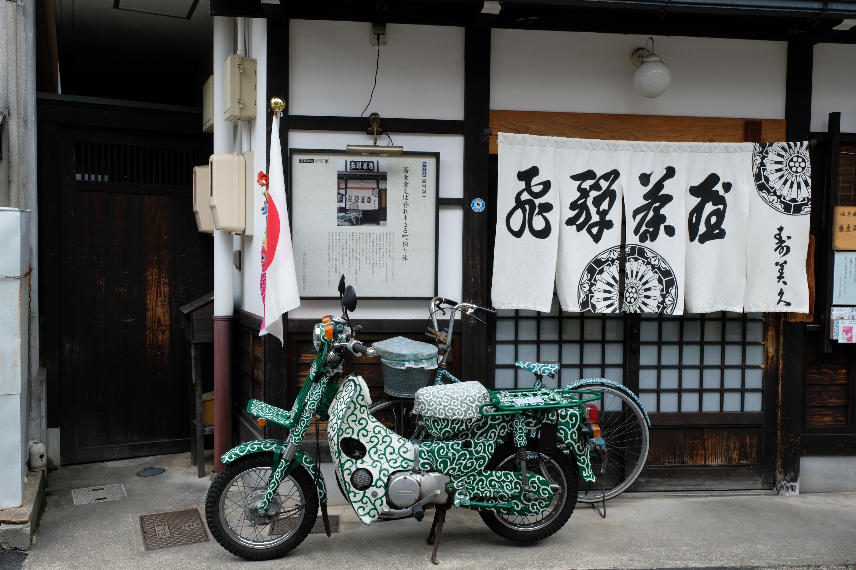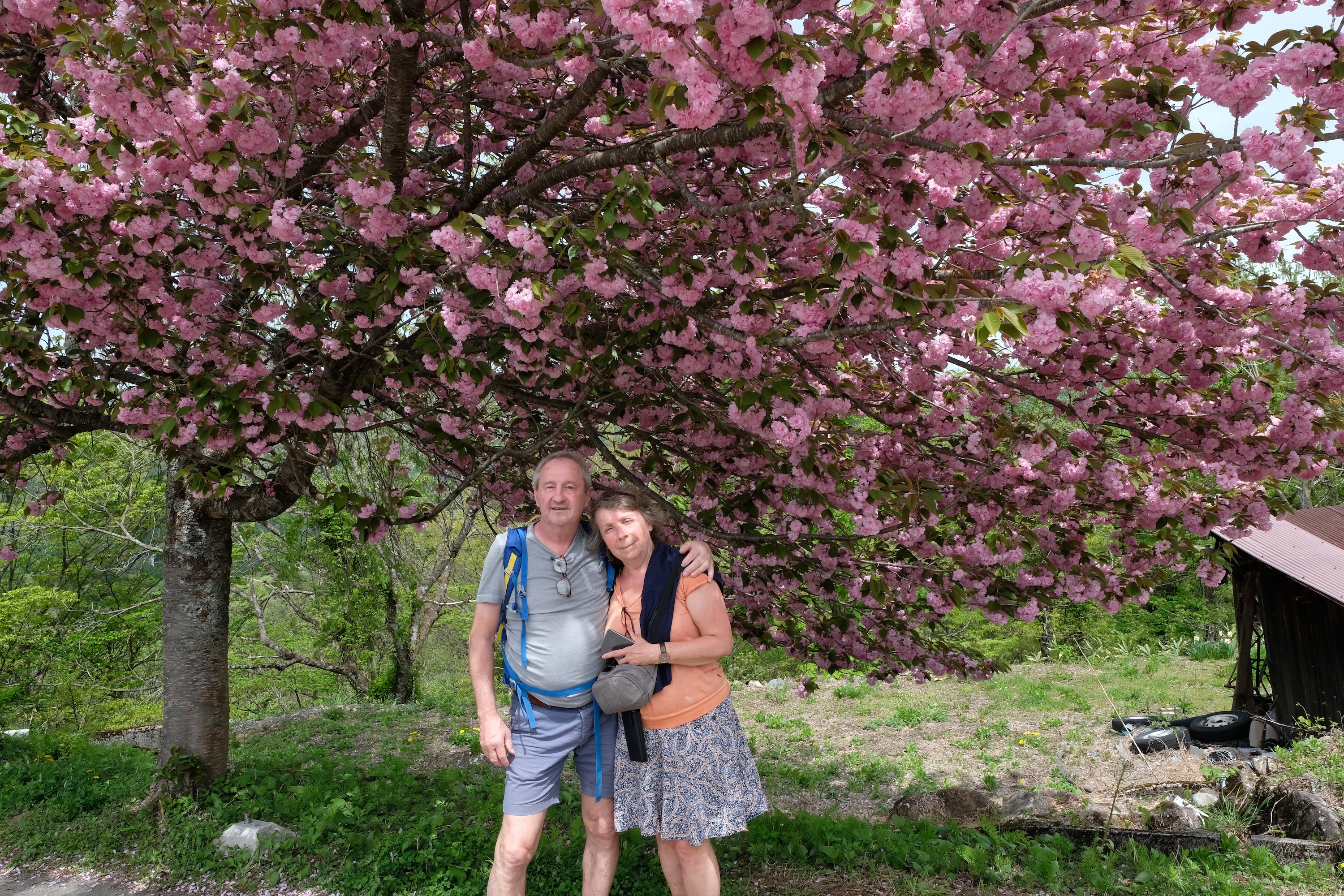 We zien in het dorp zelf ook nog verschillende kleine rijstveldjes ( toch wel speciaal, meestal zie je die enkel in grote vlaktes buiten de dorpen ) en drinken we nog een koffietje in een klein zaakje, waar we ons op het mini-terrasje buiten zetten om tijden de koffiebreak nog van het zonnetje te genieten. De meeste Japanners bekijken ons daarom een beetje raar, want zij mijden de zon als de pest met parasols, hoedjes en zelfs handschoenen soms …