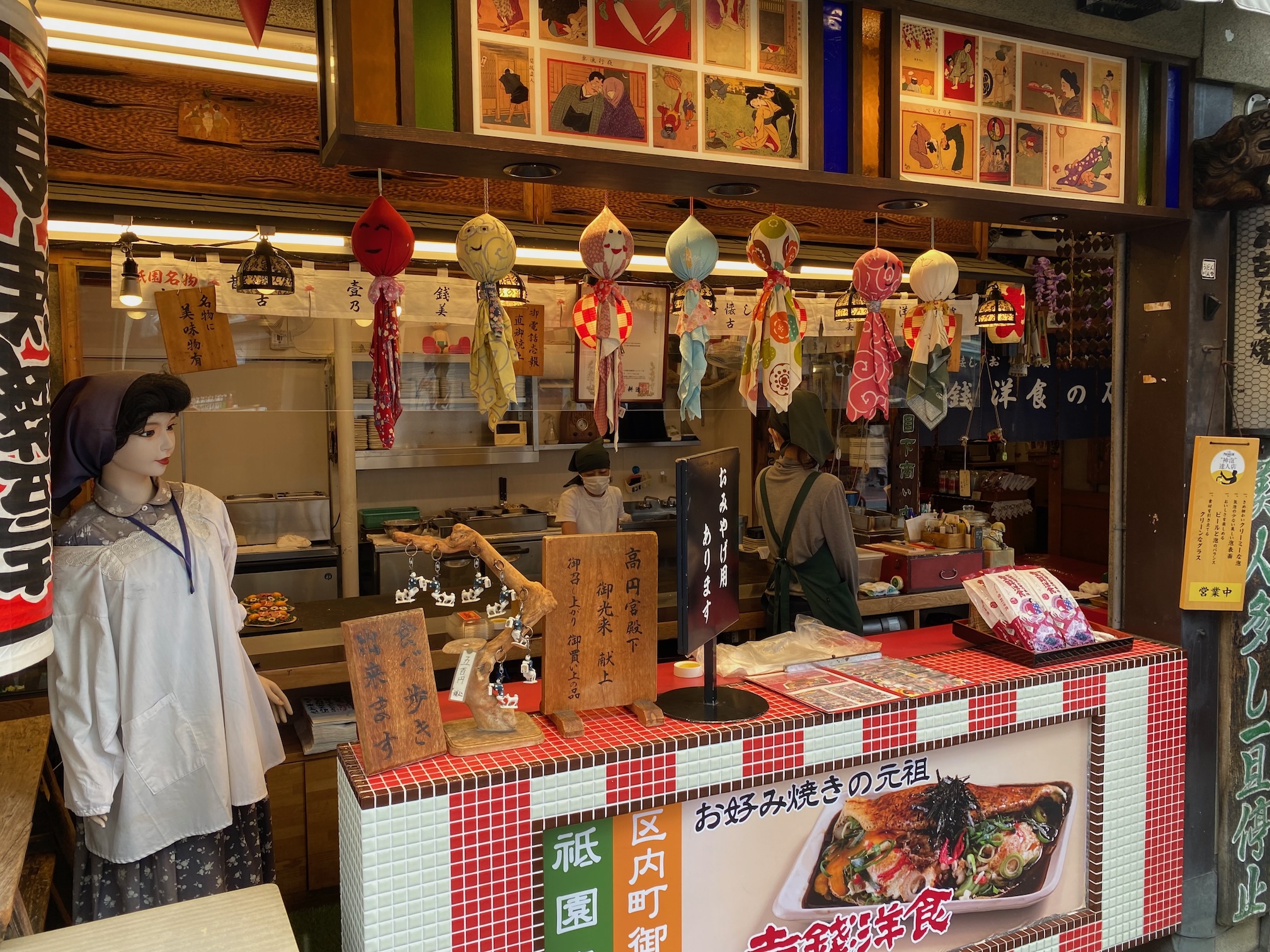 het gaat om de buurt waar de beroemde Geisha’s meestal wonen en dus ook wel eens rondwandelen, maar gezien opdringerige toeristen in het verleden deze verfijnde dames soms echt wel te pas en te onpas lastigvielen voor foto’s en zelfs aan de sjieke kimono’s trokken en duwden, is er beslist om dit deel dus af te sluiten … jammer voor de minder opdringerige toeristen zoals wij natuurlijk …