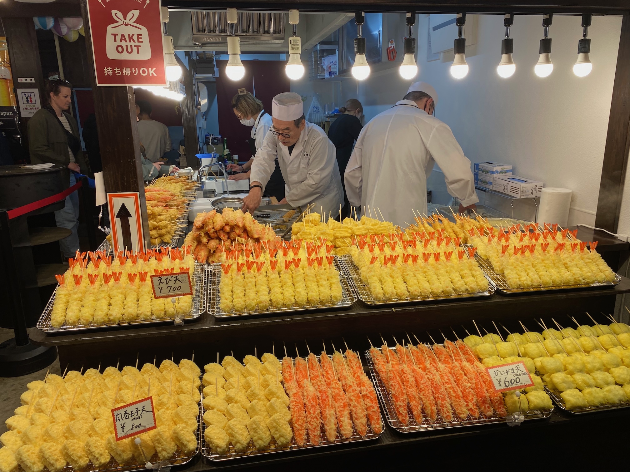 Het bestellen van die maaltijd is trouwens supersimpel, er is namelijk maar 1 gerecht te verkrijgen… het is weer een andere versie van de okonomyiaki pannenkoek die we gisteren geproefd hebben … deze keer is het meer een envelopje dat goed gevuld is met vanalles … wat precies weten we nog steeds niet, maar het was wel lekker ( gelukkig maar )