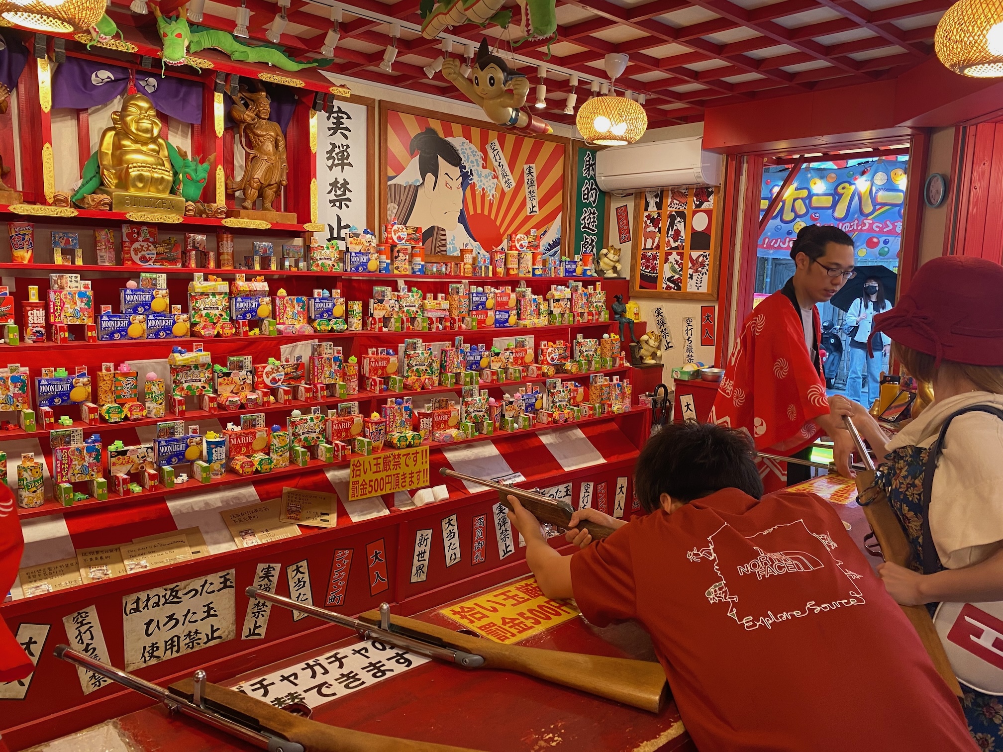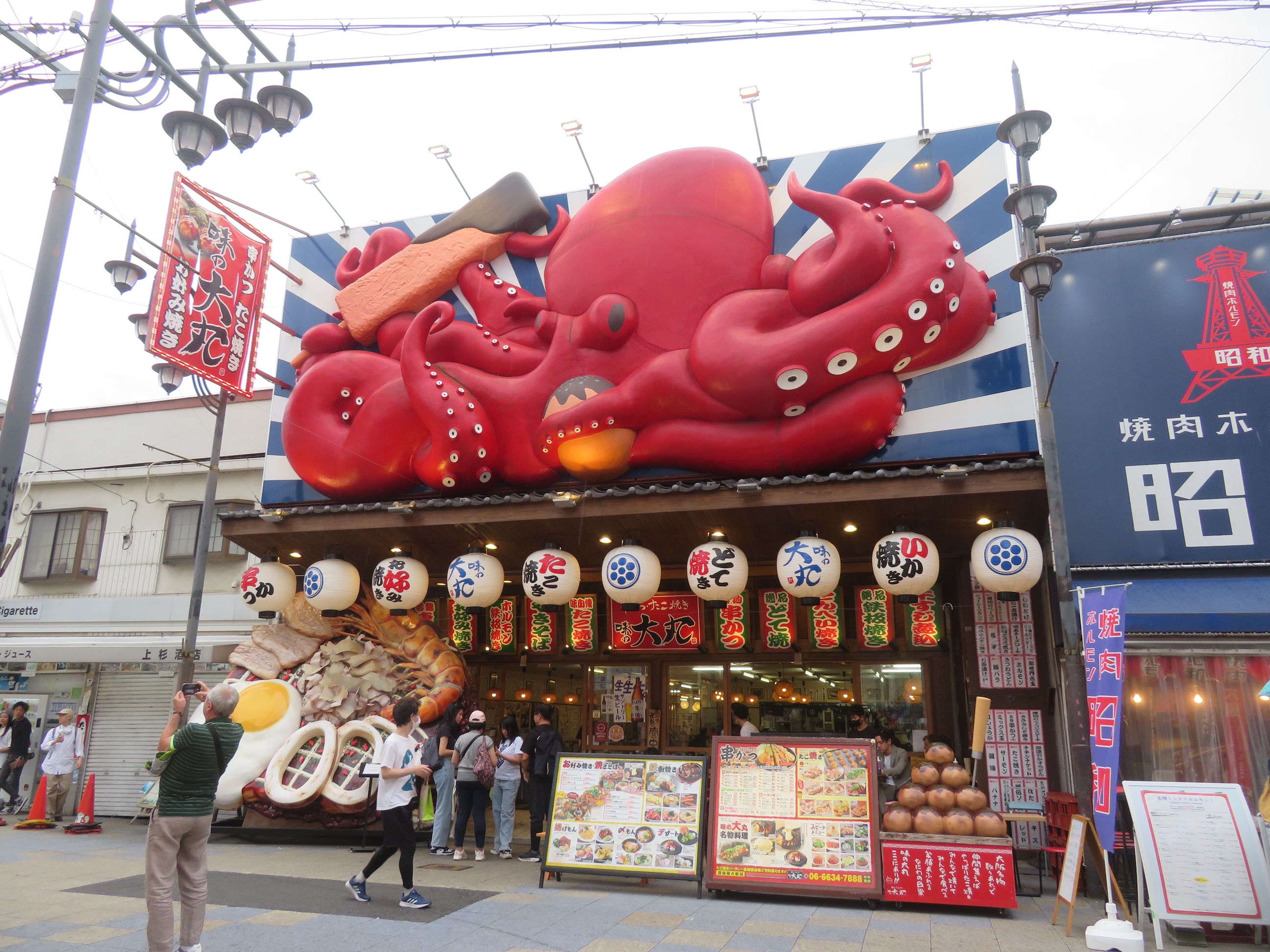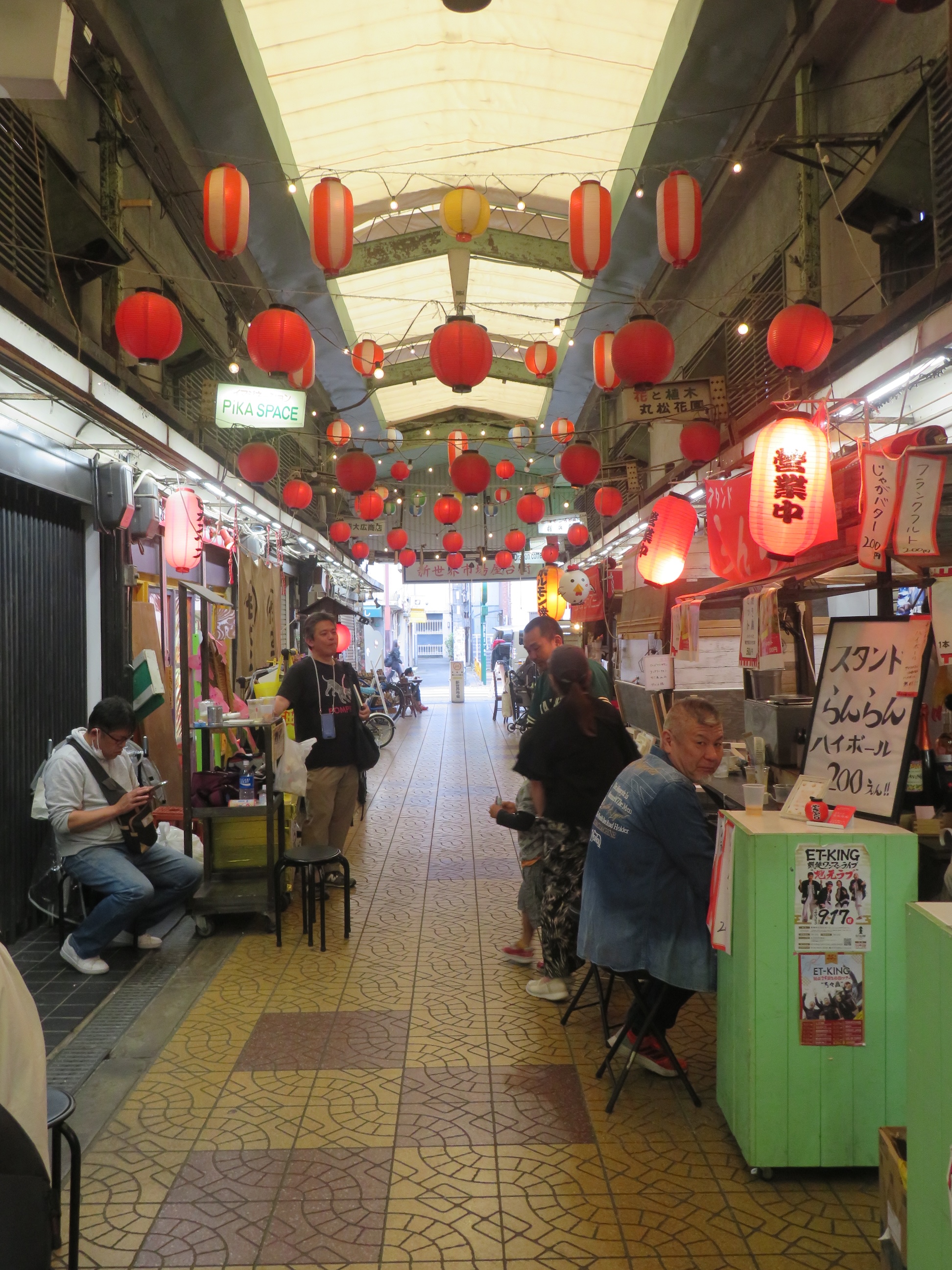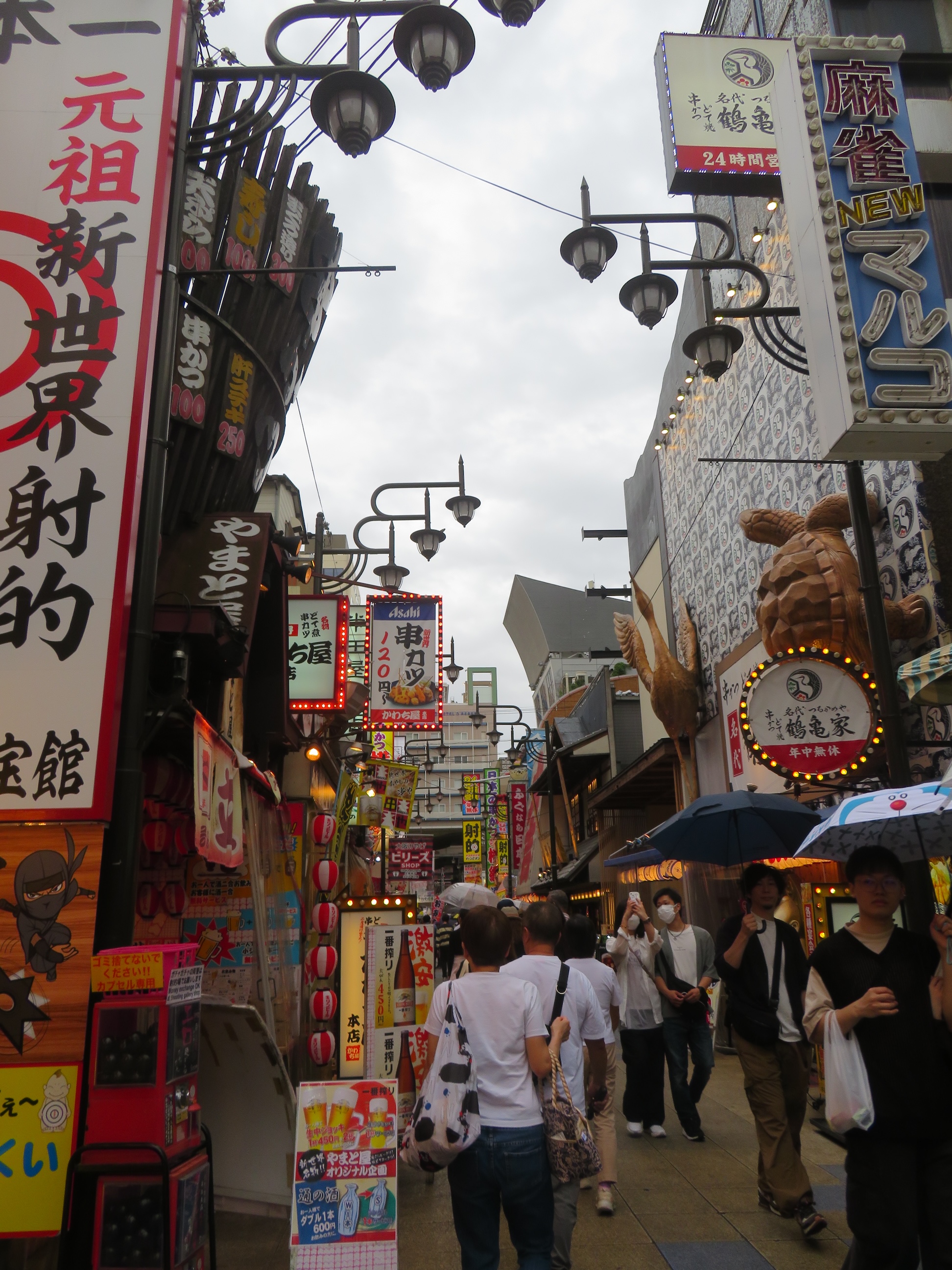 Ook zie je hier een totaal ander publiek rondlopen, de keurige zwart-wit pakken van Tokyo en Kyoto zijn nergens te bespeuren, er lopen hier vooral heel vreemde en hippe vogels rond … dat allemaal in een decor van schreeuwerige, ouderwetse lichtreclames en kitscherige winkeltjes, de moeite waard om er eens rond te lopen en je in die sfeer onder te dompelen.