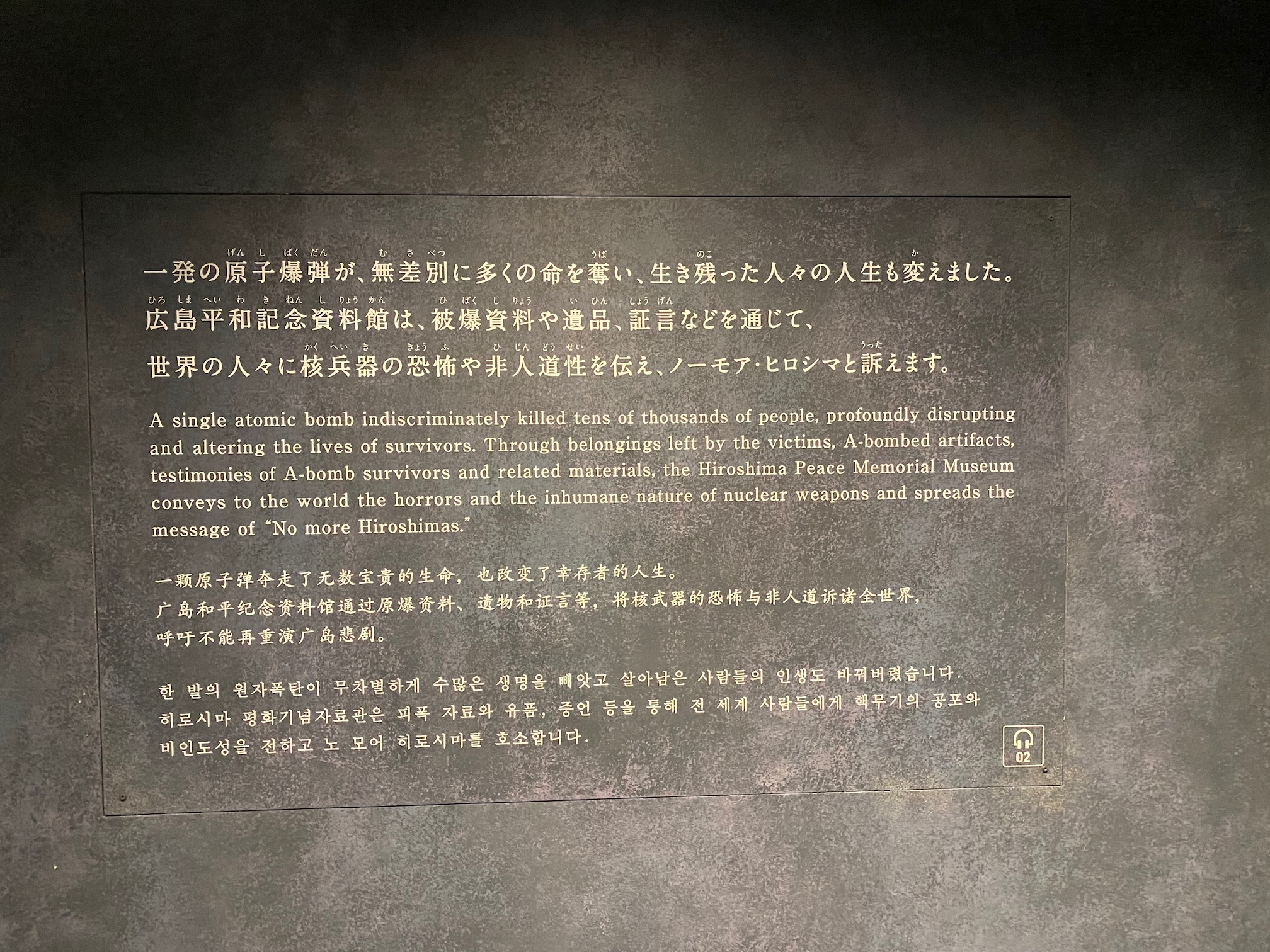 We zetten de wekker dus vroeg genoeg en zorgen dat we tijdig aan de ingang van het museum staan. Stipt op tijd openen de deuren en kunnen we inderdaad heel rustig rondwandelen om het relaas van deze vreselijke gebeurtenis te bekijken … het maakt opnieuw een diepe indruk … zoveel menselijk leed en zo goed als een volledige stad verwoest … hoe komen mensen er toch toe om dergelijk vreselijk wapen te bedenken en het dan ook nog te gebruiken … niet te begrijpen …