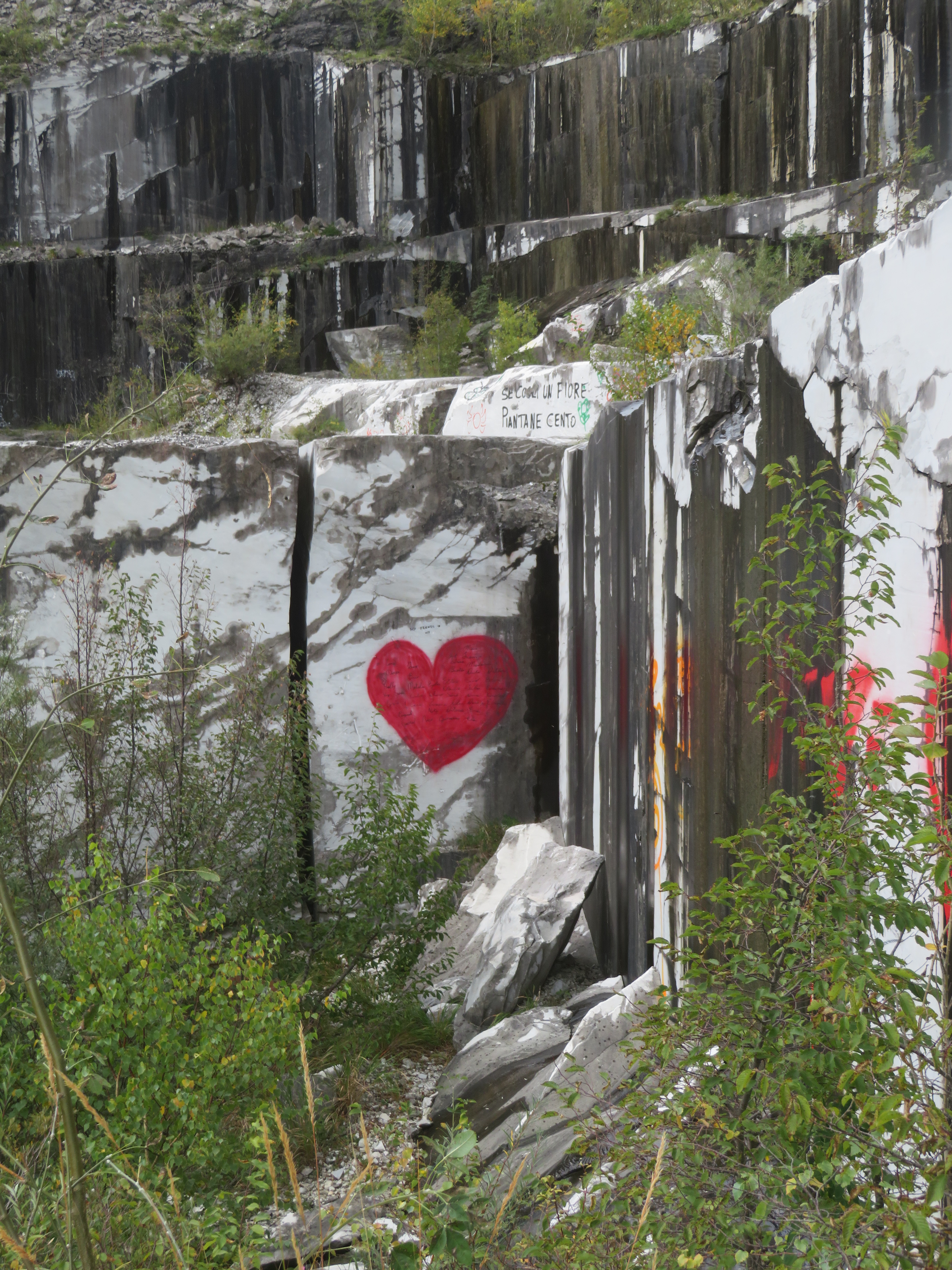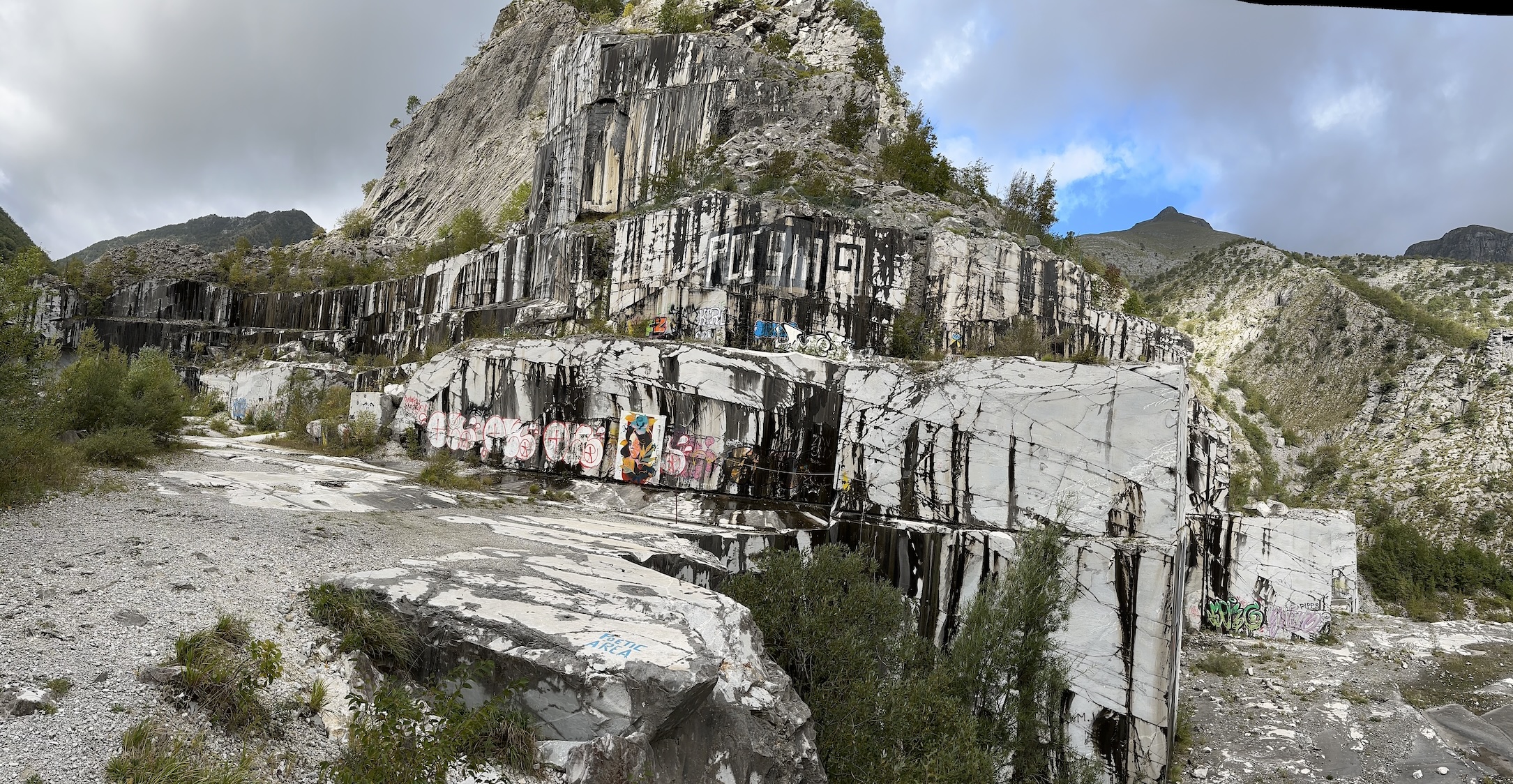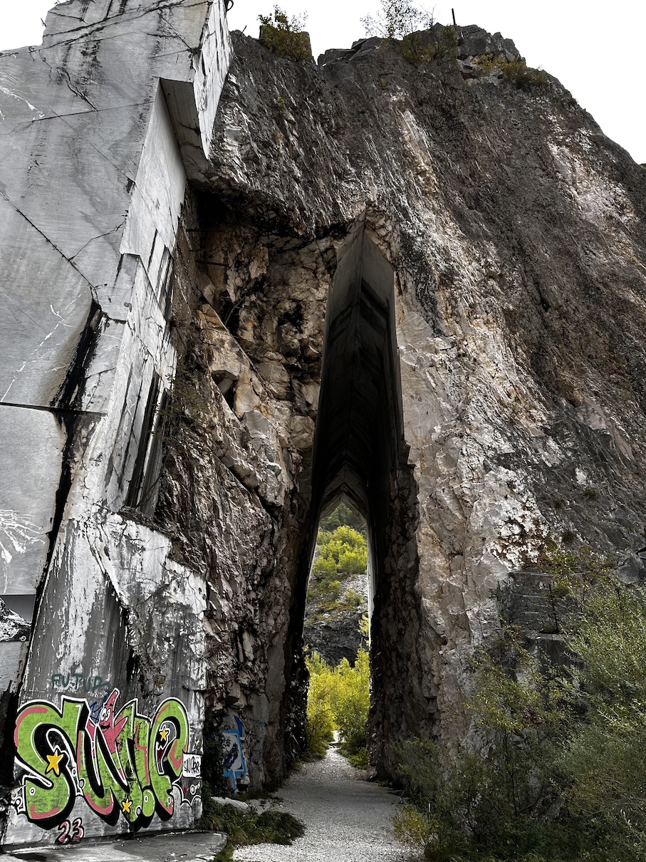 Onderweg passeren we ook nog een verlaten marmer groeve, daar houden we even halt om de toch wel een beetje desolate plek eens te bekijken. Uiteraard overal graffiti, maar ook een groep rotsklimmers die hier komen oefenen, t is weer eens wat anders.