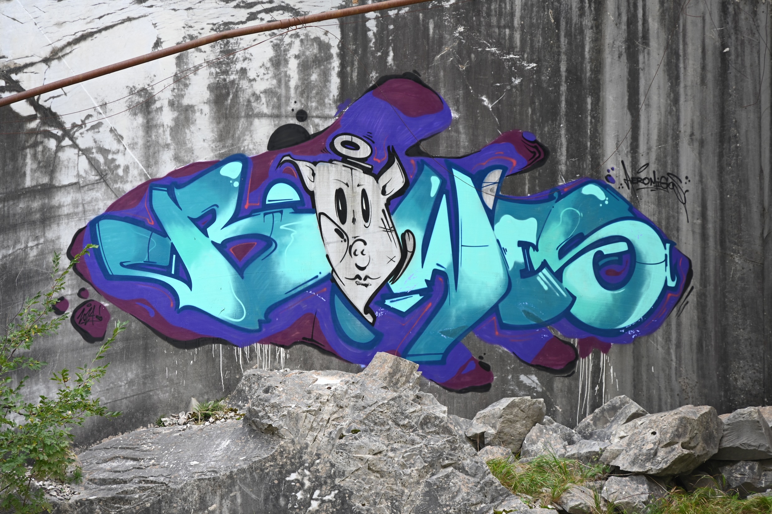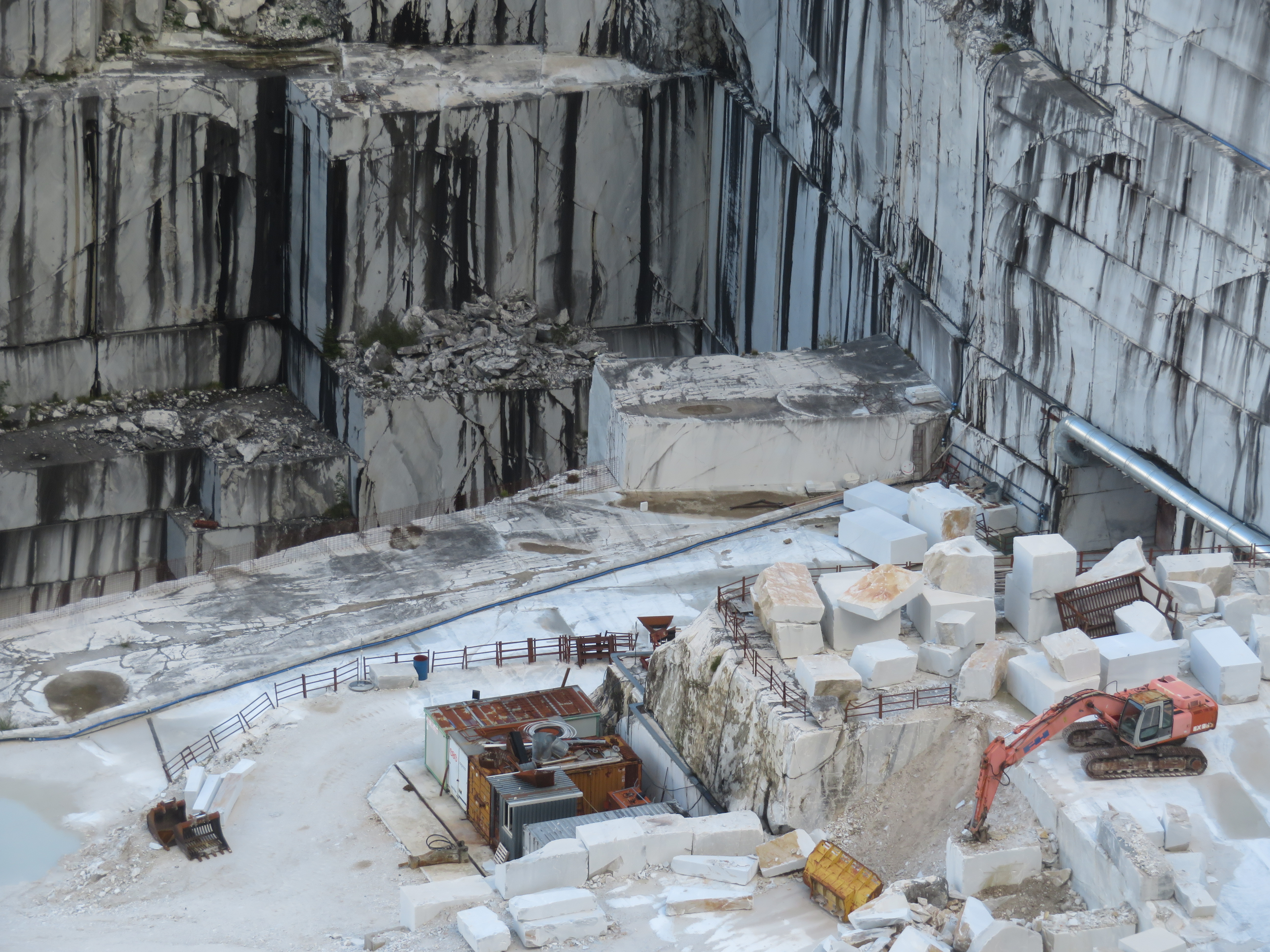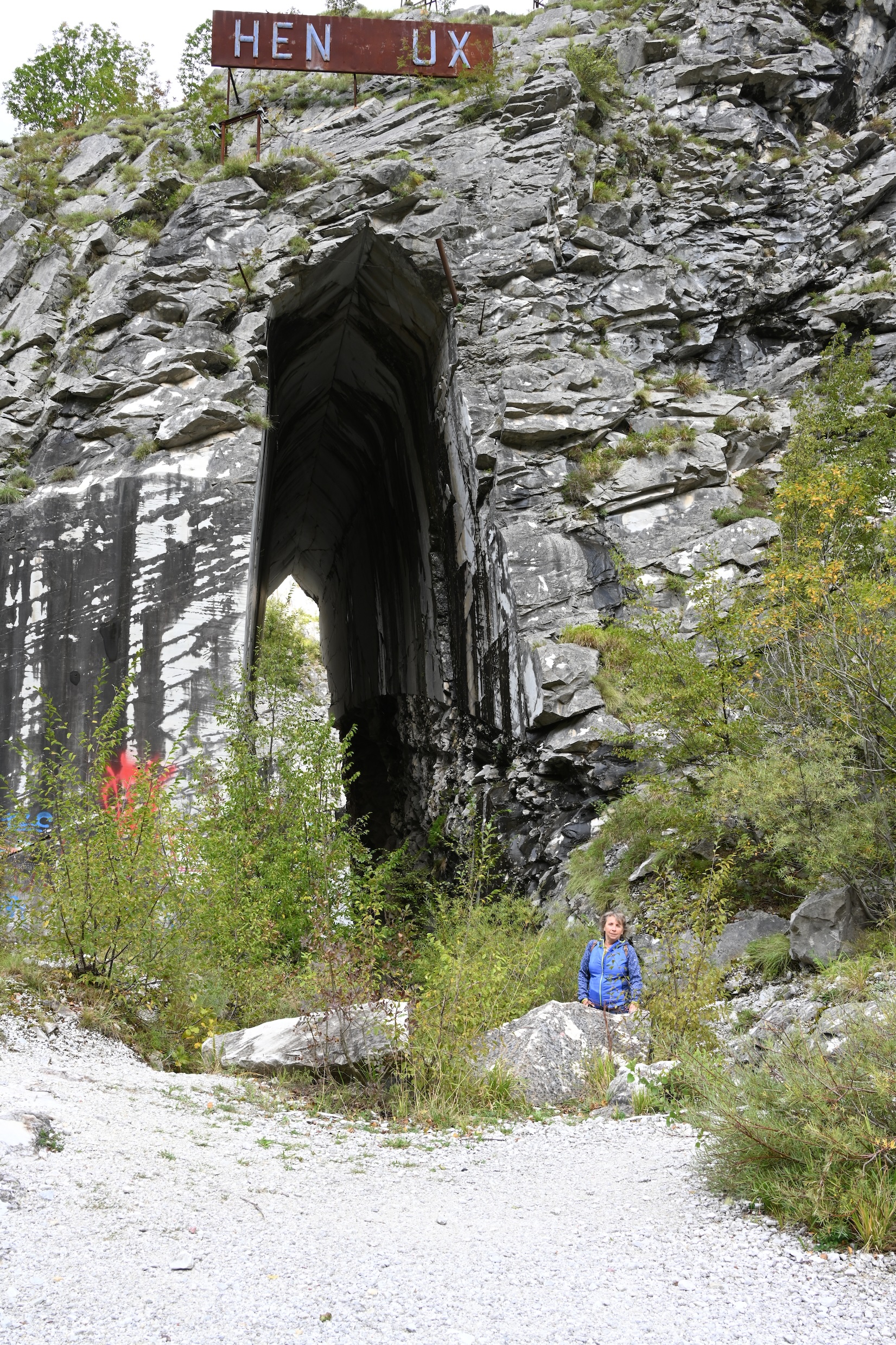 Onderweg passeren we ook nog een verlaten marmer groeve, daar houden we even halt om de toch wel een beetje desolate plek eens te bekijken. Uiteraard overal graffiti, maar ook een groep rotsklimmers die hier komen oefenen, t is weer eens wat anders.