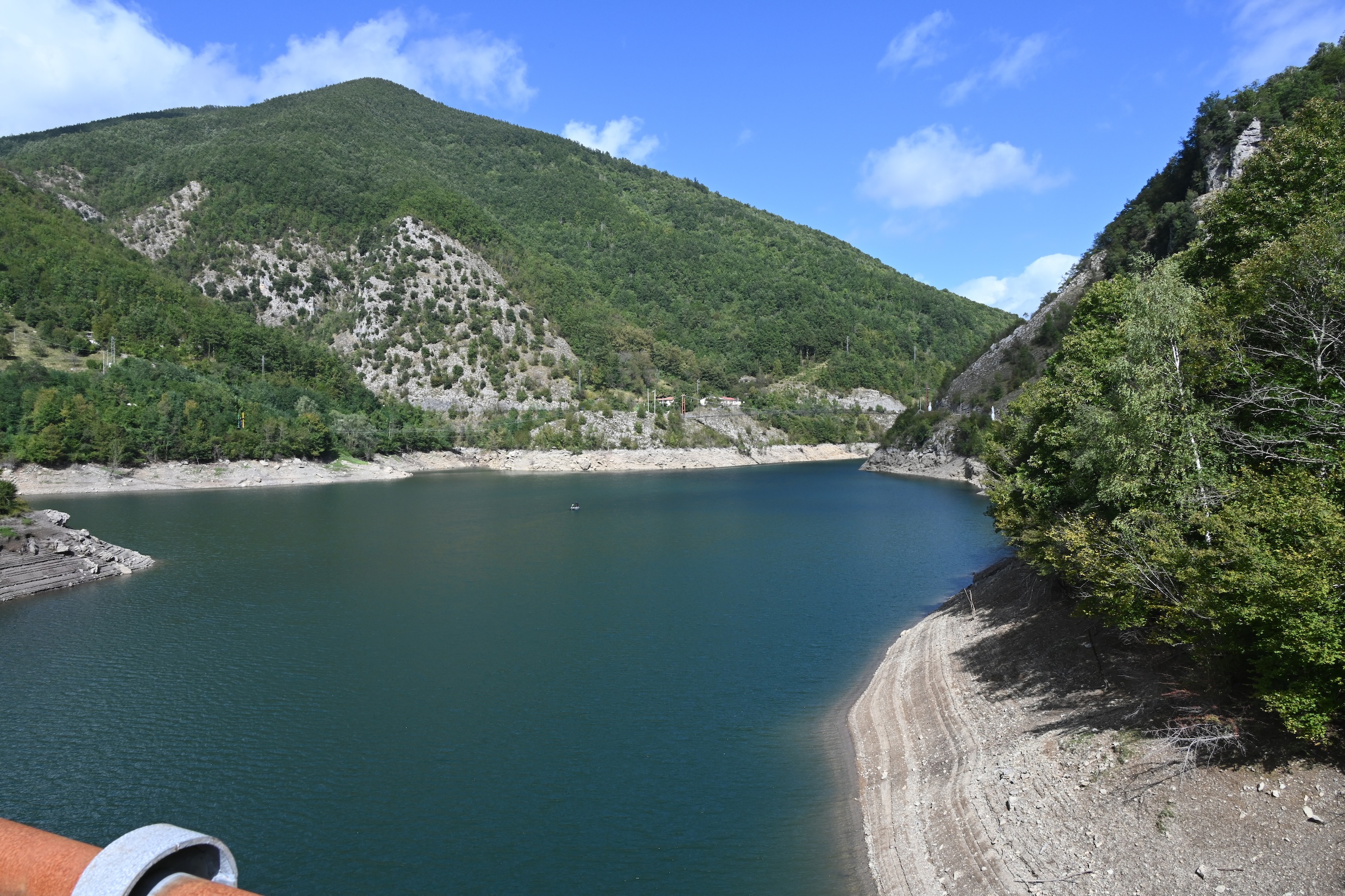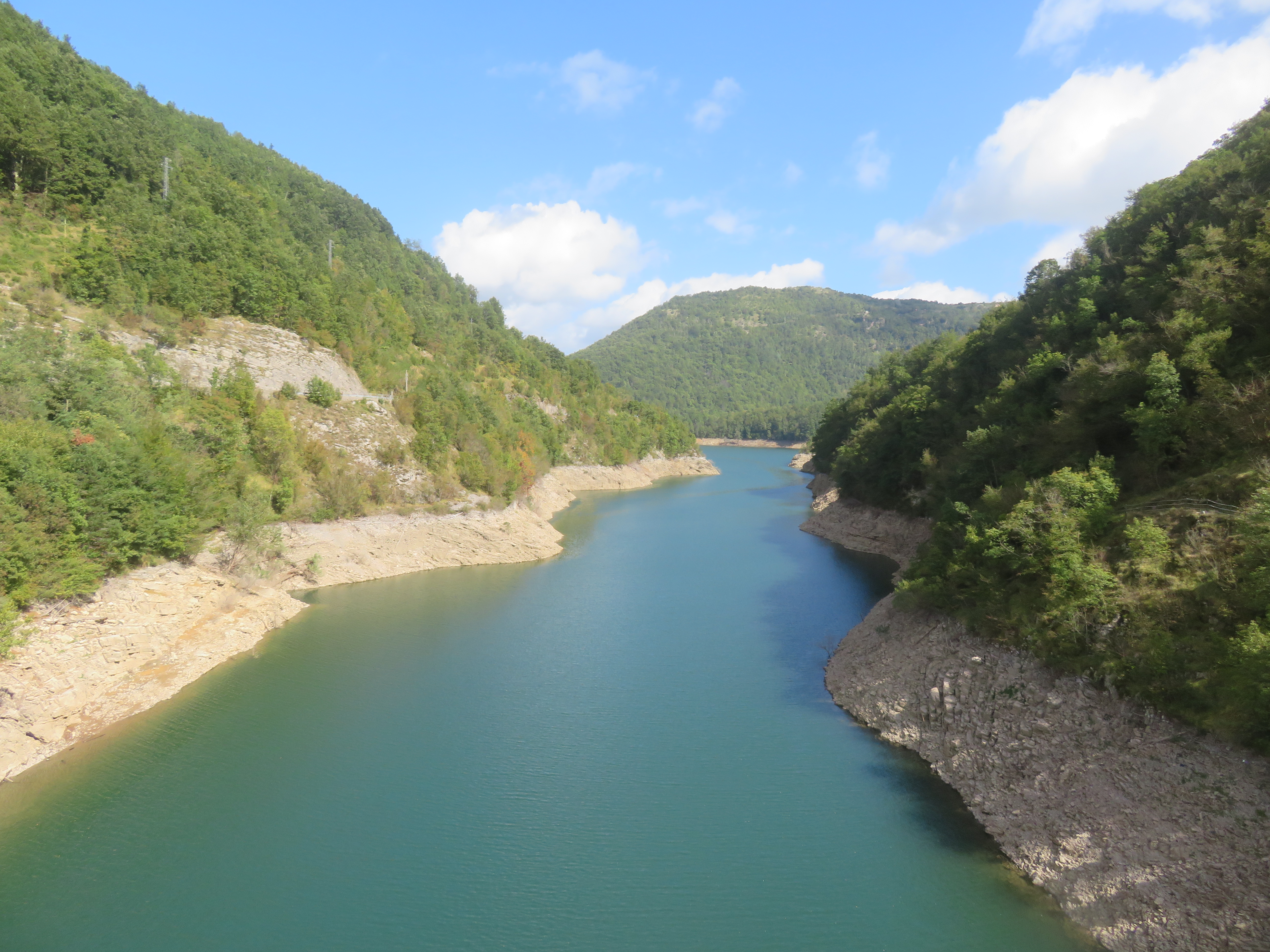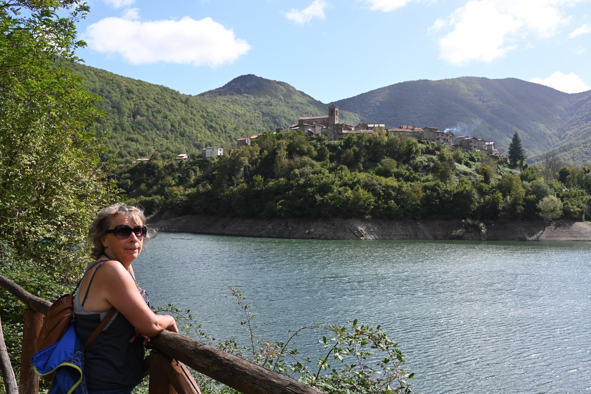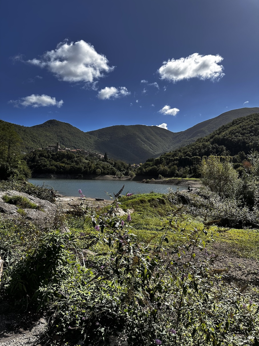 We rijden weer verder, richting Lago di Vagli. Dat is een prachtig gelegen meer in de bergen, waar zich onder het wateroppervlak een ‘spookdorpje’ bevindt … klinkt een beetje griezelig, maar het blijkt gewoon een oud dorpje te zijn dat indertijd is ‘opgeofferd’ om een stuwmeer aan te leggen. De bewoners zijn indertijd verdwenen uit dat dorp, waarna het in zijn geheel onder water is gezet. Eens om de paar jaar laat met het stuwmeer leeglopen om de nodige reparatiewerkzaamheden uit te voeren aan de dam en dan komt het ‘spookdorpje’ weer even tevoorschijn.