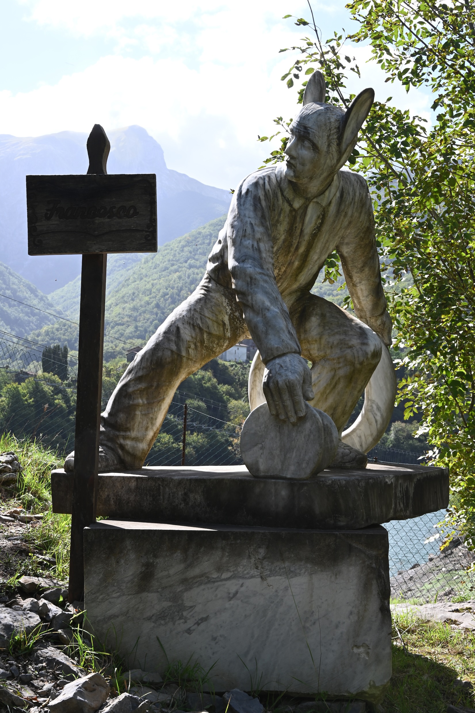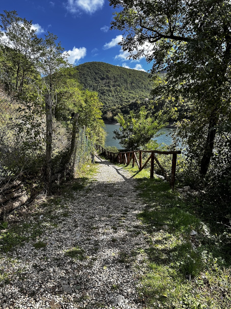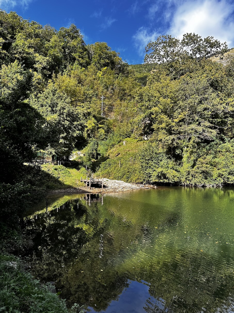 Het is een prachtige rit, de natuur is werkelijk adembenemend mooi hier ( de Apuaanse Alpen ), onderweg passeren we Lago Isola Santa 😉 Dit was een locatie die we bij de planning vooraf ook al eens bekeken hadden om eventueel te logeren, maar het leek ons redelijk afgelegen. Toevallig passeerden we dat dan vandaag op onze rondrit en dus stoppen we daar om er eens rond te wandelen.