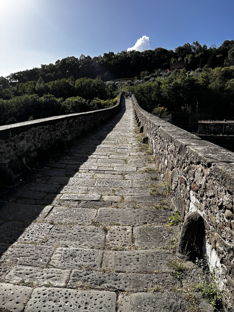 Volgende stop is Castelnuovo di Garfagnana, één van de vele charmante dorpjes op onze route, alleen is er hier ook een fotogenieke brug, die blijkbaar ook nog ooit deel uitmaakte van één of andere Romeinse route … we maken er nog een korte wandeling en vervolgen dan onze route