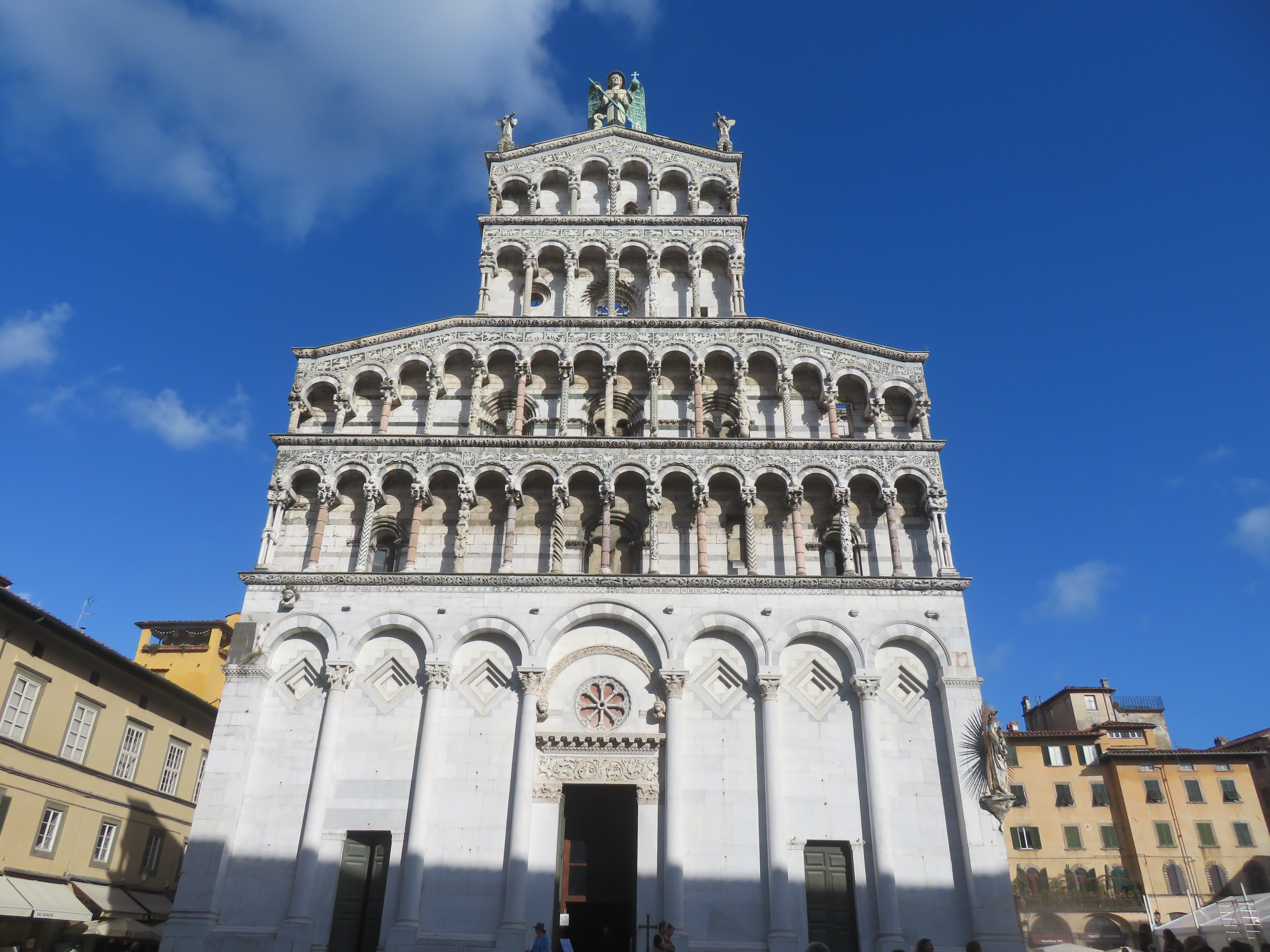Als laatste houden we halt in Lucca, één van de bekendste Toscaanse stadjes, Mooi oud stadje, maar wel vrij druk, we dwalen er een beetje rond door de smalle straatjes, eten er onze eerste ‘Gelato’ van deze trip en keren dan terug naar de auto.
