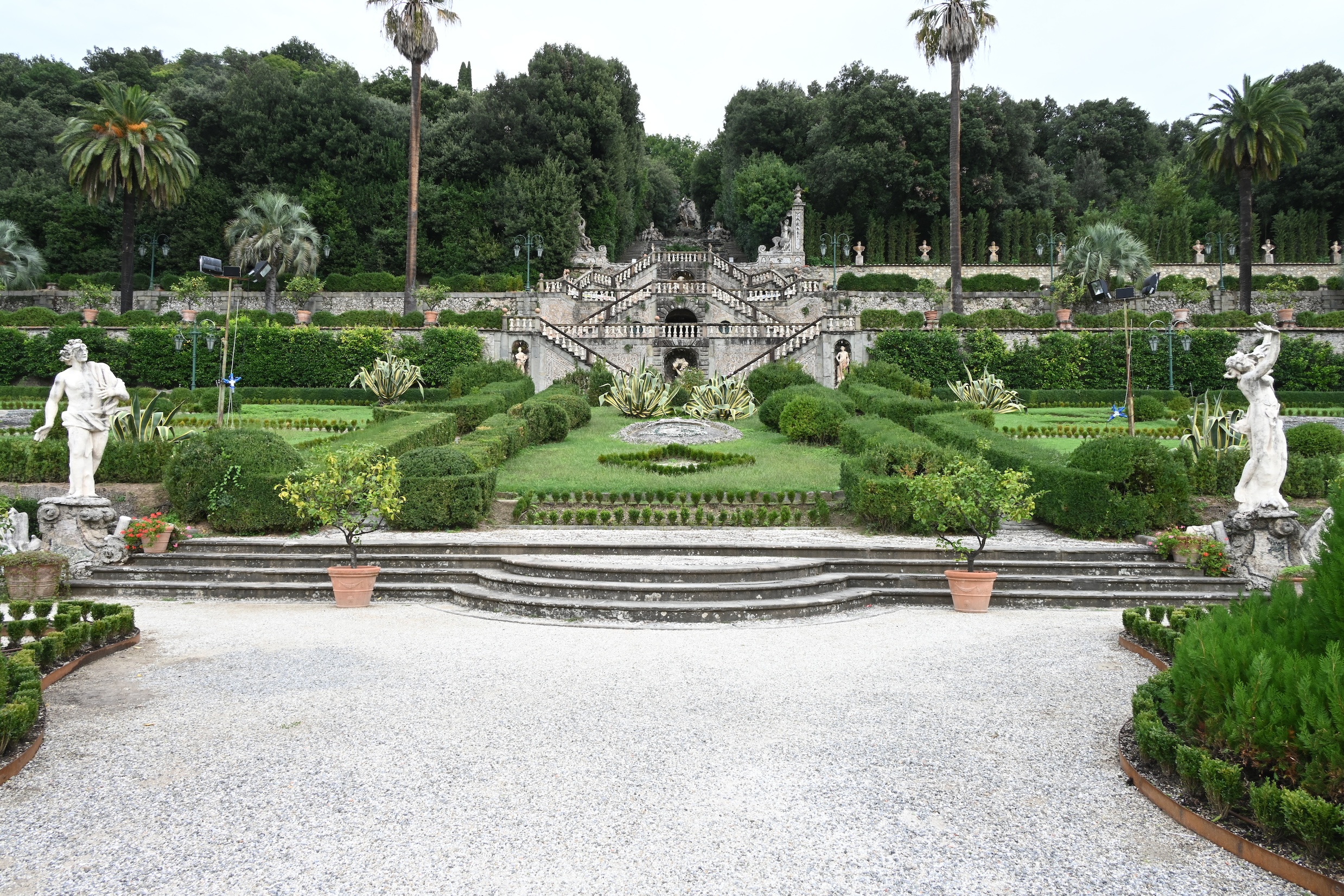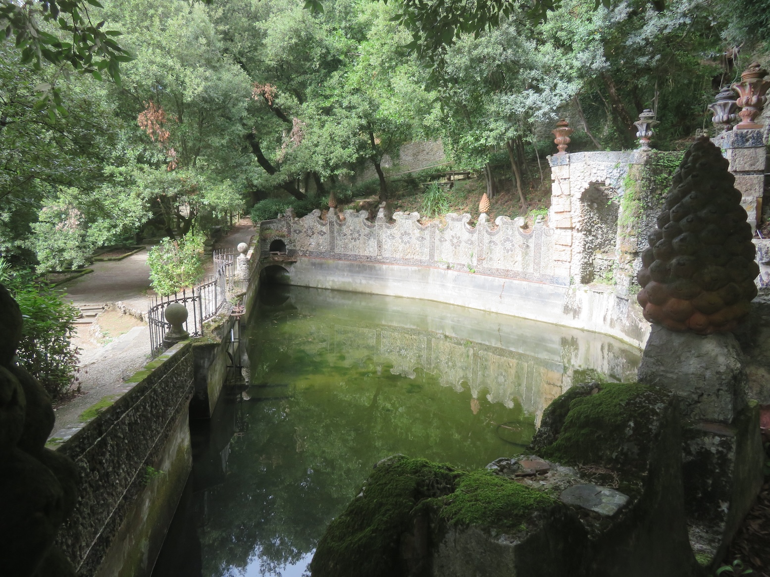 Ook is er een statige villa hogerop in de bergen met een prachtige tuin omheen die je kan bezoeken. Daar wandelen we naartoe en het is werkelijk een zeer uitgestrekt domein dat ooit fantastisch mooi moet geweest zijn, maar dat nu ( helaas ) redelijk in verval is geraakt. Zowel de machtige villa bovenop de heuveltop als de weelderige tuinen zijn helemaal verwilderd en vervallen, maar je ziet wel wat een grandeur ze ooit gehad hebben. Werklieden van de gemeente zijn er aan het werk om de tuinen terug een beetje in ere te herstellen en ook aan de villa is her en der al een beetje oplapwerk gebeurd, maar volledige restauratie van dit mooie domein zal vermoedelijk nog wel heel wat tijd en werk vergen… hopelijk kan het binnen enkele jaren terug in volle glorie bezocht worden !