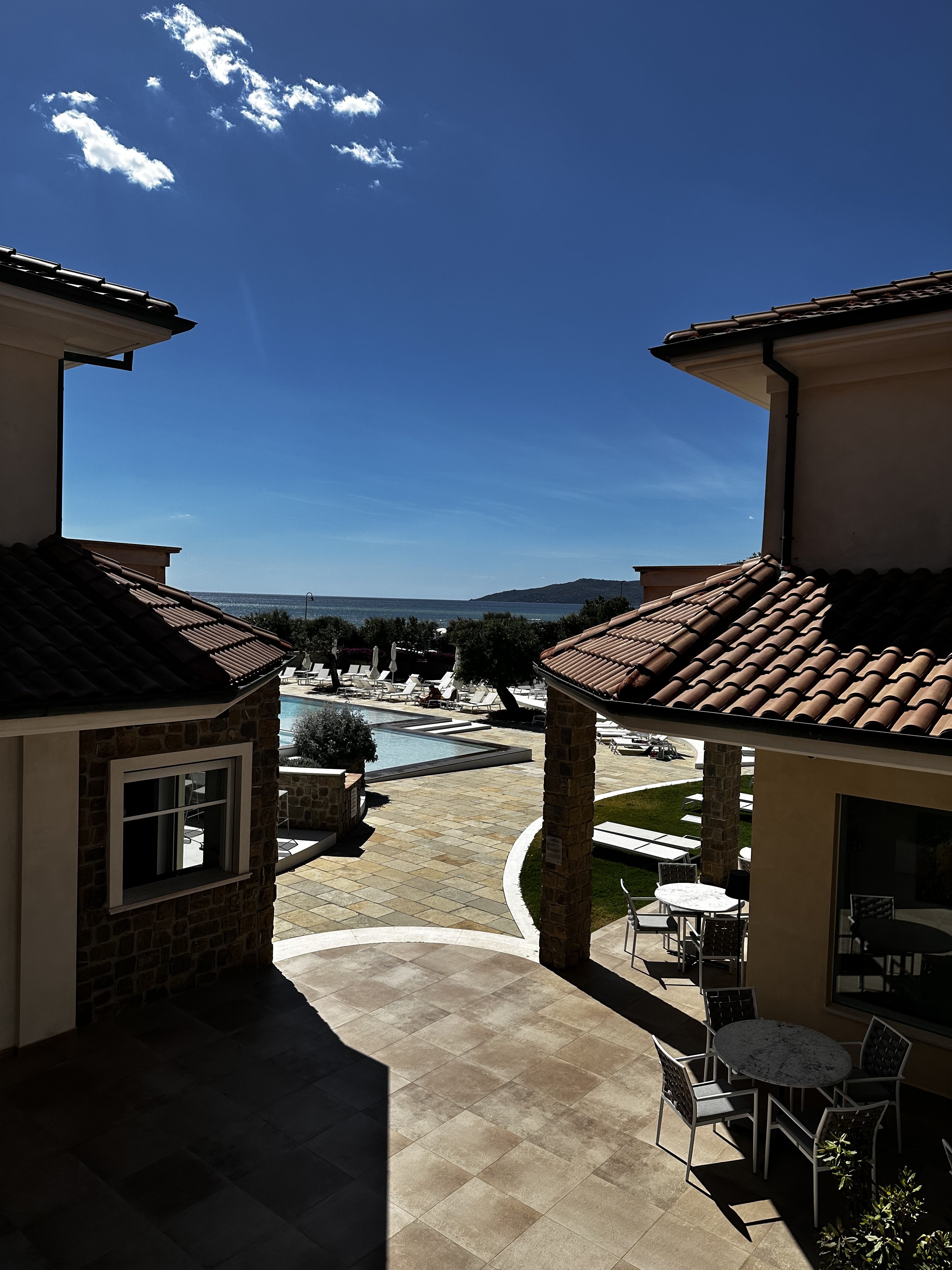 Het is een prachtig, vrij nieuw hotel en we worden er heel hartelijk ontvangen. De kamer is prima in orde en we hebben een balkonnetje met volledig ‘VistaMare’ van een ‘room with a view’ gesproken !