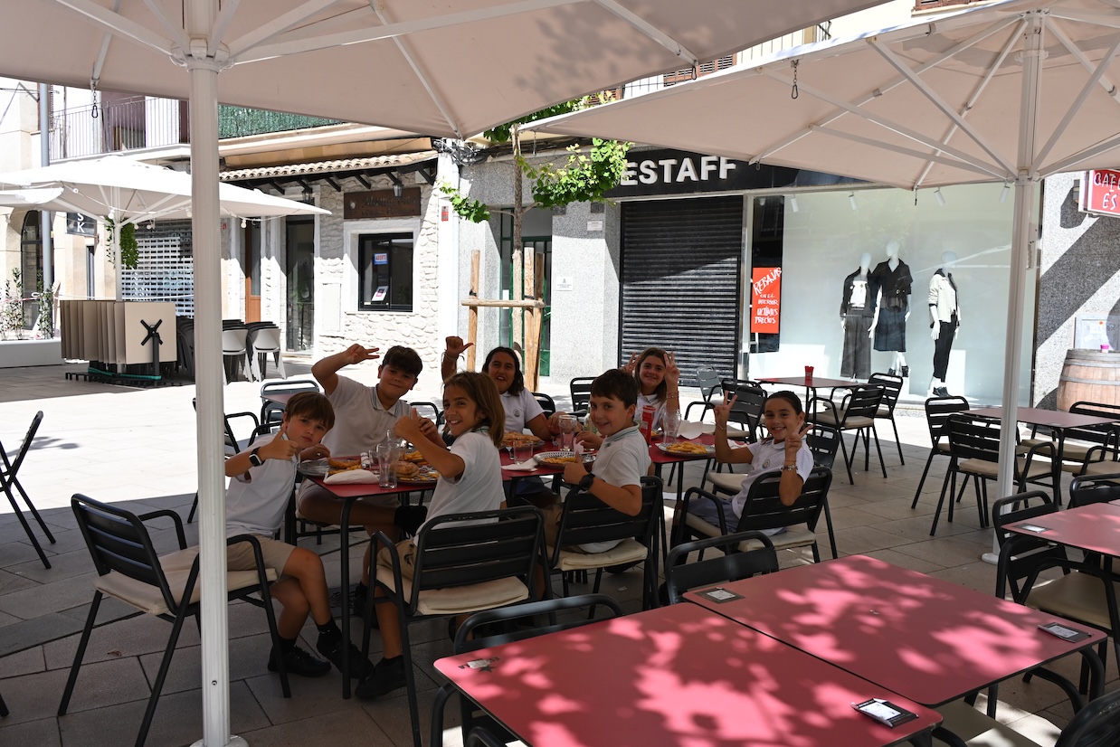 Op één van de pleintjes waar we terechtkomen zitten wel een aantal kinderen hun boterhammetjes ( of de Spaanse variant daarvan ) te eten en die vinden het best wel cool dat wij daar net passeren blijkbaar, ze zwaaien ons vol enthousiasme toe en laten ons niet vertrekken tot we een paar foto’s van die jolige bende hebben gemaakt … wat we uiteraard ook met veel plezier doen 🙂