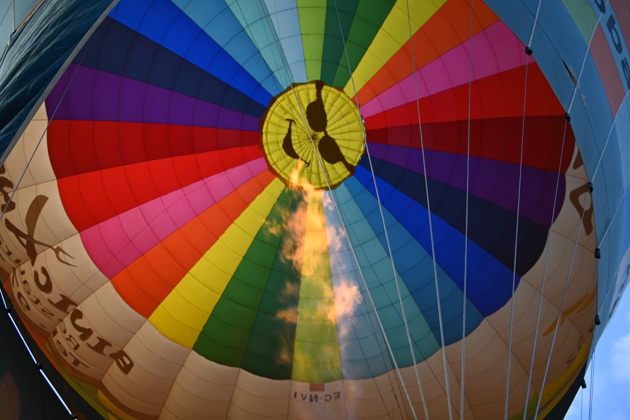We krijgen nog instructies hoe in de mand te klimmen ( best hoog hoor ) en dan zijn we weg … wat een fantastische ervaring … boven in de lucht is het heel stil en de uitzichten zijn weergaloos … zalig dit …
