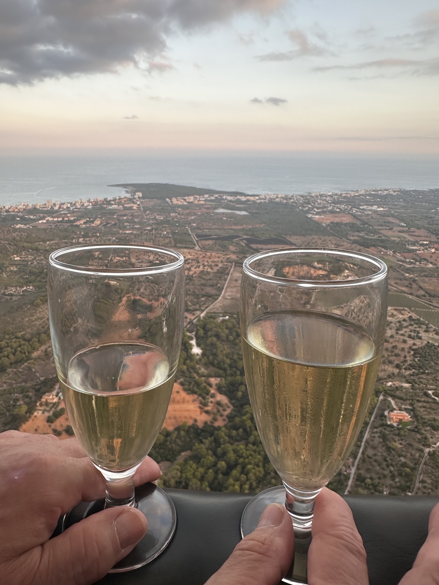 Als klap op de vuurpijl krijgen we – bovenop de schitterende vergezichten – ook nog onze ‘doop’, zijnde een glaasje bubbels, op een hoogte van +/- 500m, dat in combinatie met de mooie zonsondergang … een mens zou van minder stil worden …