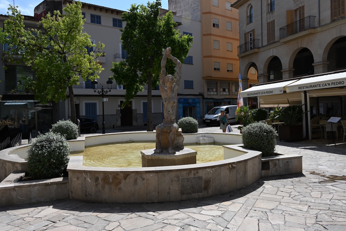 Hier zijn ze niet zo strikt met hun siësta als gisteren in Manacor en heel wat winkels en cafeetjes blijven gewoon open. We wandelen doorheen het mooie centrum met best gezellige winkeltjes en ploffen uiteindelijk neer op een terras aan de – alweer ! – zeer indrukwekkende kerk.