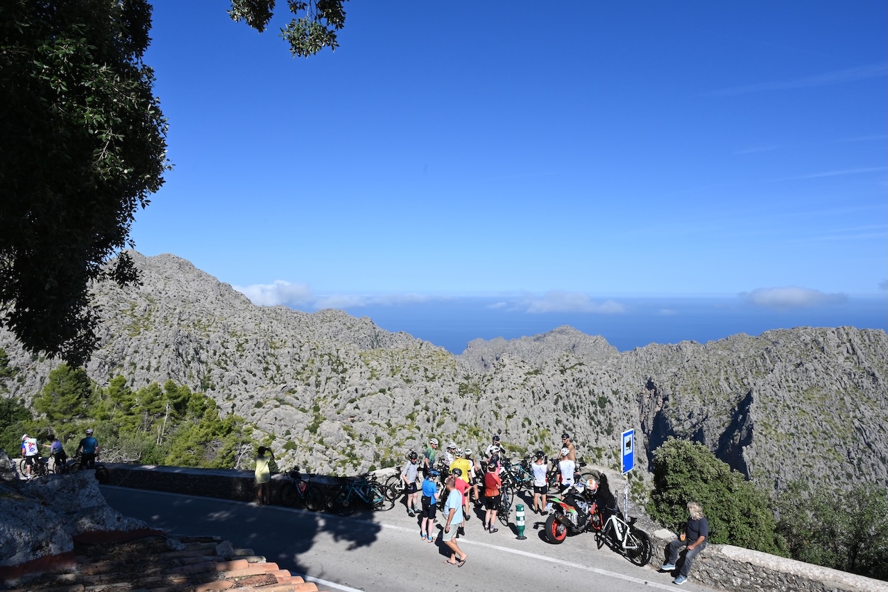 Wanneer we aan de afslag richting Sa Calobra komen, zien we ook dat dit blijkbaar een zeer geliefde fietsroute is voor ( geoefende ) koersfietsers. In grote getalen vatten ze de route aan, de ene al wat vlotter ( of elektrischer 🙂 ) dan de andere.