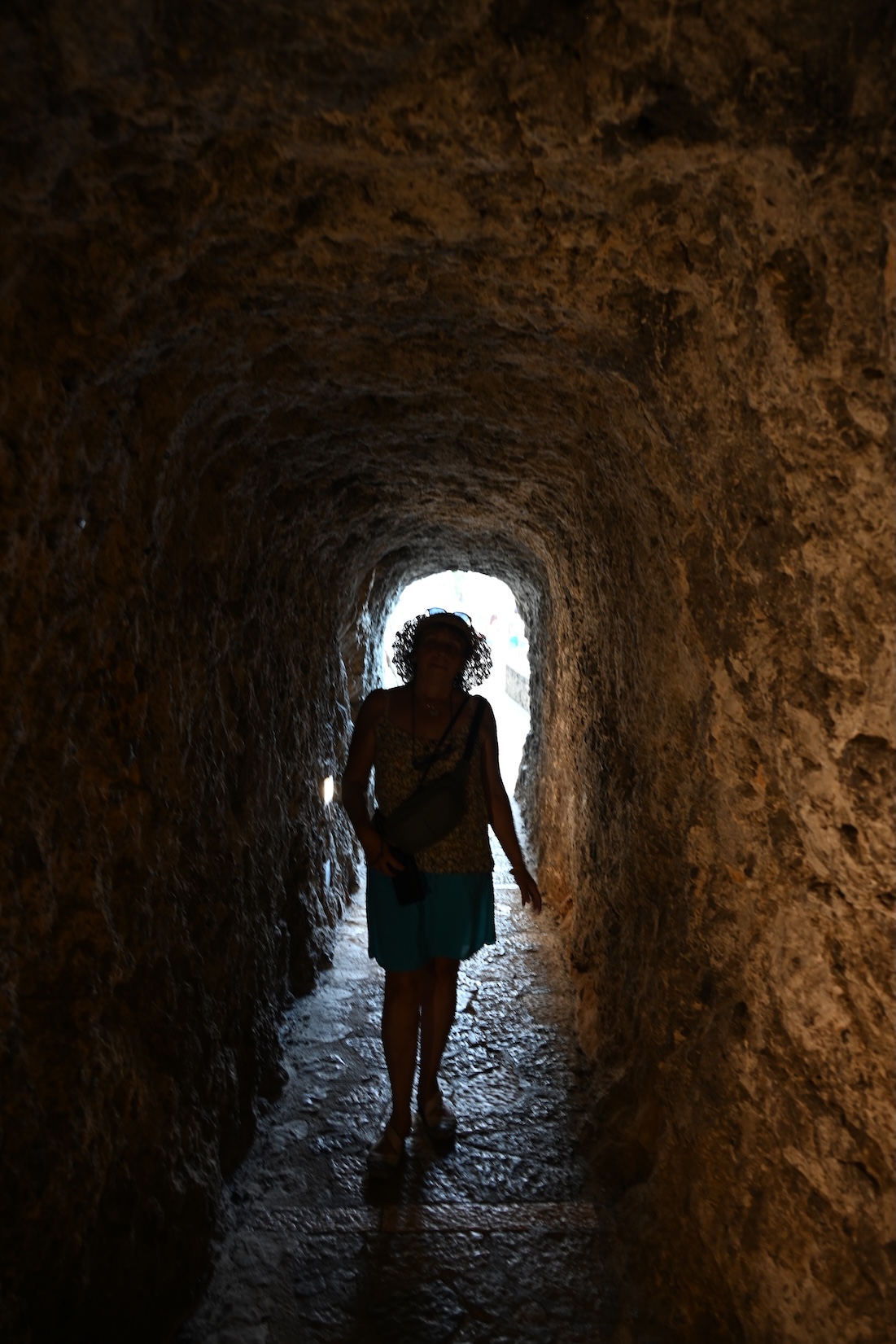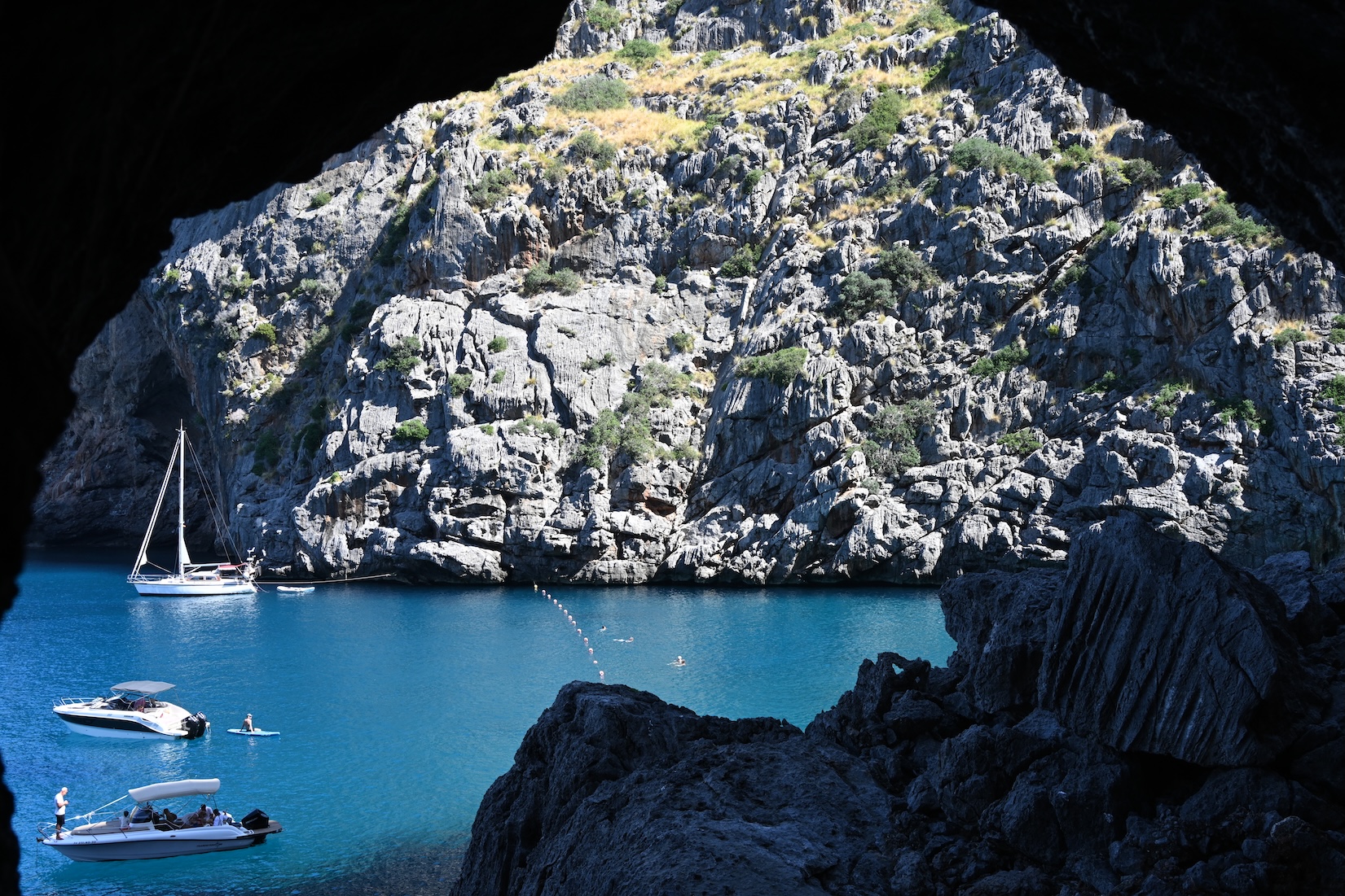 als je natuurlijk al andere bergroutes bedwongen hebt ( zoals de Stelvio met z’n 48 haarspeldbochten ), dan valt het best nog wel mee 😉 Maar supermooi dus en het mooiste moet nog komen zodra je beneden aankomt ( wel zien dat je er tijdig bent om een plekje op de parking te kunnen bemachtigen … ) wandel je naar het plaatsje Sa Calobra en dat is echt een plaatje, zou zomaar een ansichtkaart kunnen zijn … en het wordt nog mooier als je de wandelweg Torrent de Pareis volgt … een ( gemakkelijk ) wandelpad naast de kust met een paar tunneltjes waar je doorheen moet en dan kom je aan hét beeld dat overal voorgesteld wordt, de 2 steile rotswanden waartussen je de oceaan kan zien met een prachtige weerspiegeling aan de landzijde … prachtig om te zien … alleen jammer dat er een paar honderd mensen het nodig vinden om zich daar te installeren voor een dagje aan het strand met parasollen, handdoeken, opblaasbeesten enz …