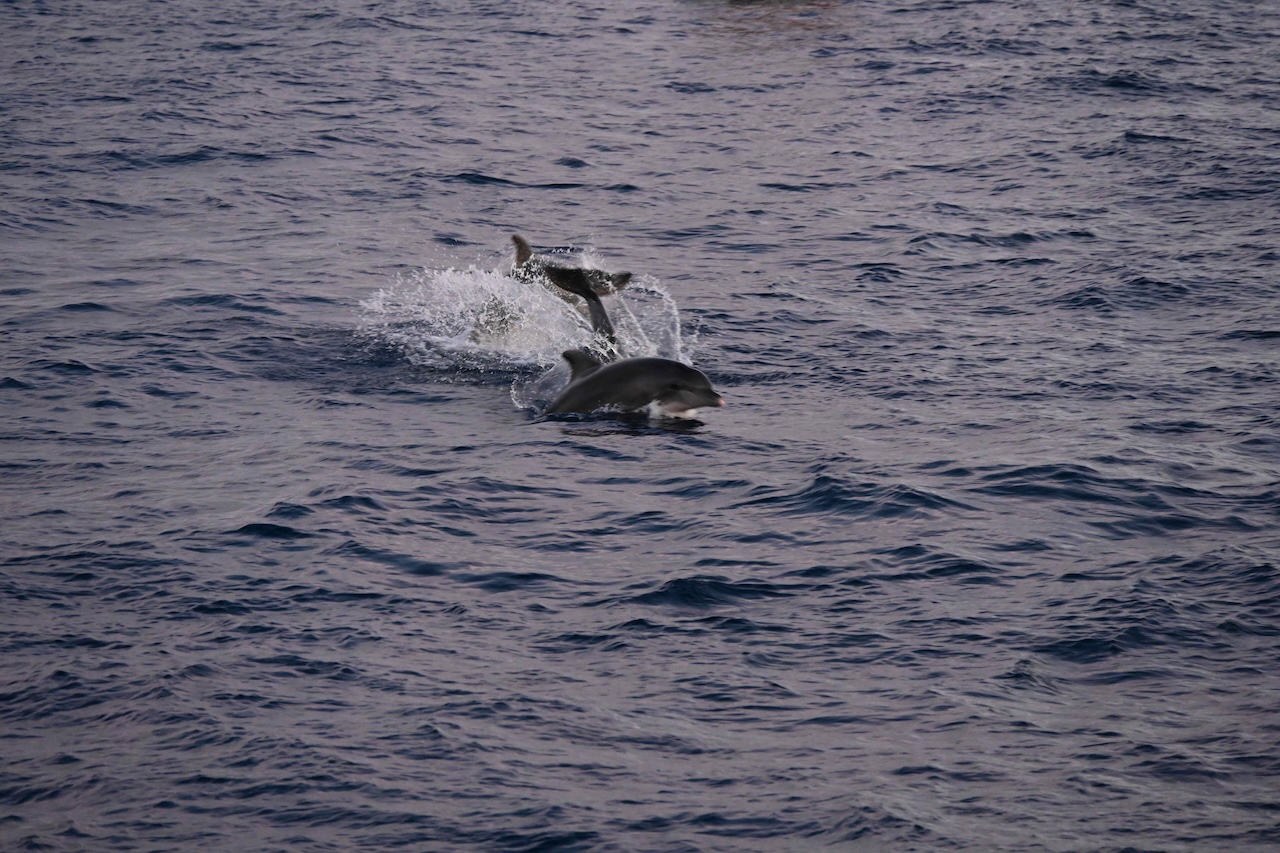 Dolfijnen die vrolijk uit het water springen ( maar waar precies weet je natuurlijk nooit ), en aan de andere kant de zon die langzaam opkomt en daardoor voor een prachtige lichtshow zorgt … hoe mooi kan een dag beginnen ?